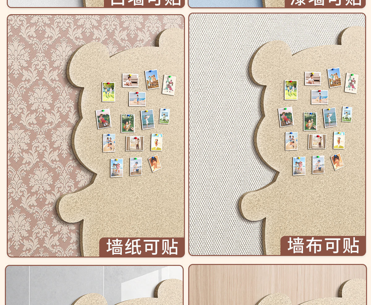 곰 펠트 벽 자체 접착 메시지 보드 배경 보드 폴라로이드 사진 벽 디스플레이 보드 보관용 플러시 코르크 보드