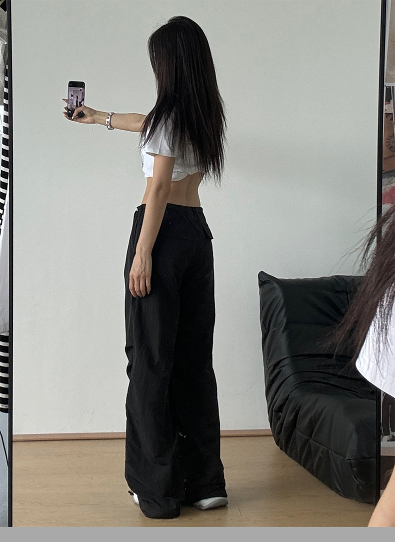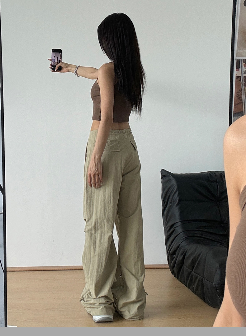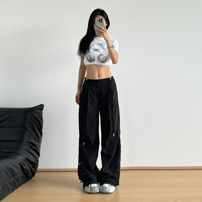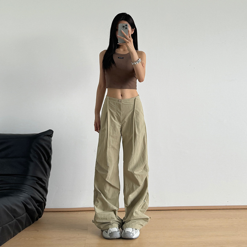 낙하산 병사 넓은 다리 충전 바지 2024 미국식 블랙 코일 바지 여성 여름스토어 가기