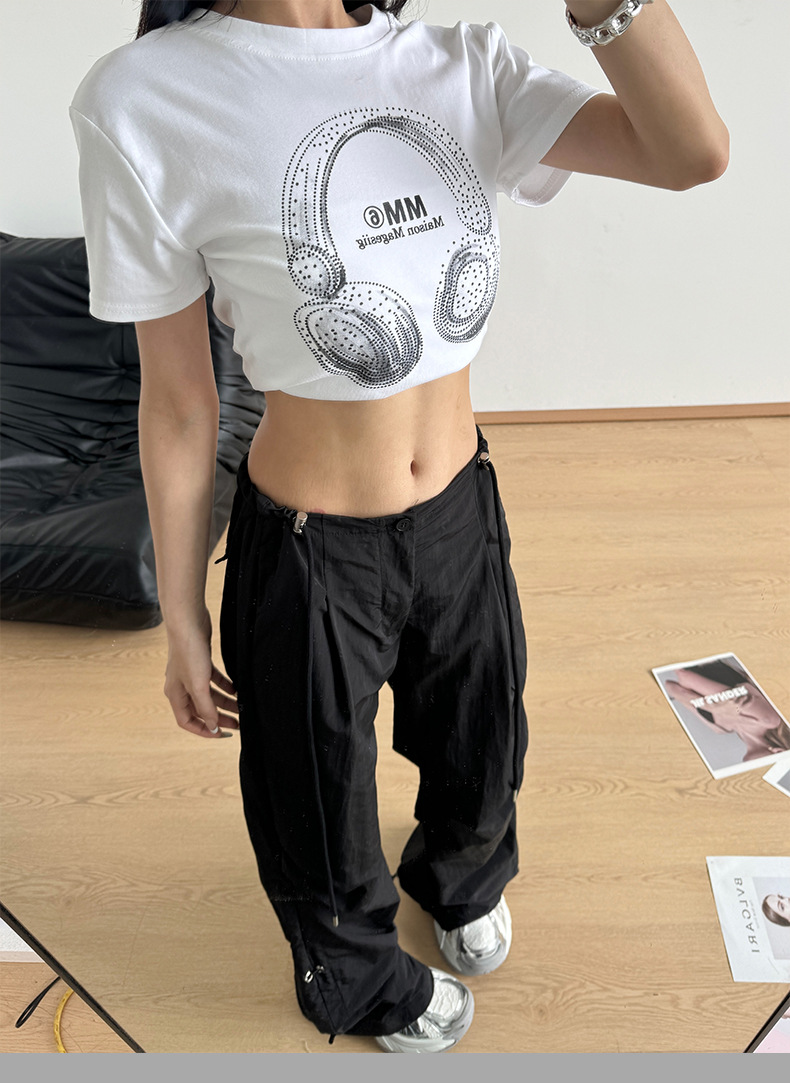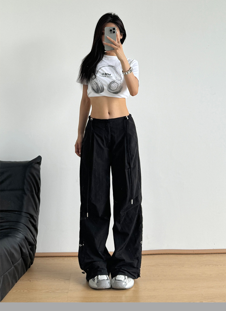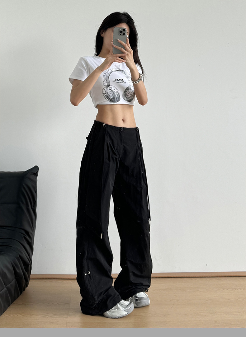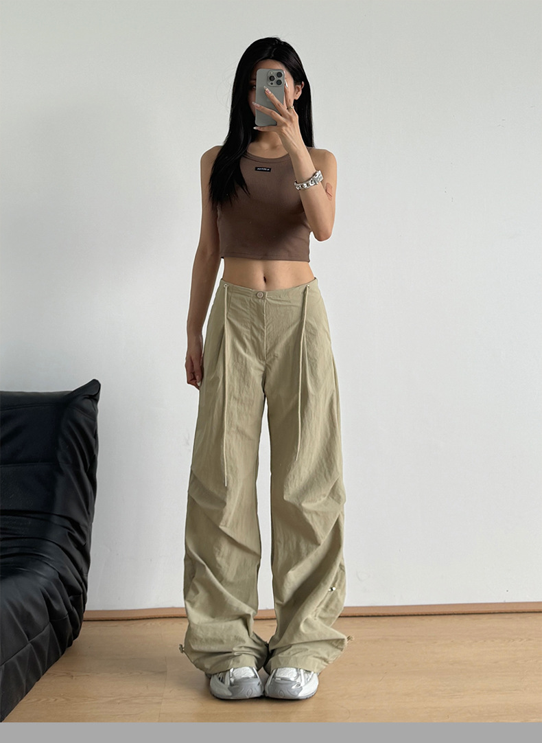 낙하산 병사 넓은 다리 충전 바지 2024 미국식 블랙 코일 바지 여성 여름스토어 가기