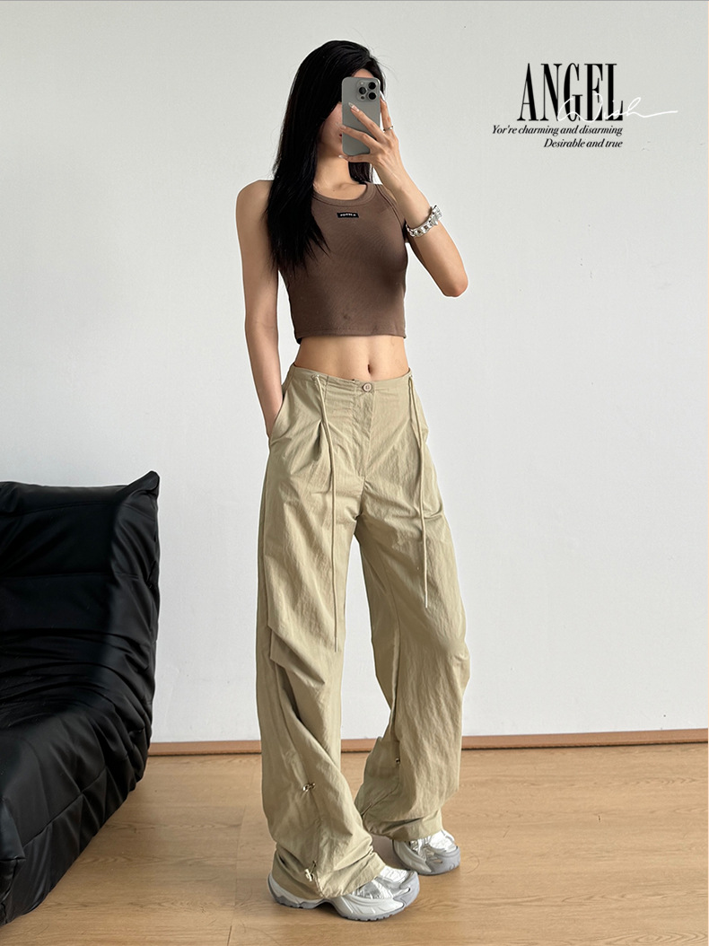 낙하산 병사 넓은 다리 충전 바지 2024 미국식 블랙 코일 바지 여성 여름