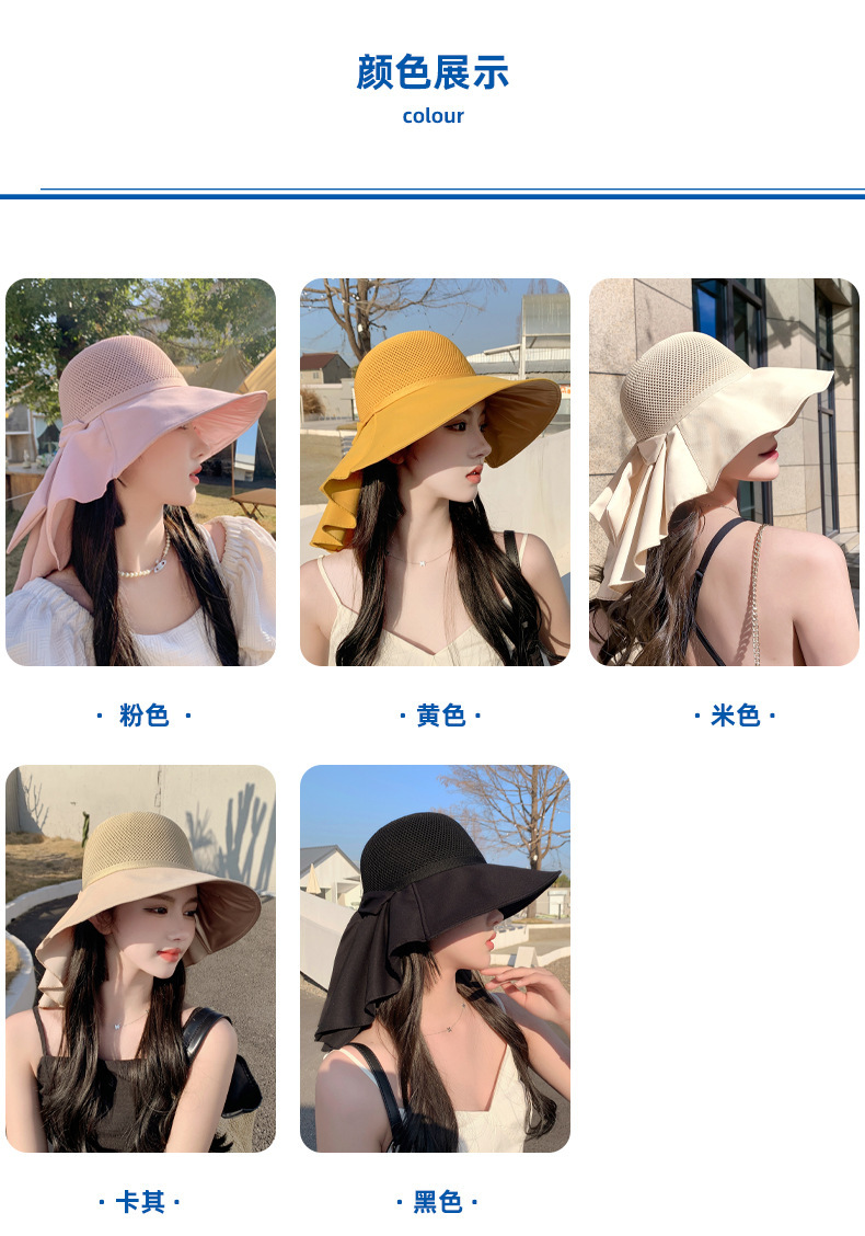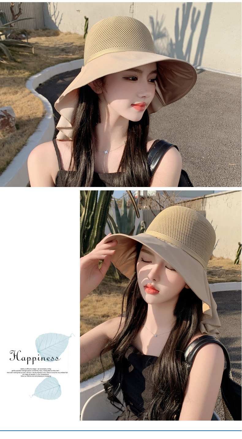 2024 여름 모자 여성의 야외 선 스크린 태양 모자 메쉬 통기성 목도리 모자 얼굴 태양 모자 큰 옥수수 여행
