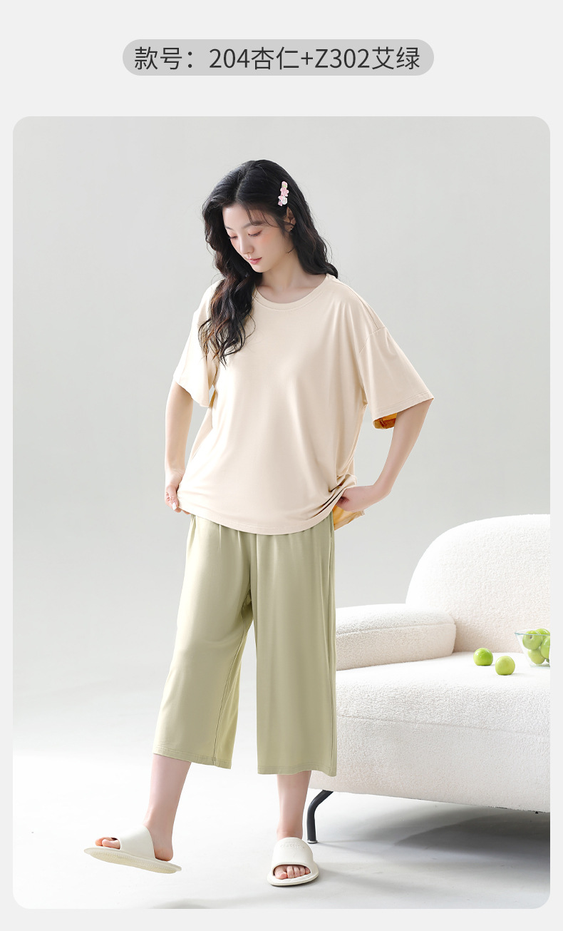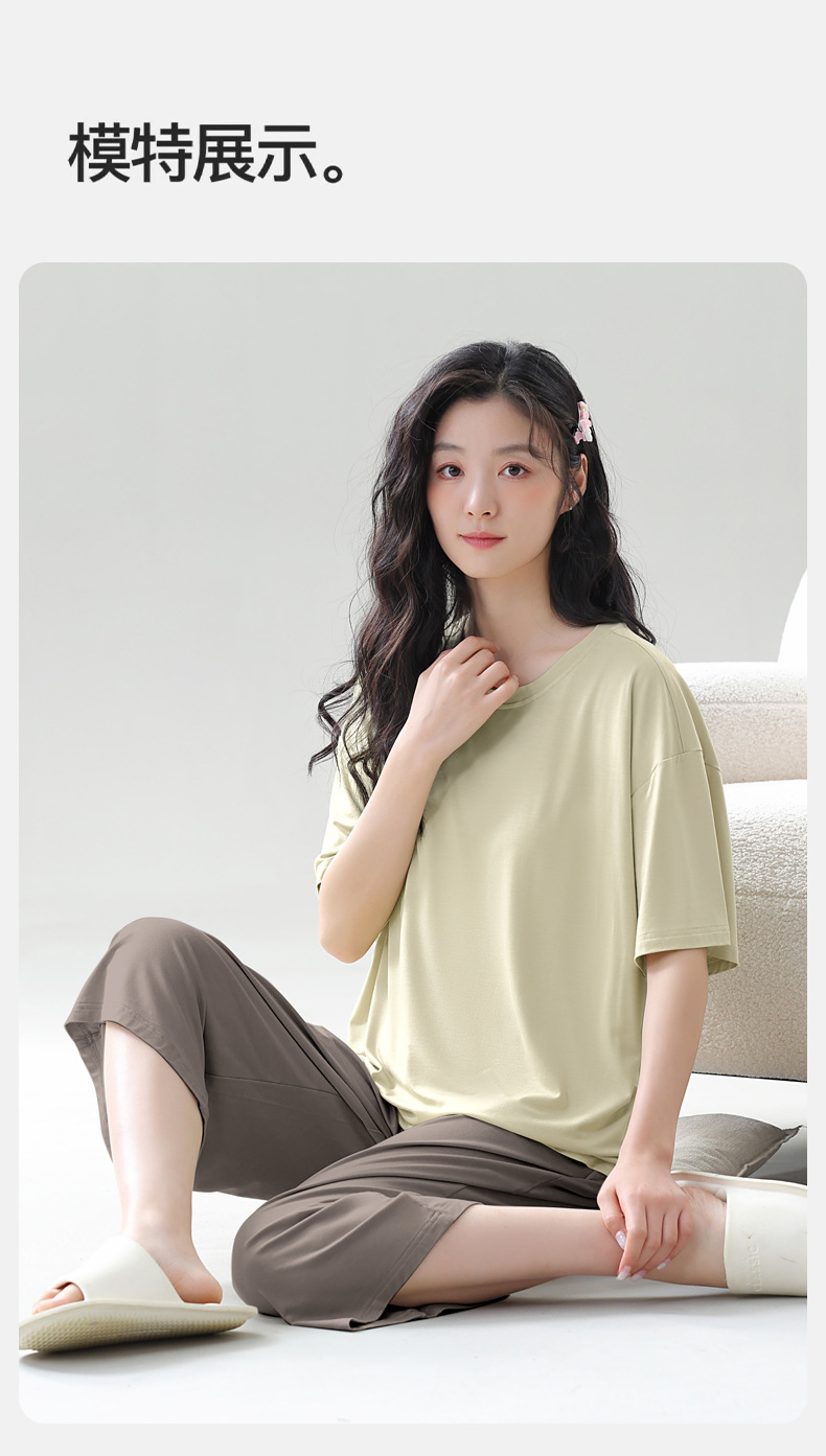[시원한 느낌] 가슴 패드 새로운 잠옷 여성 모달 여름 반팔 바지 캐주얼 여성의 얇은 홈 의류스토어 가기