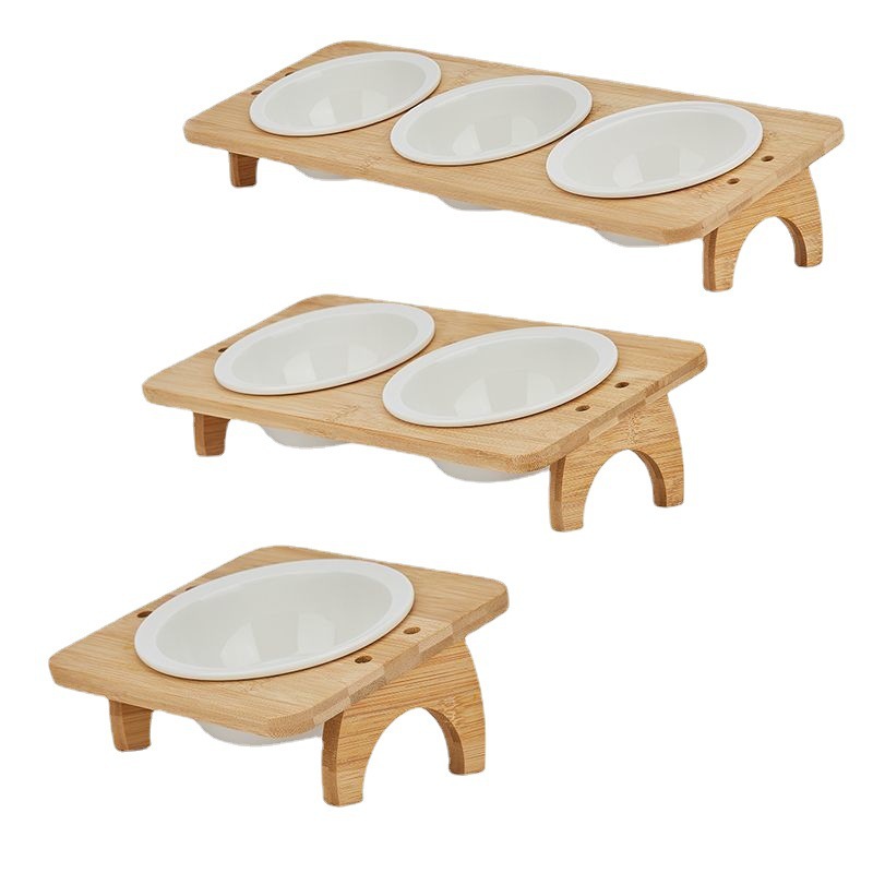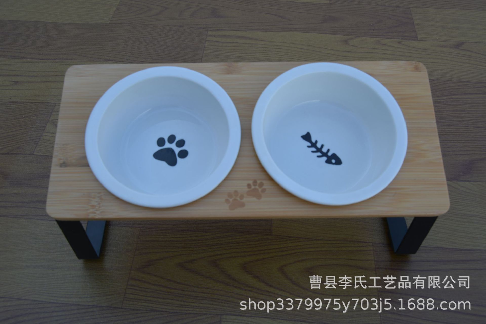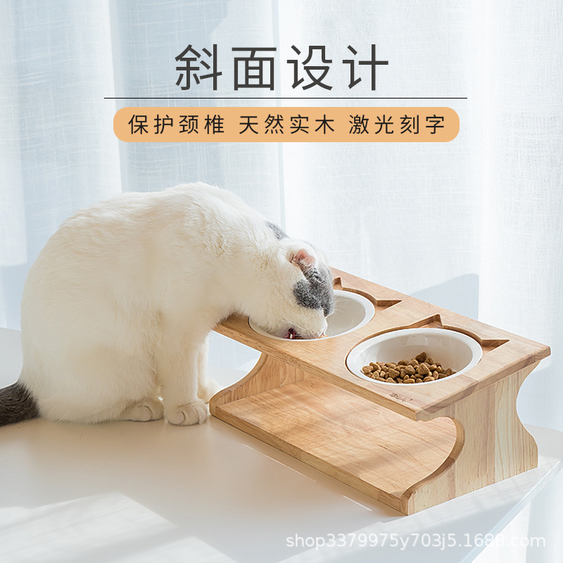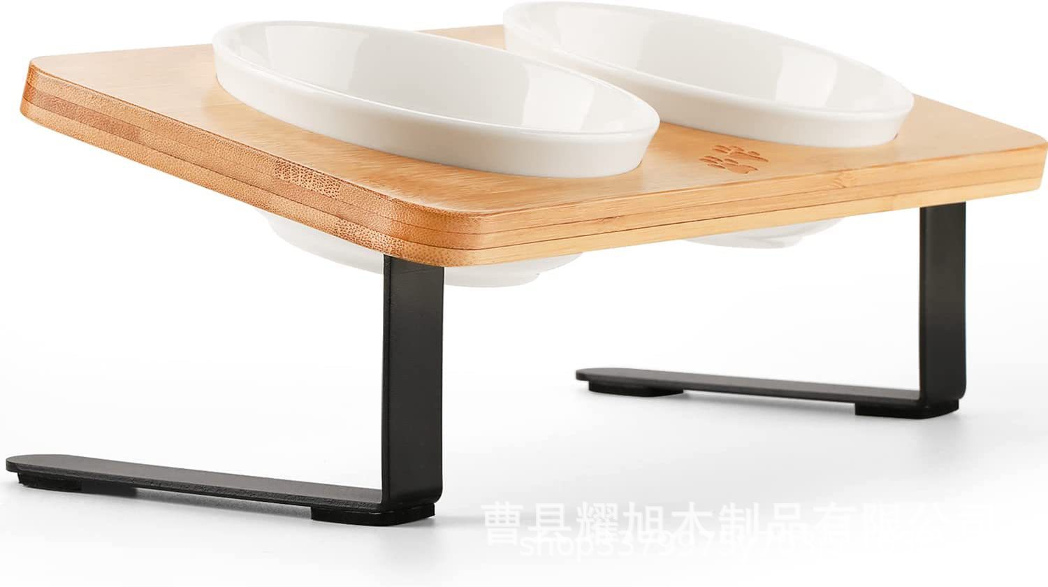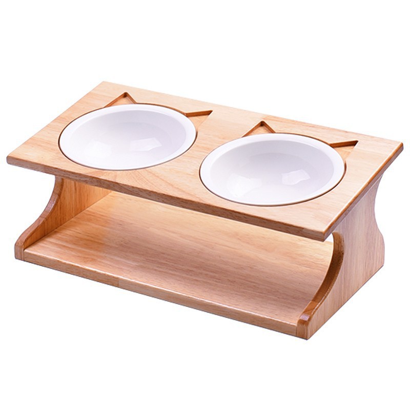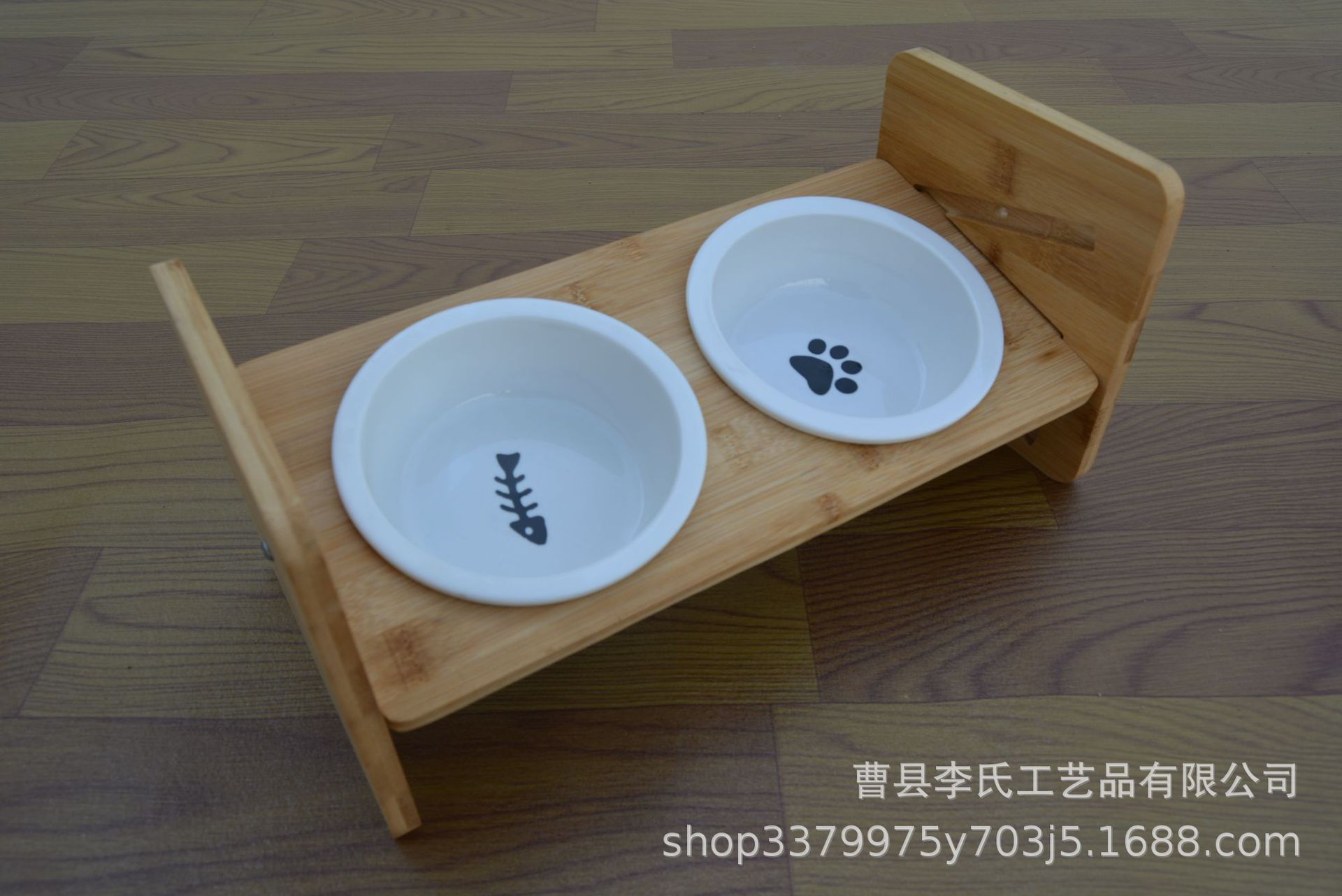 국경 간 나무 고양이 그릇 나무 애완 동물 피더 고양이와 개 그릇 랙 더블 그릇 냄비 랙 애완 동물 식기 식탁스토어 가기