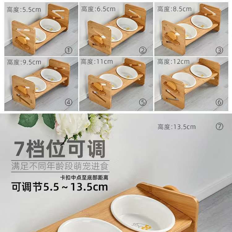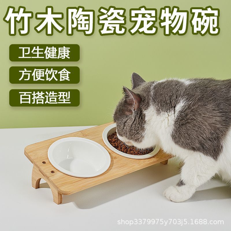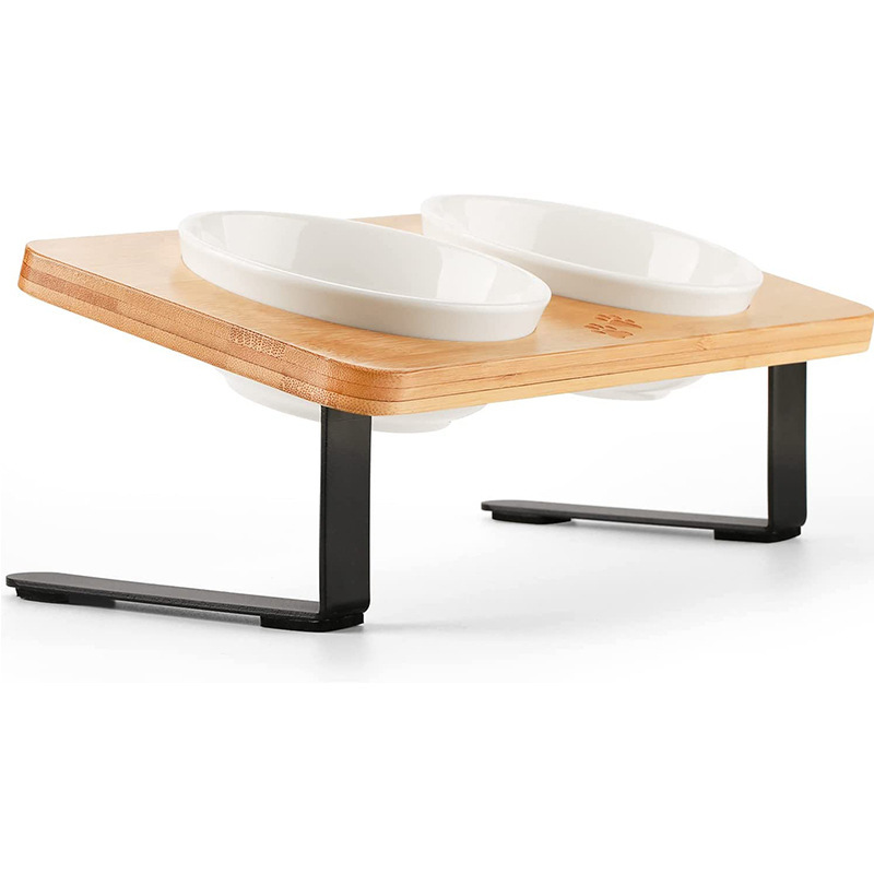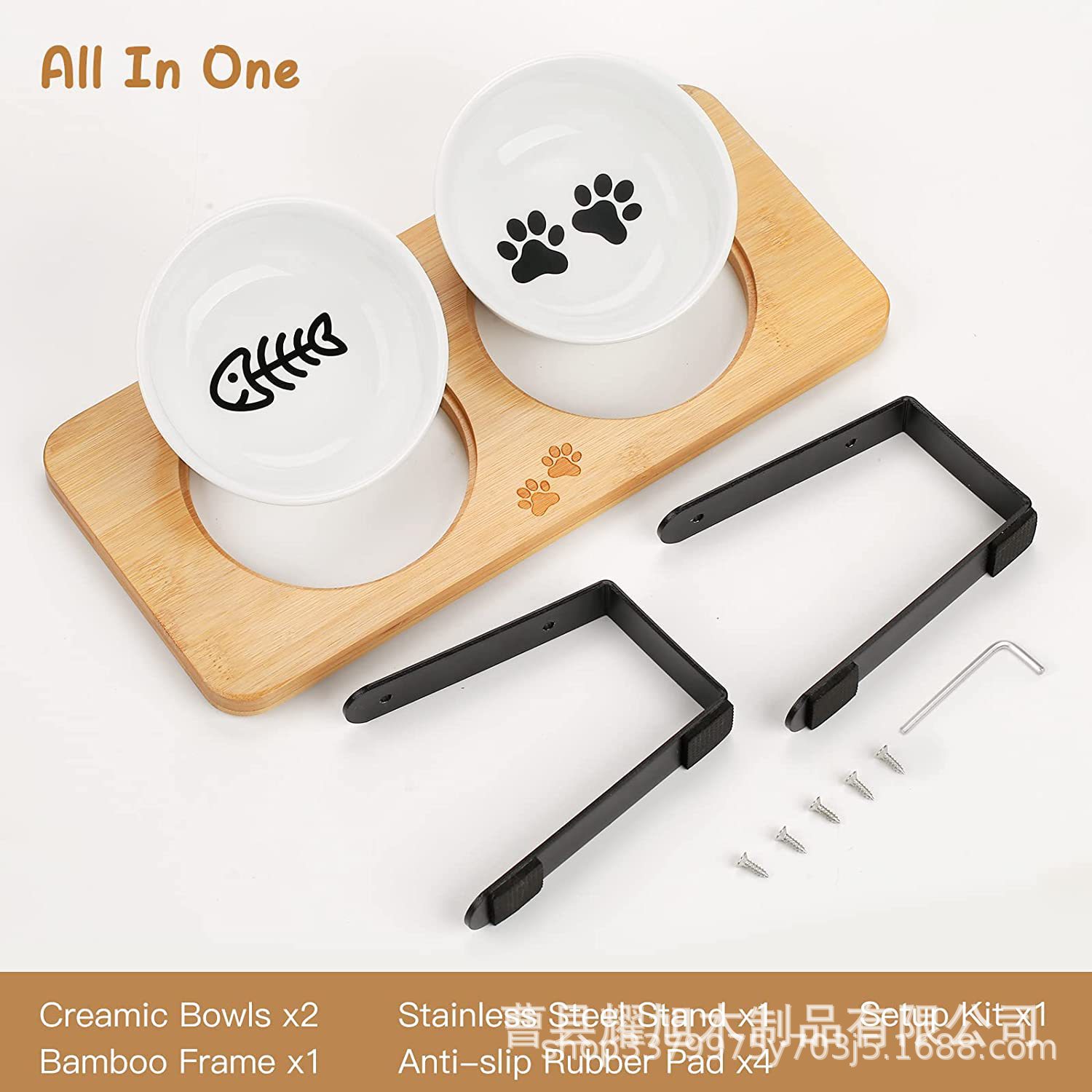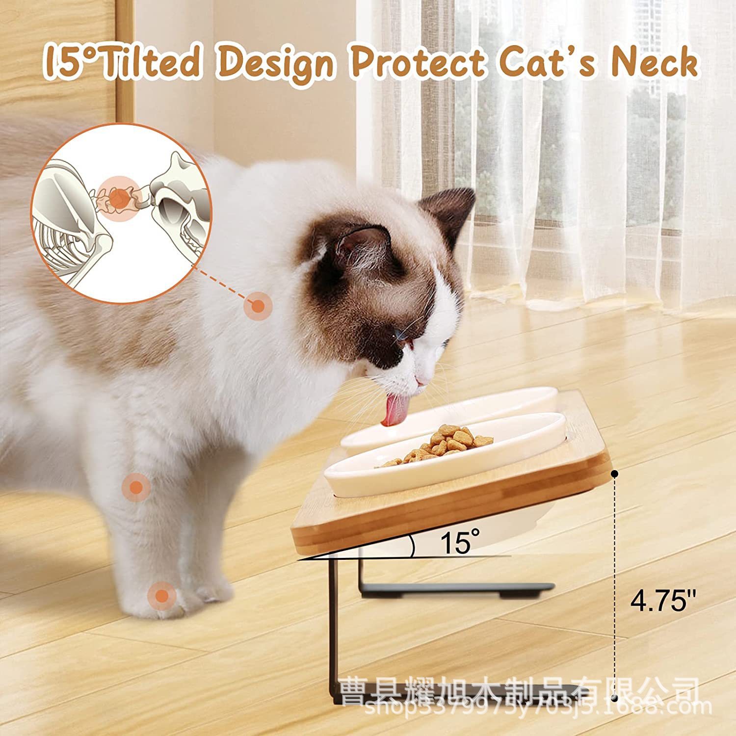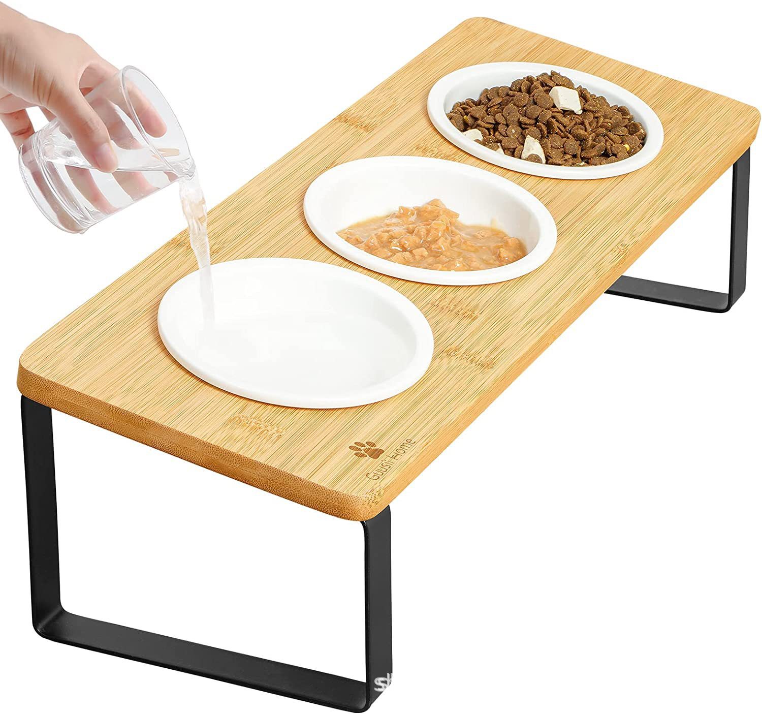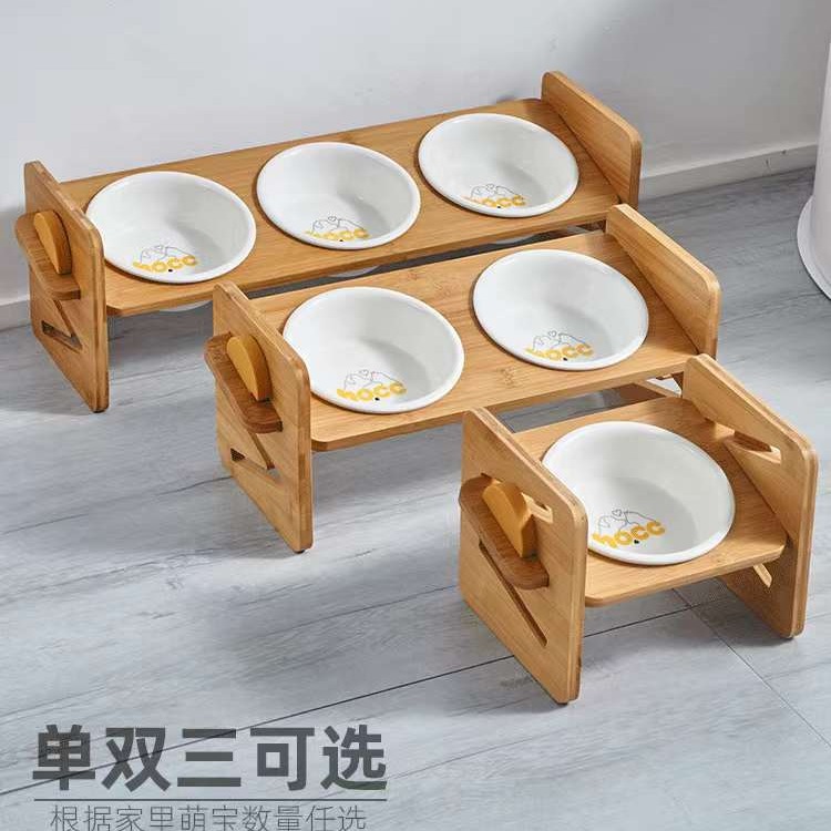 국경 간 나무 고양이 그릇 나무 애완 동물 피더 고양이와 개 그릇 랙 더블 그릇 냄비 랙 애완 동물 식기 식탁스토어 가기