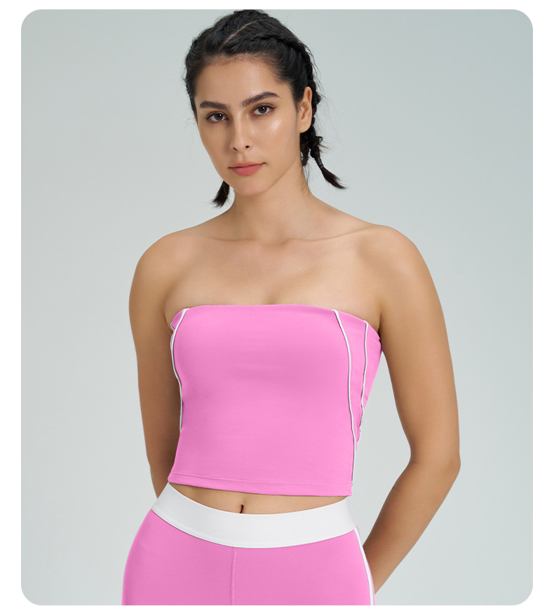 국경 간 뉴 스포츠 속옷 여성 알몸 센스 양면 스크럽 벨트 가슴 패드 대비 컬러 라인 슬림 요가 가슴 랩