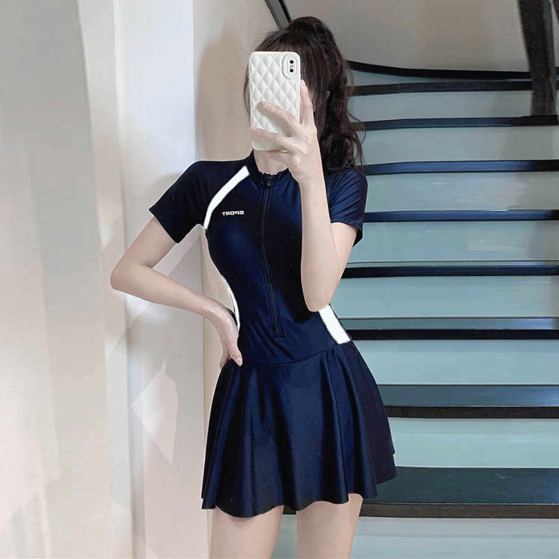 수영복 여성 원피스 긴팔 스포츠 스커트 스타일 보수적 슬림핏 슬림핏 육체 덮음 한국 스타일 간단한 캐주얼 수영복