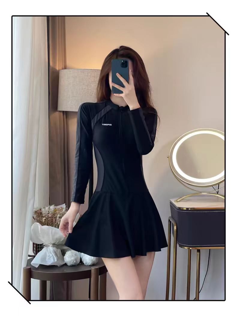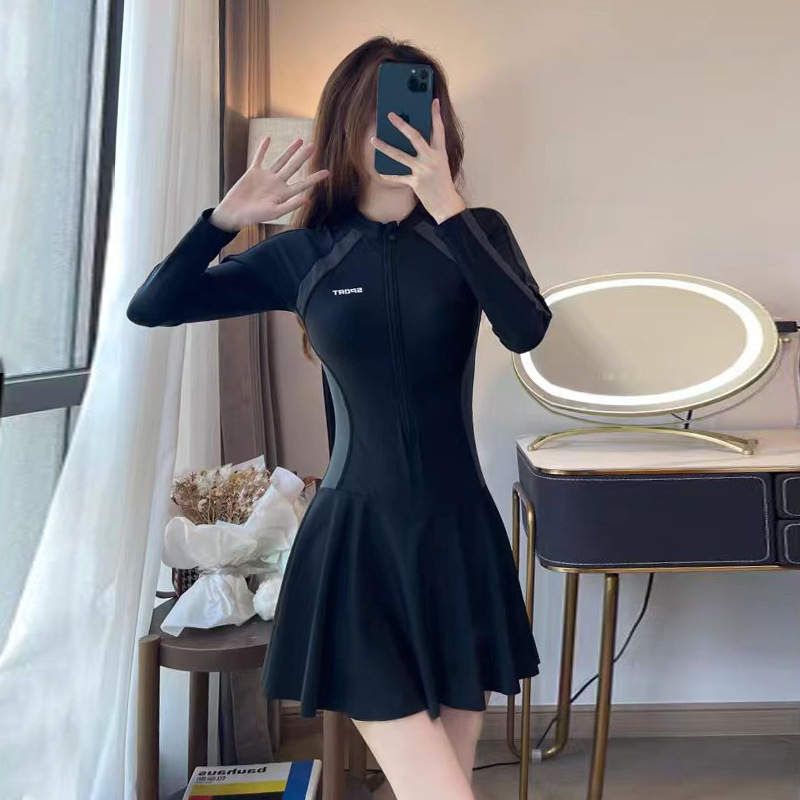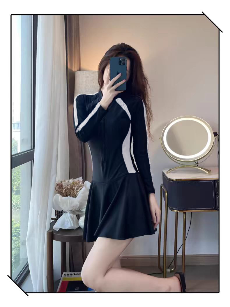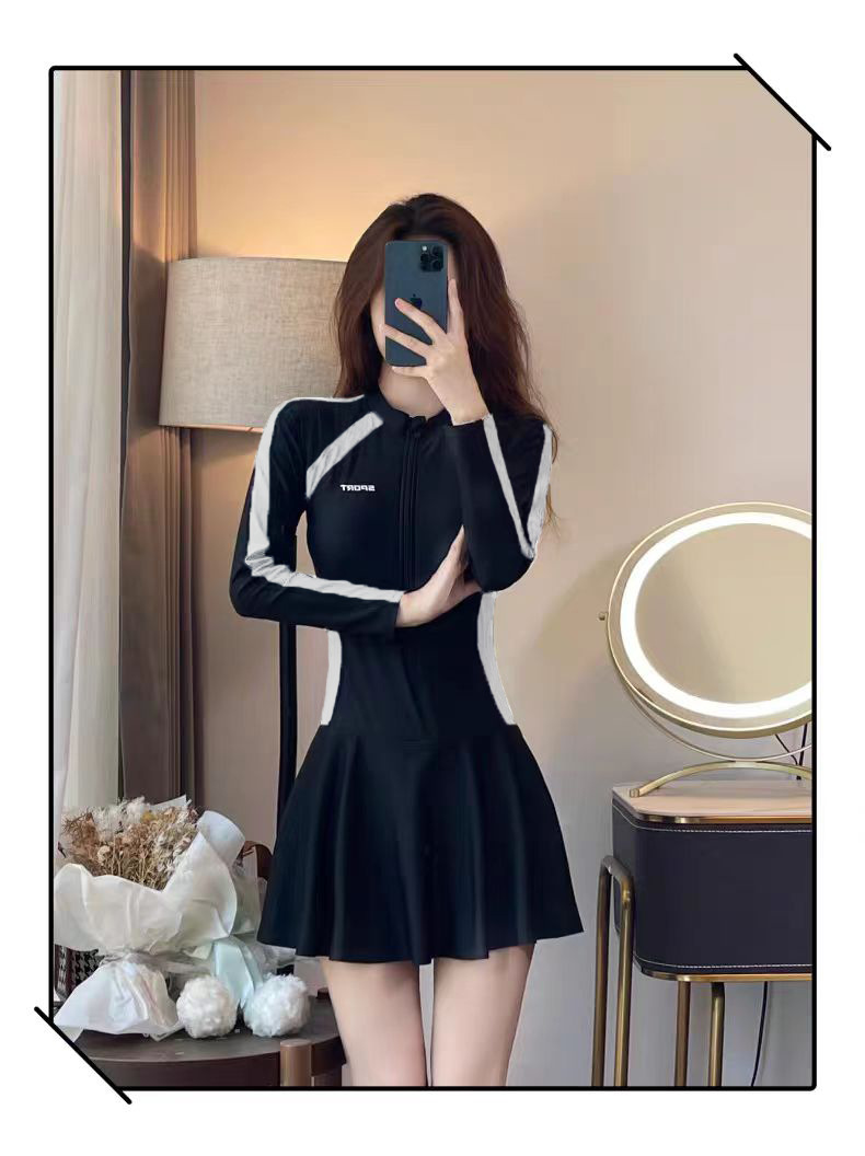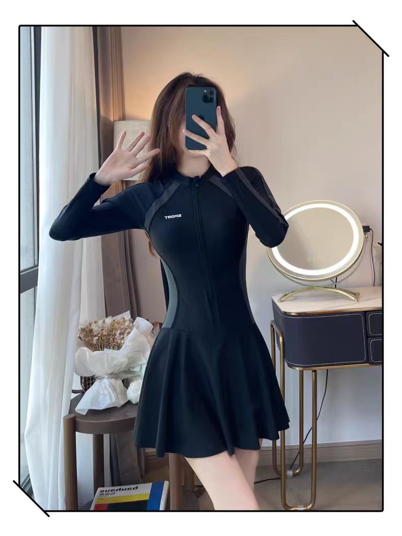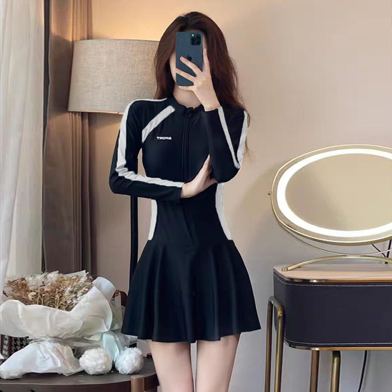 수영복 여성 원피스 긴팔 스포츠 스커트 스타일 보수적 슬림핏 슬림핏 육체 덮음 한국 스타일 간단한 캐주얼 수영복스토어 가기