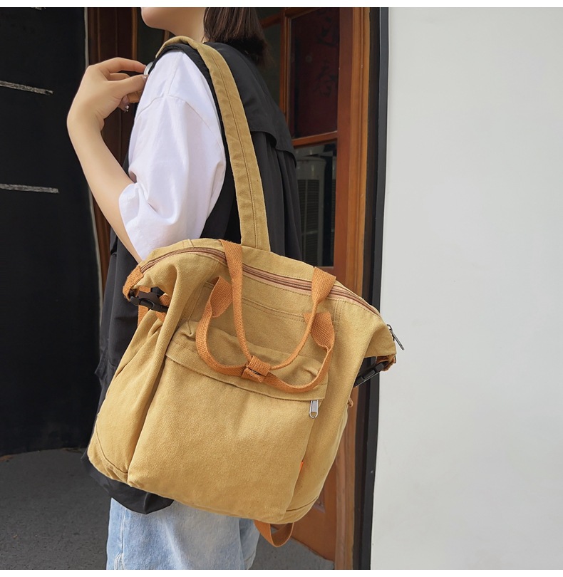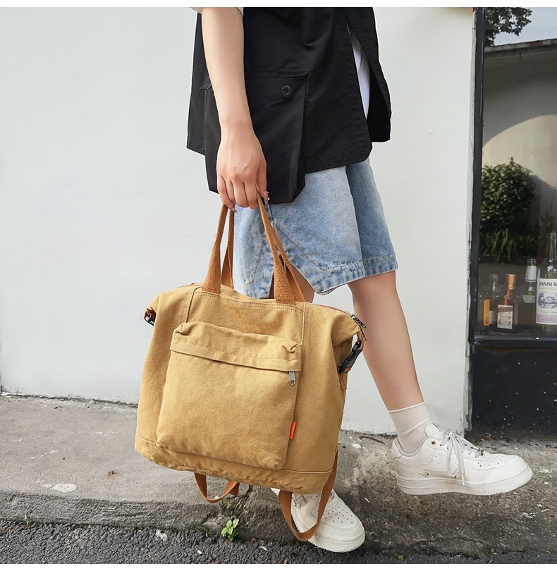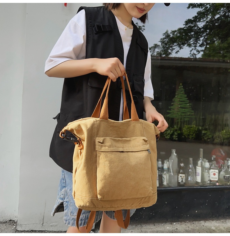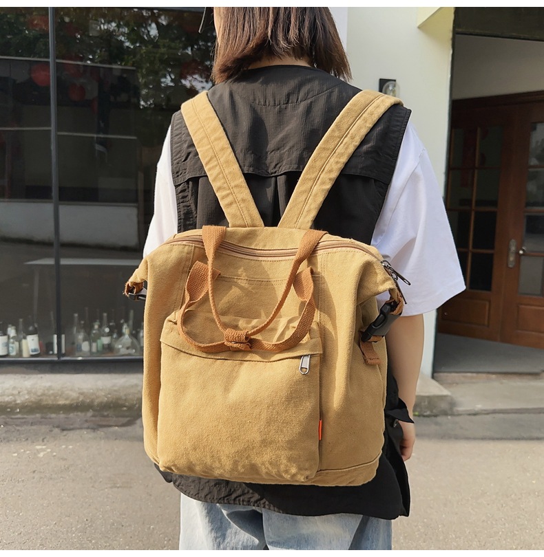 캔버스 배낭 여성의 2024 새로운 도착 배낭 학생의 예술적 복고풍 단색 모든 경기 쇼핑 여행 남성용 작은 학교 가방스토어 가기