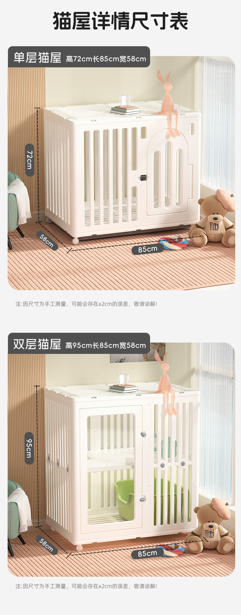 크로스 국경 수지 애완 동물 집 사계절 유니버설 투명 더블 레이어 고양이 빌라 플라스틱 고양이 캐비닛 가정용 실내 파노라마 고양이 집