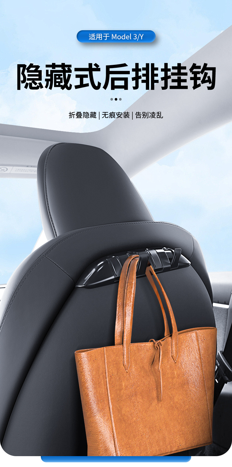 테슬라 신형 모델3/Y용 접이식 시트 등받이 차량용 수납 후크 도매스토어 가기