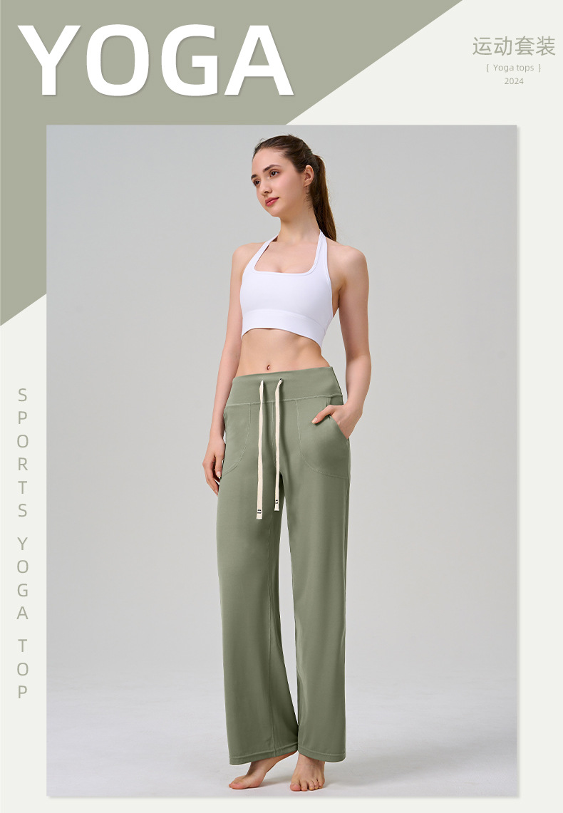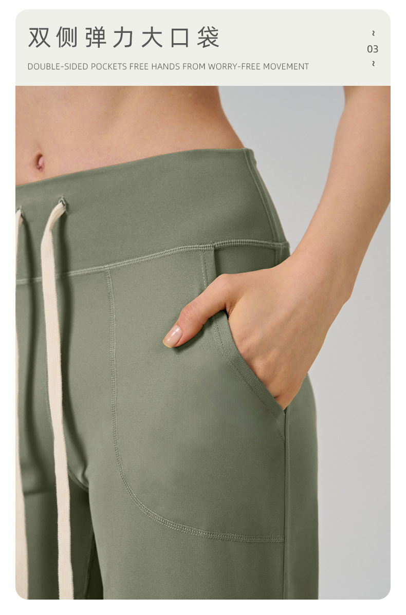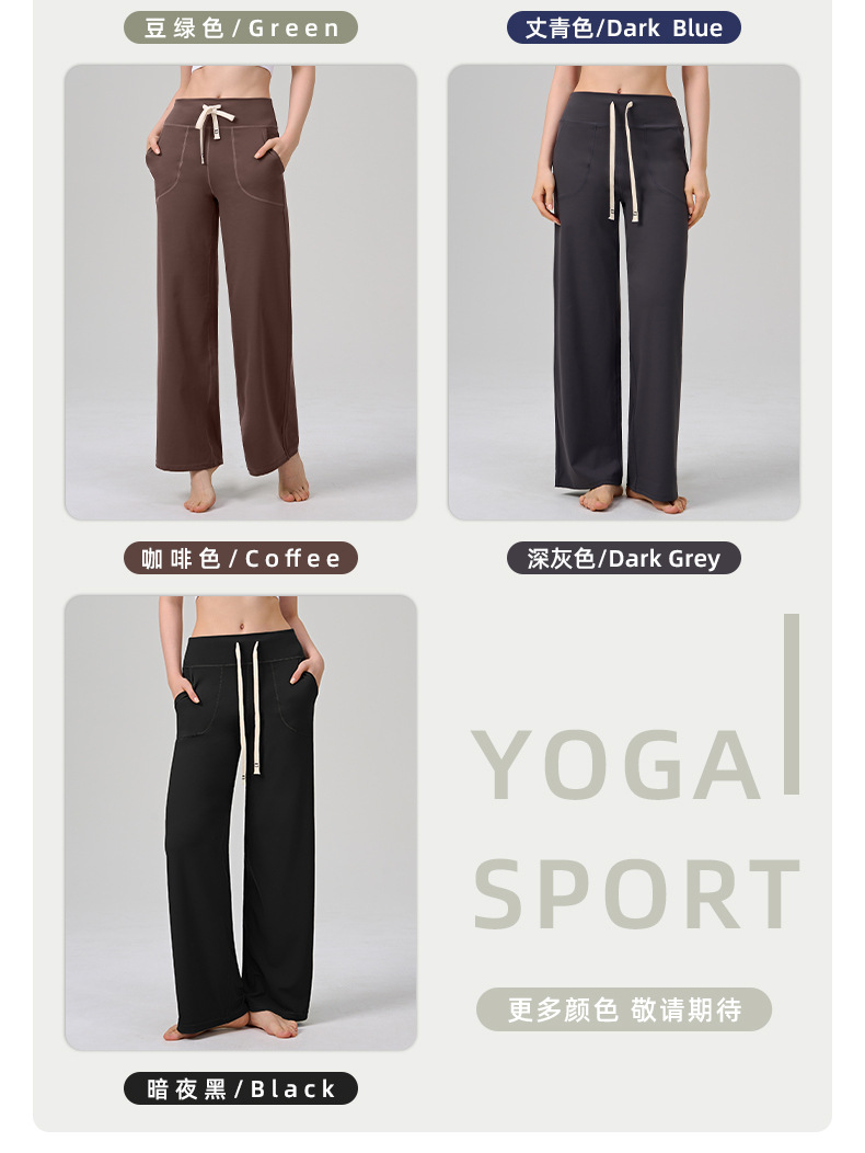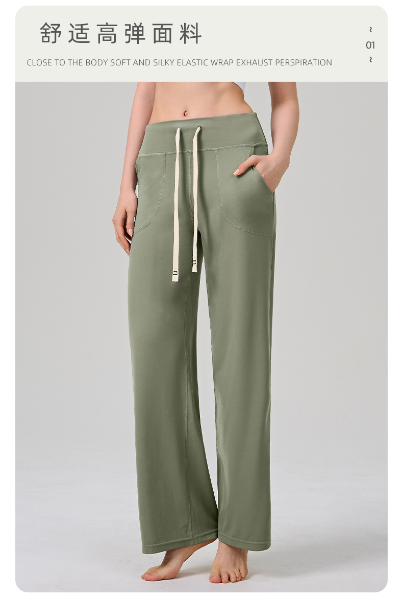 벌거 벗은 양면 스크럽 와이드 레그 팬츠 여름 여성 교수형 스포츠 스트레이트 캐주얼 하이 허리 드로우 스트링 요가 바지 통기성스토어 가기