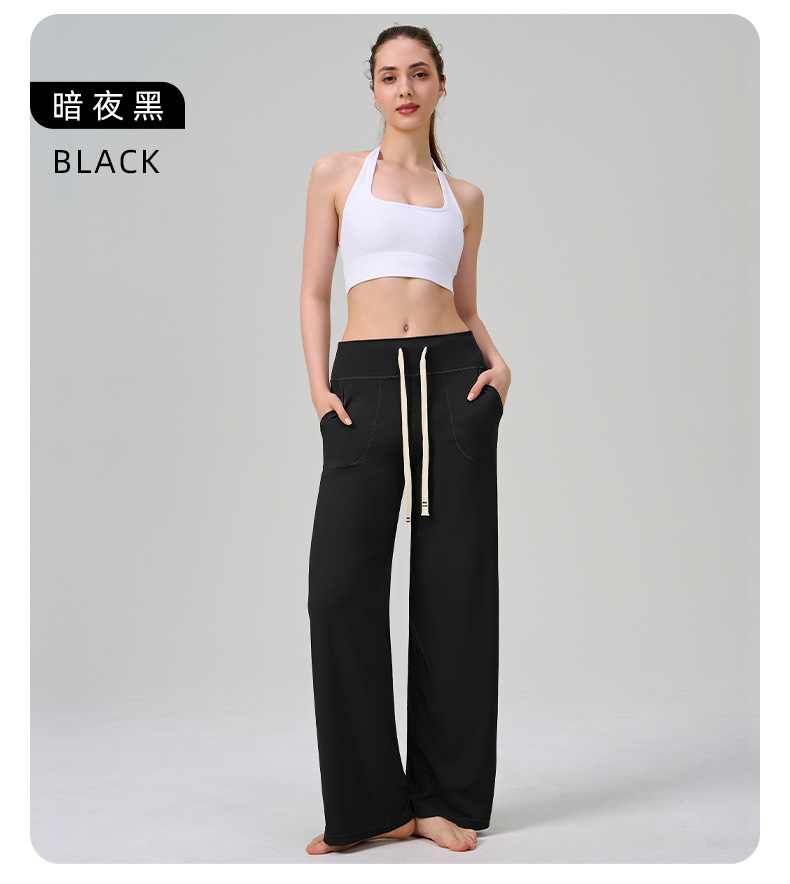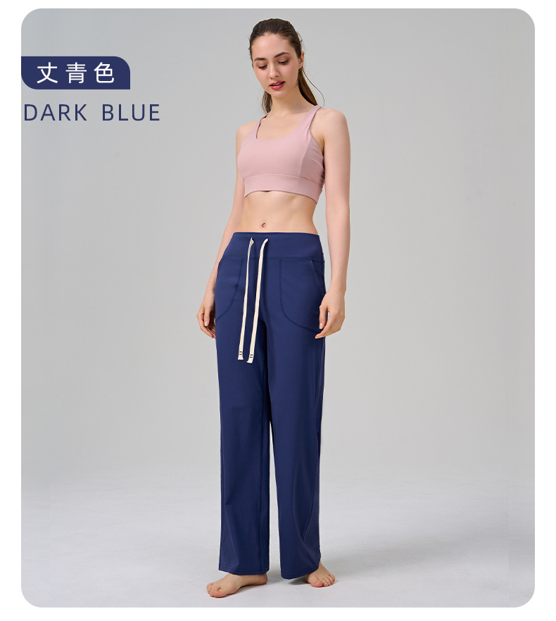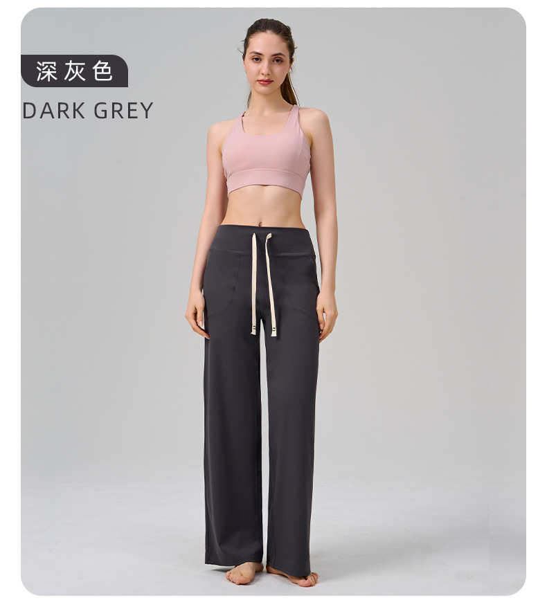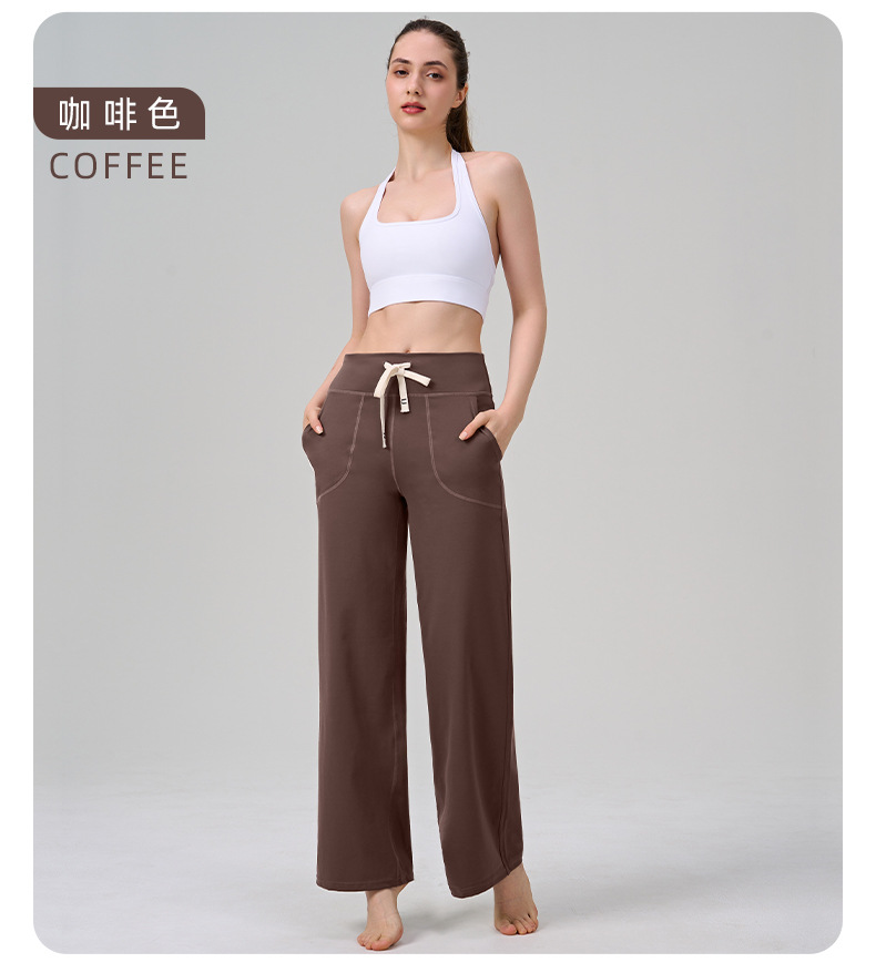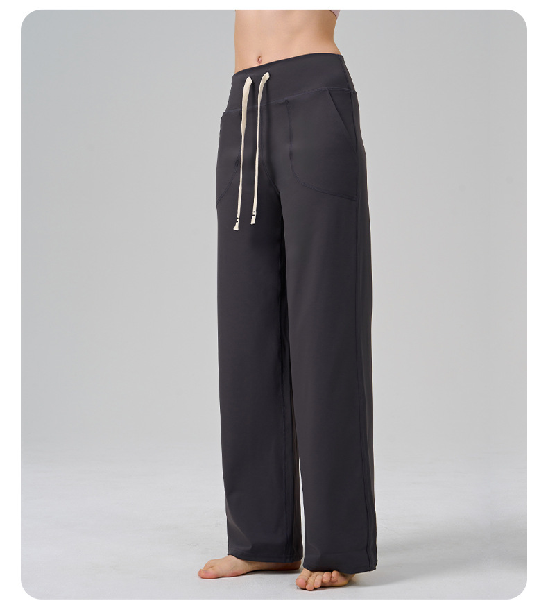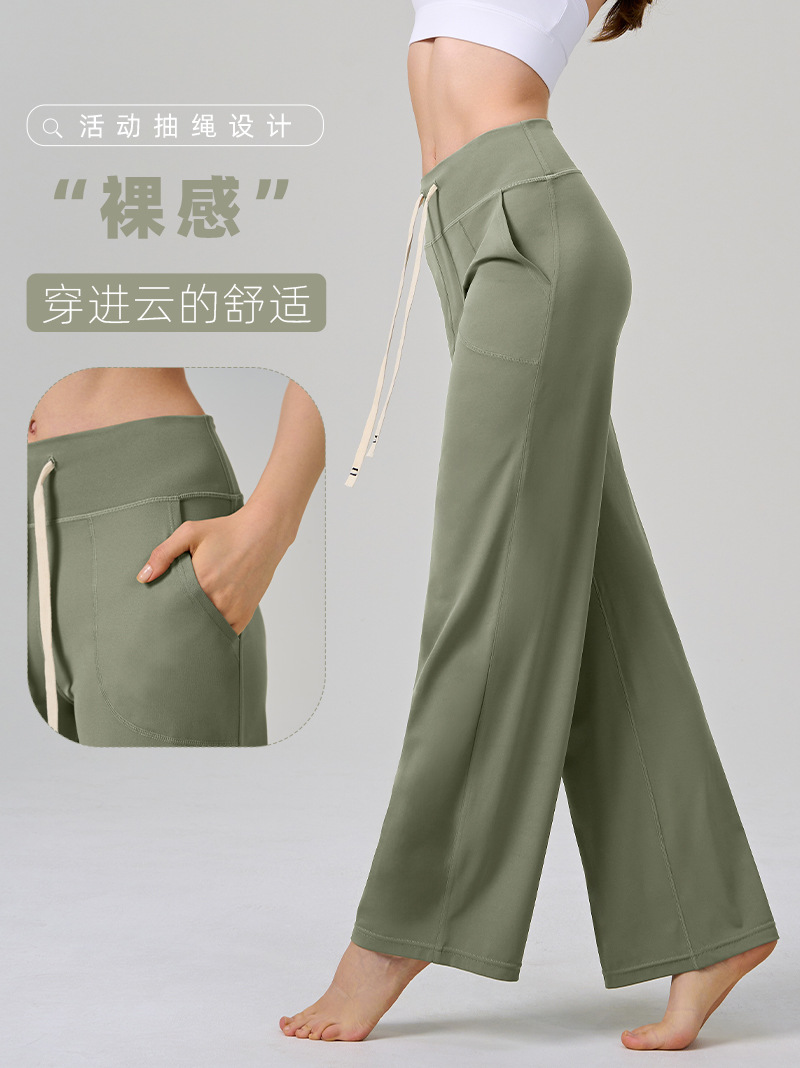 벌거 벗은 양면 스크럽 와이드 레그 팬츠 여름 여성 교수형 스포츠 스트레이트 캐주얼 하이 허리 드로우 스트링 요가 바지 통기성