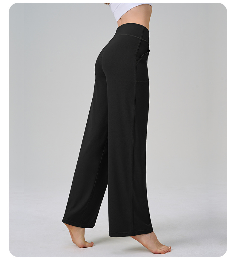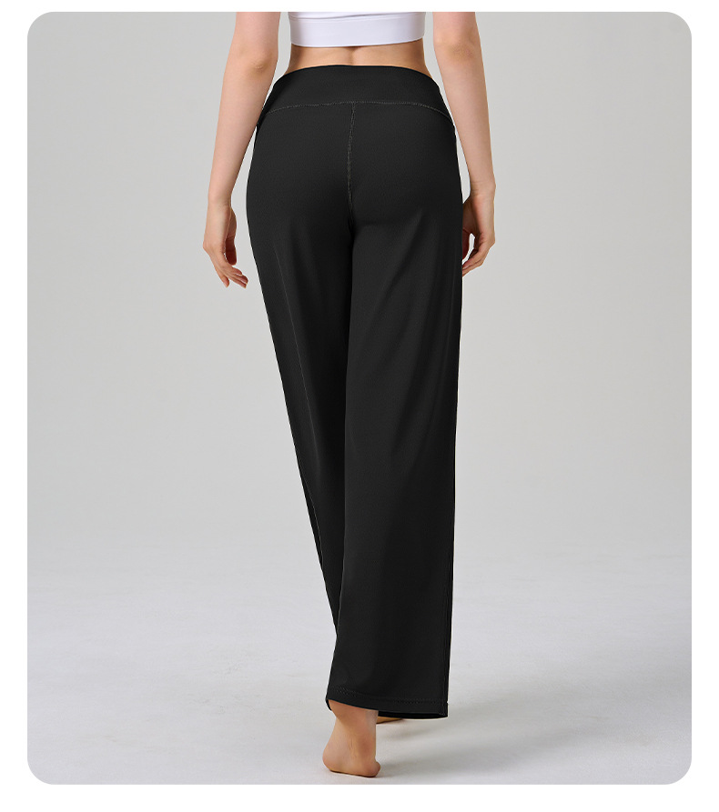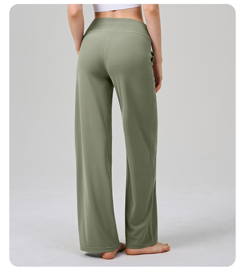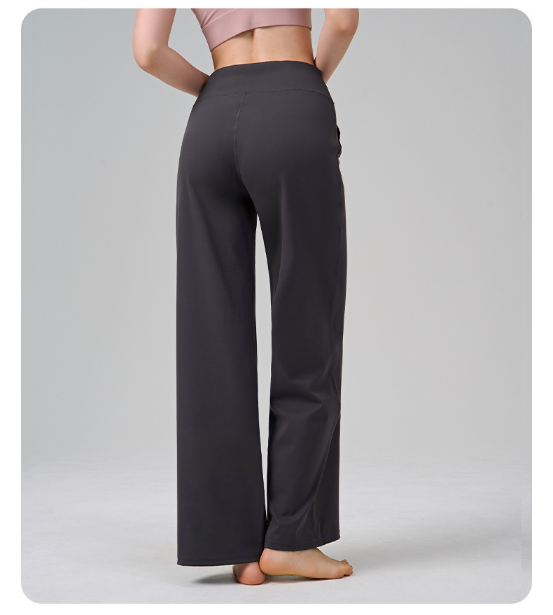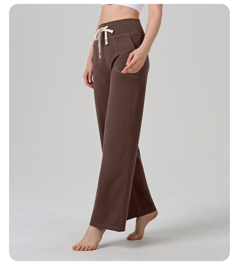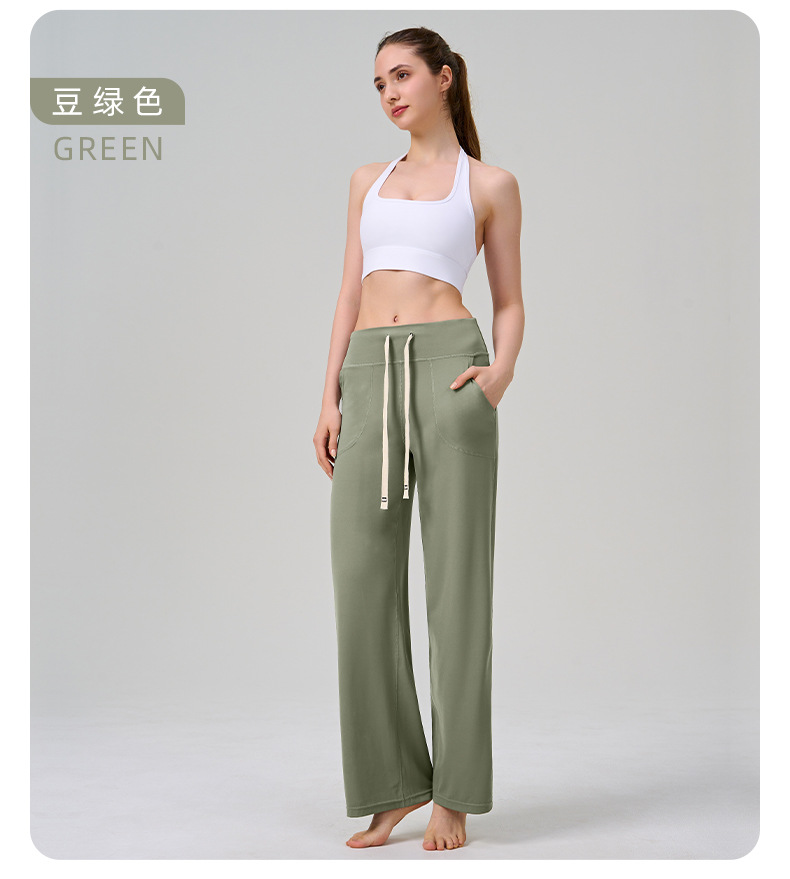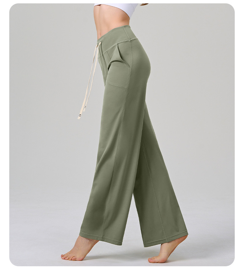 벌거 벗은 양면 스크럽 와이드 레그 팬츠 여름 여성 교수형 스포츠 스트레이트 캐주얼 하이 허리 드로우 스트링 요가 바지 통기성