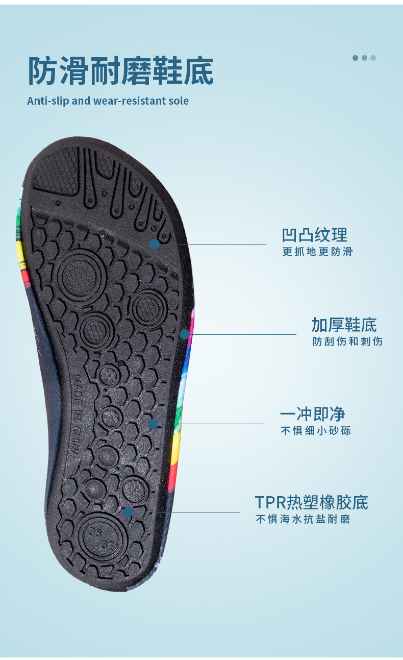공장 직접 판매 도매 남성과 여성의 성인 해변 신발 미끄럼 방지 부드러운 바닥 봄과 여름 다이빙 스노클링 맨발 신발스토어 가기