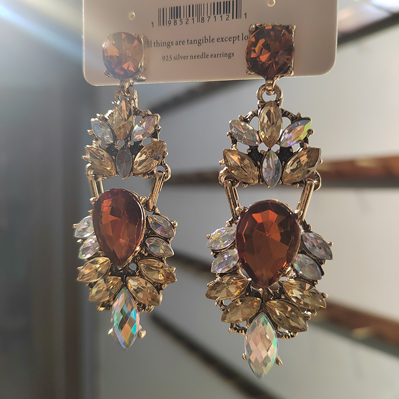 빈티지 복고풍 유럽과 미국 인은 오래된 스타일의 플래시 기질 과장된 인레이 라인 석 틈새 귀걸이 귀 클립 귀걸이