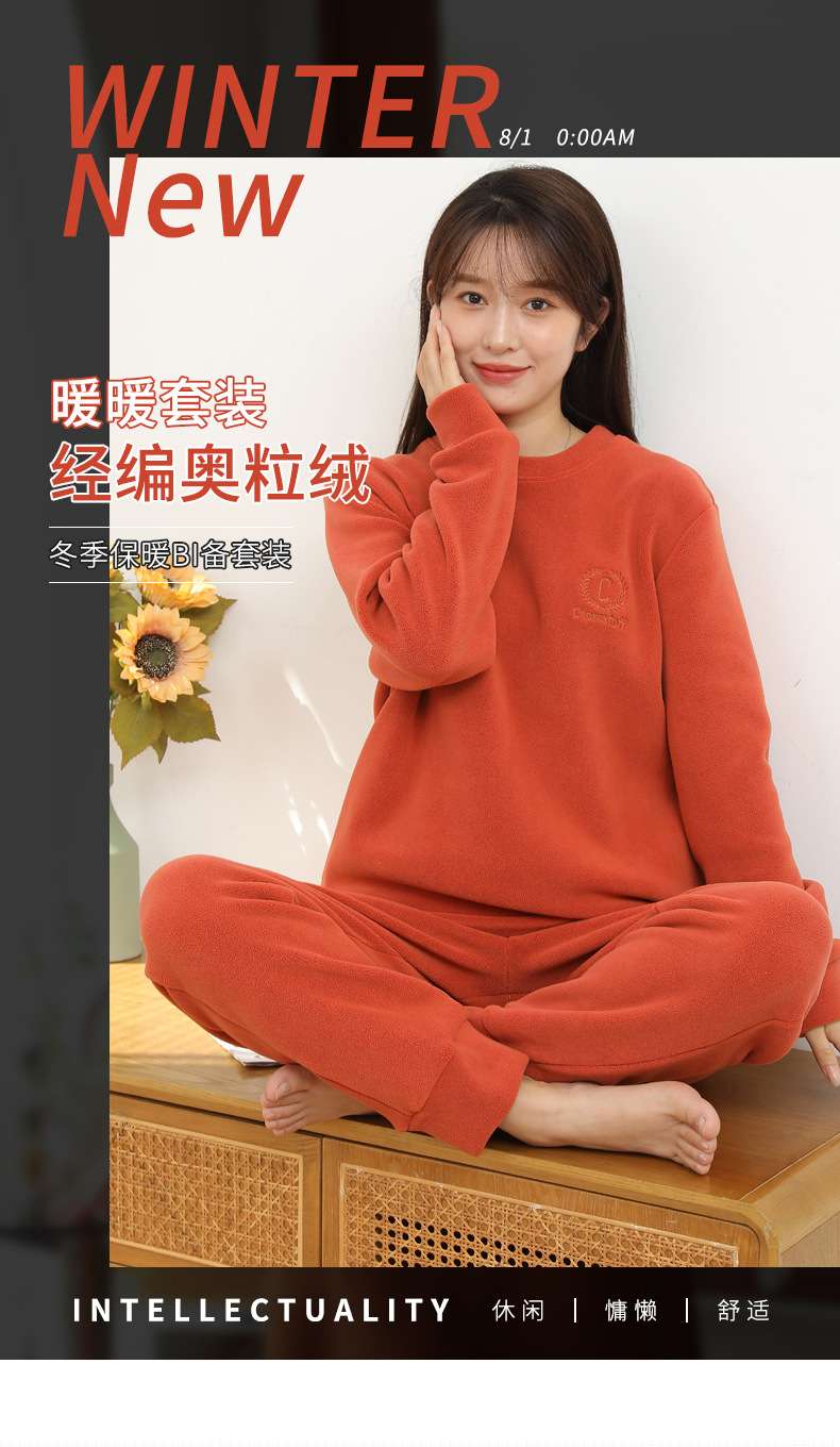 잠옷 여성의 겨울 기모 두꺼운 양털 캐주얼 세트 여성의 2024 새로운 니트 따뜻한 스웨터 홈 의류스토어 가기