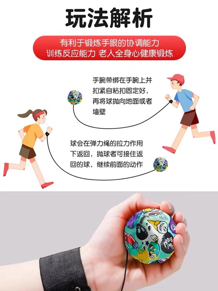 문 돌 손목 밧줄이있는 탄성 볼 pu 야외 스포츠 감압 벤트 볼 어린이 손 던지기스토어 가기