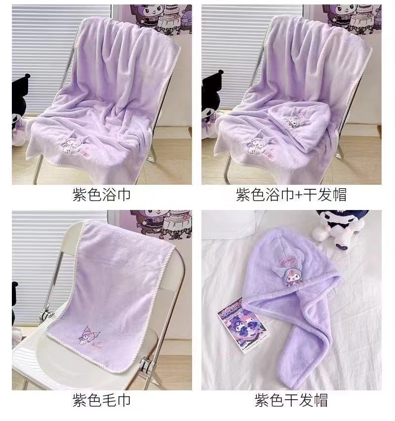 Ins Kulomi Bath Towel 3 조각 세트 만화 수놓은 물 흡수성 머리없는 학생 귀여운 여성 목욕 빠른 건조 랩 타월스토어 가기