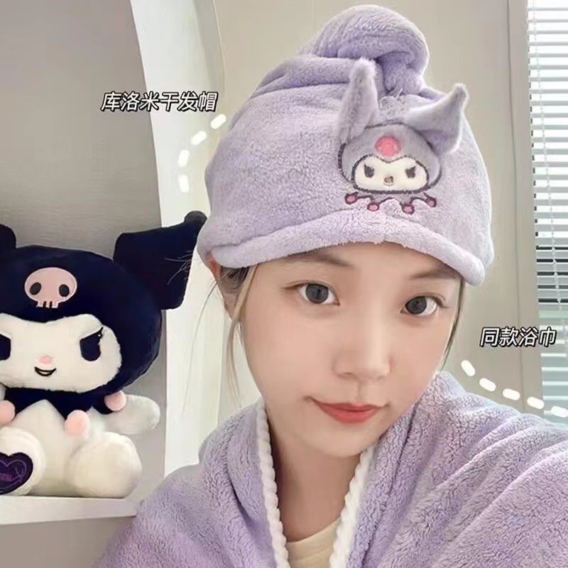 Ins Kulomi Bath Towel 3 조각 세트 만화 수놓은 물 흡수성 머리없는 학생 귀여운 여성 목욕 빠른 건조 랩 타월