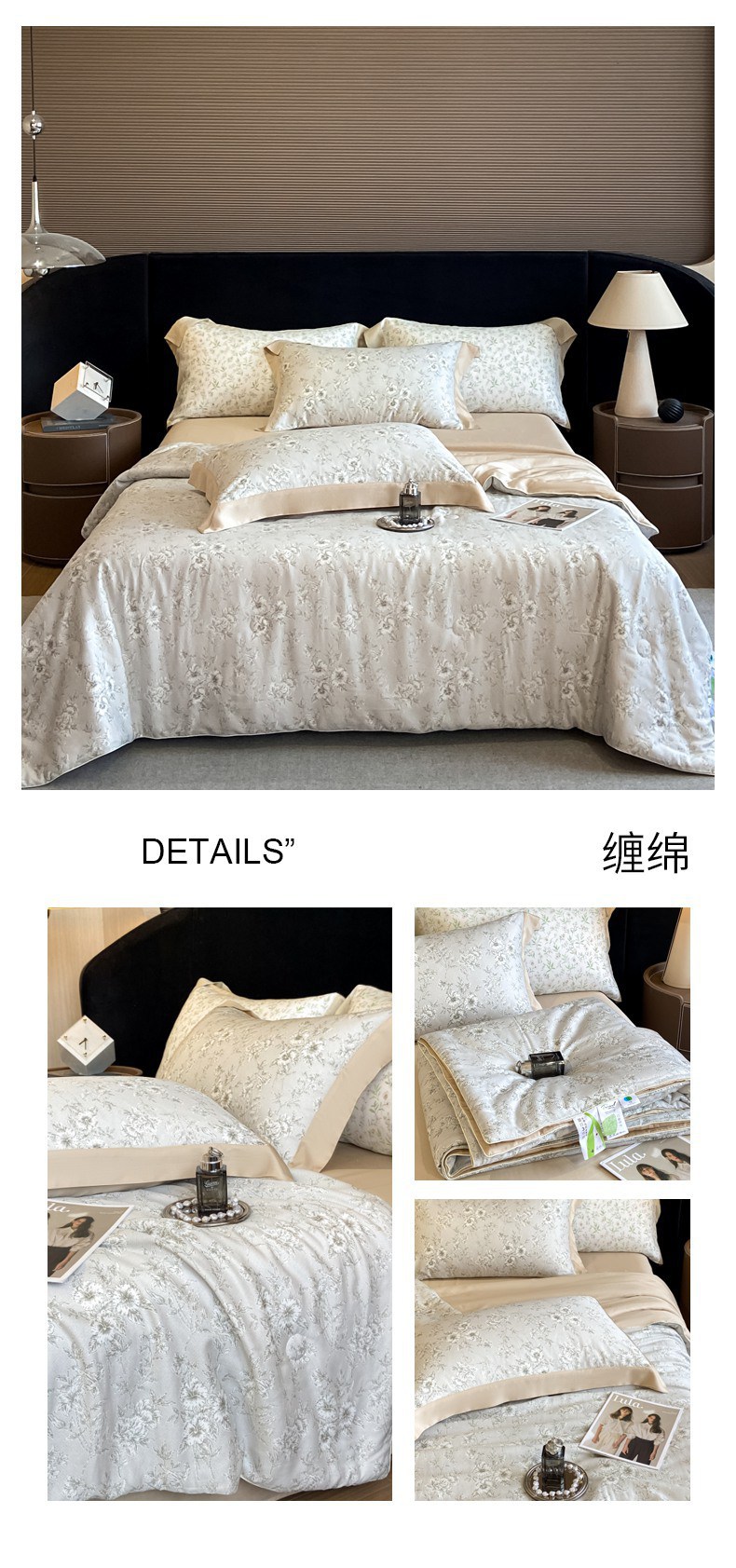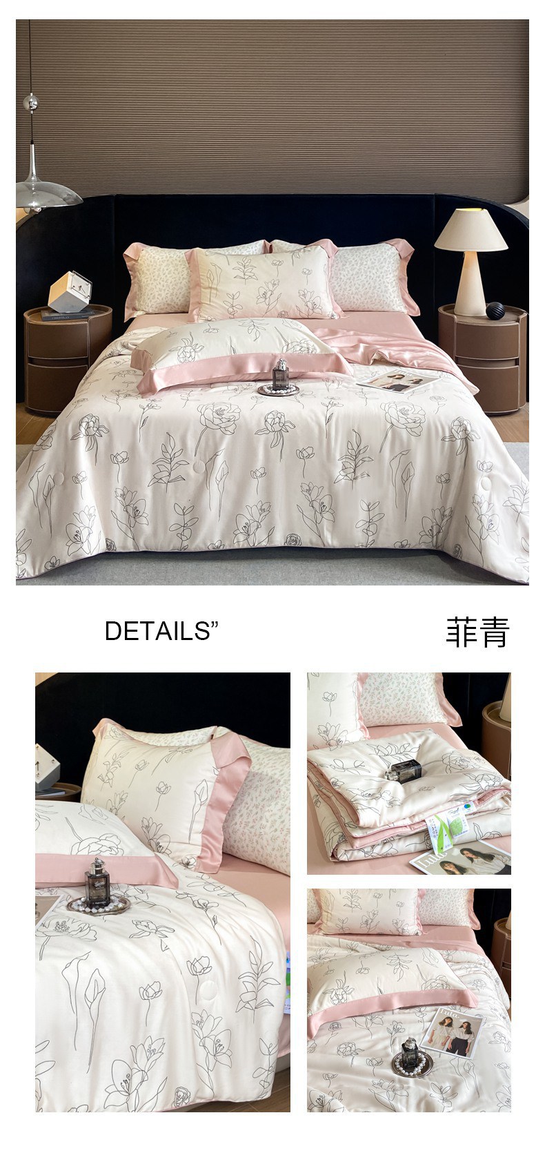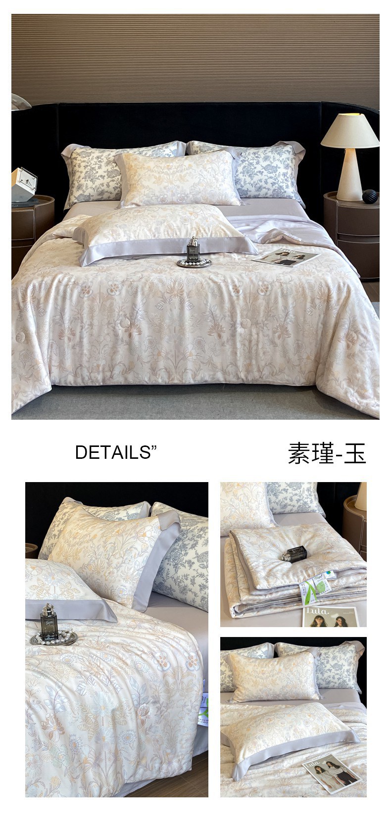 클래스 A 100 양면 텐셀 인쇄 여름 퀼트 아이스 실크 에어컨 퀼트 부드러운 누드 잠자는 부드러운 여름 퀼트 4 피스 세트
