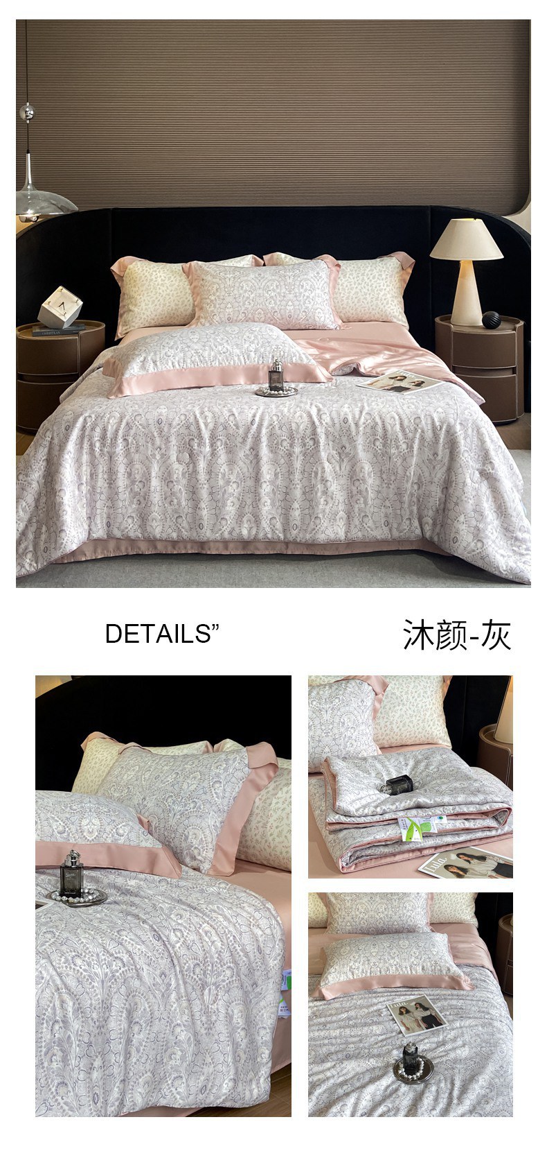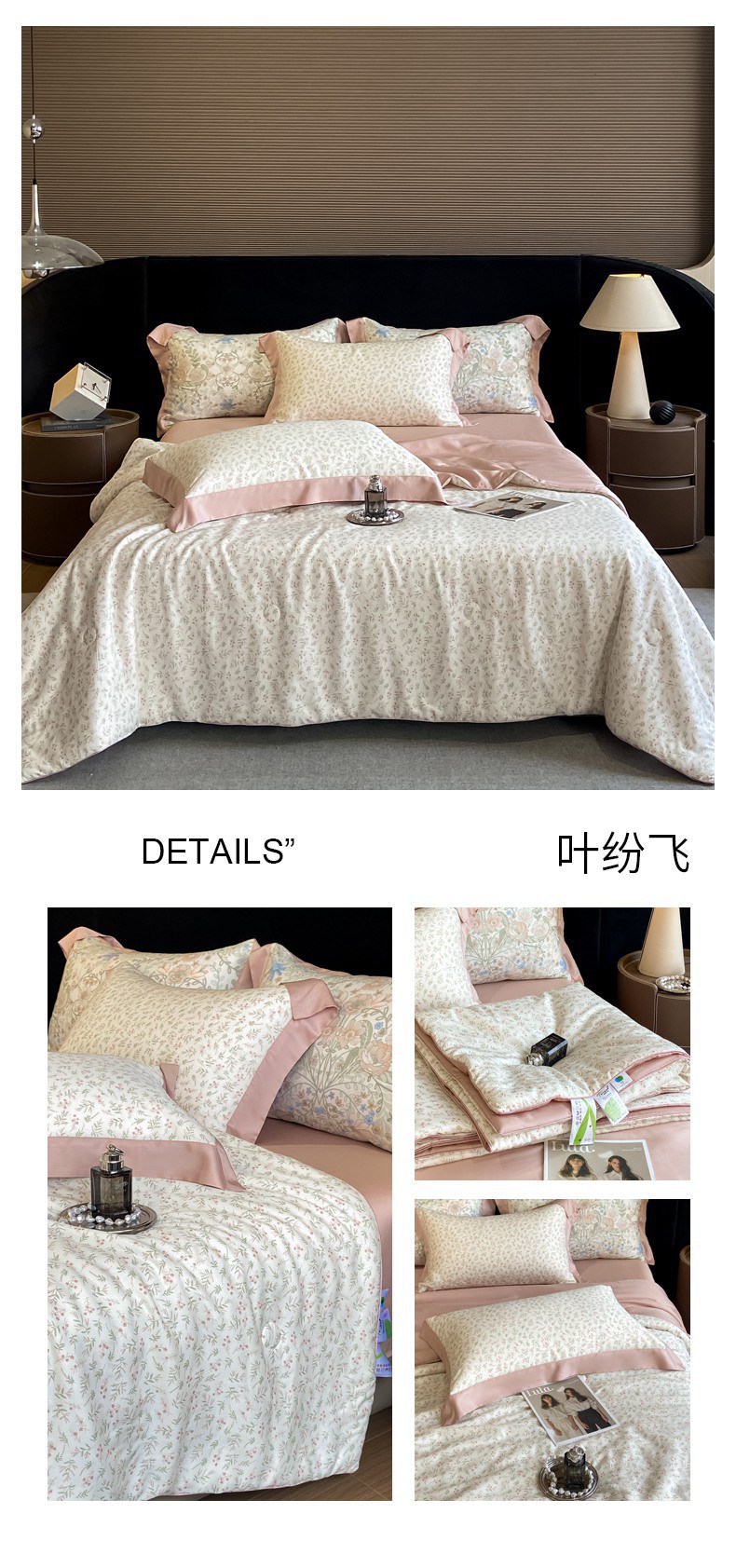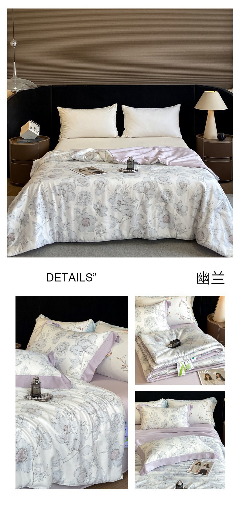 클래스 A 100 양면 텐셀 인쇄 여름 퀼트 아이스 실크 에어컨 퀼트 부드러운 누드 잠자는 부드러운 여름 퀼트 4 피스 세트