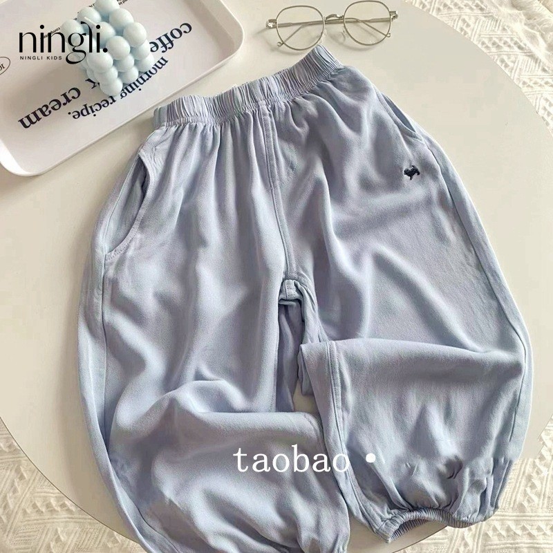 닝리 소녀의 얼음 실크 모기 방지 바지 여름 새로운 어린이 부드러운 느슨한 캐주얼 바지 아기 컬러 랜턴 바지