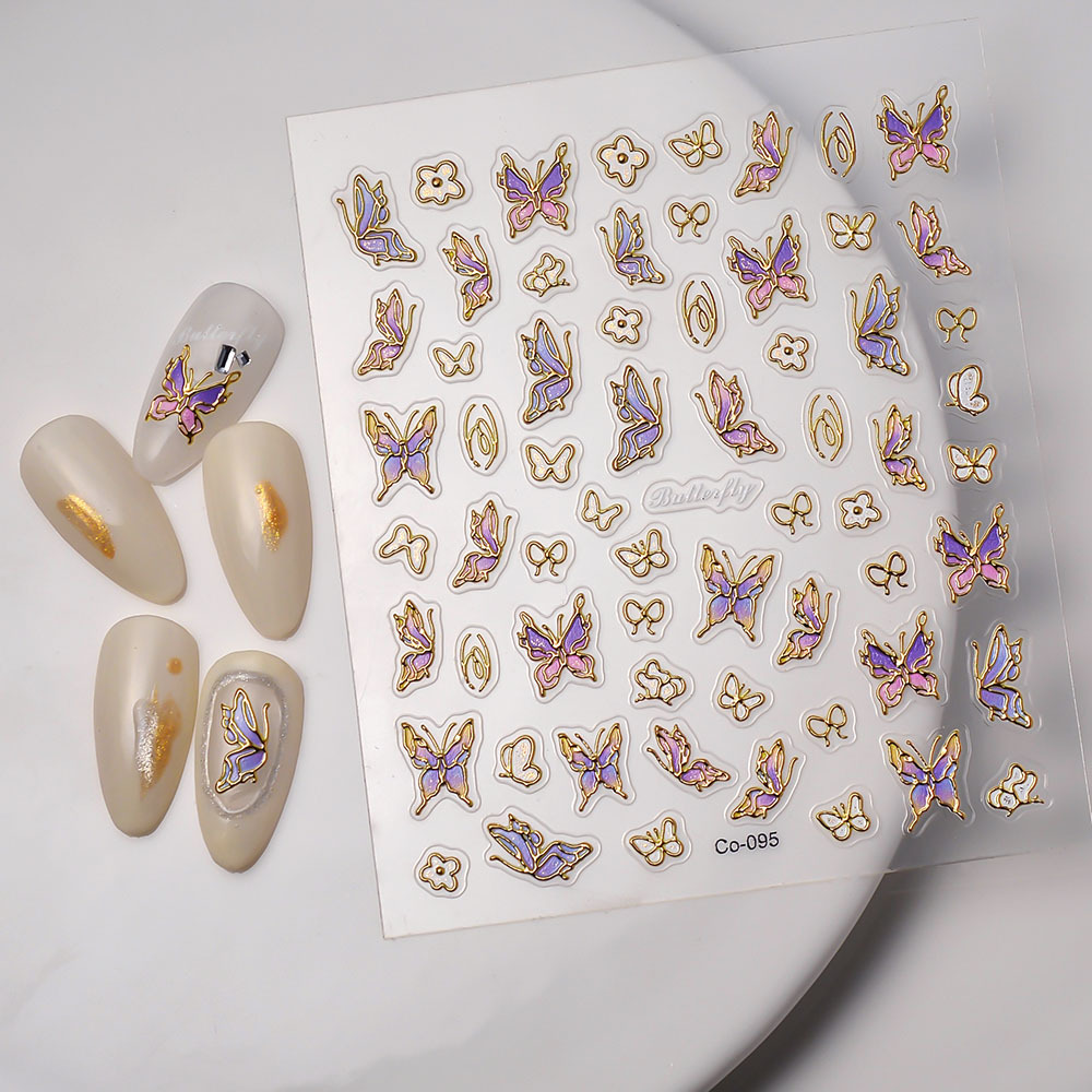 Wangyuan 새로운 프로세스 브론징 나비 네일 아트 스티커 Ins Flower 5d 접착 네일 스티커 스테레오 브론징 시리즈스토어 가기
