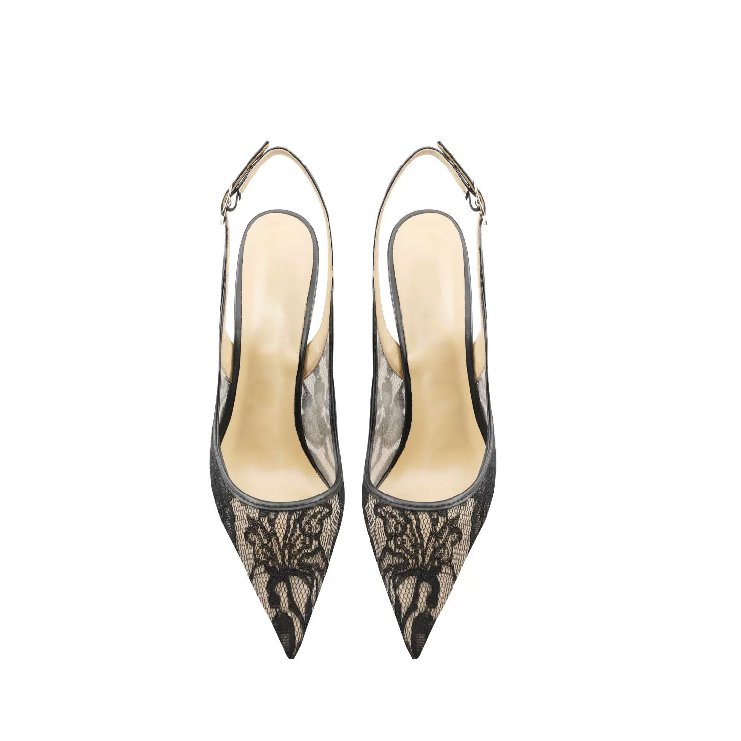 Guoar Cross-border 2024 새로운 포인터 레이스 메쉬 통기성 후면 빈 버클 여성용 얇은 힐 샌들