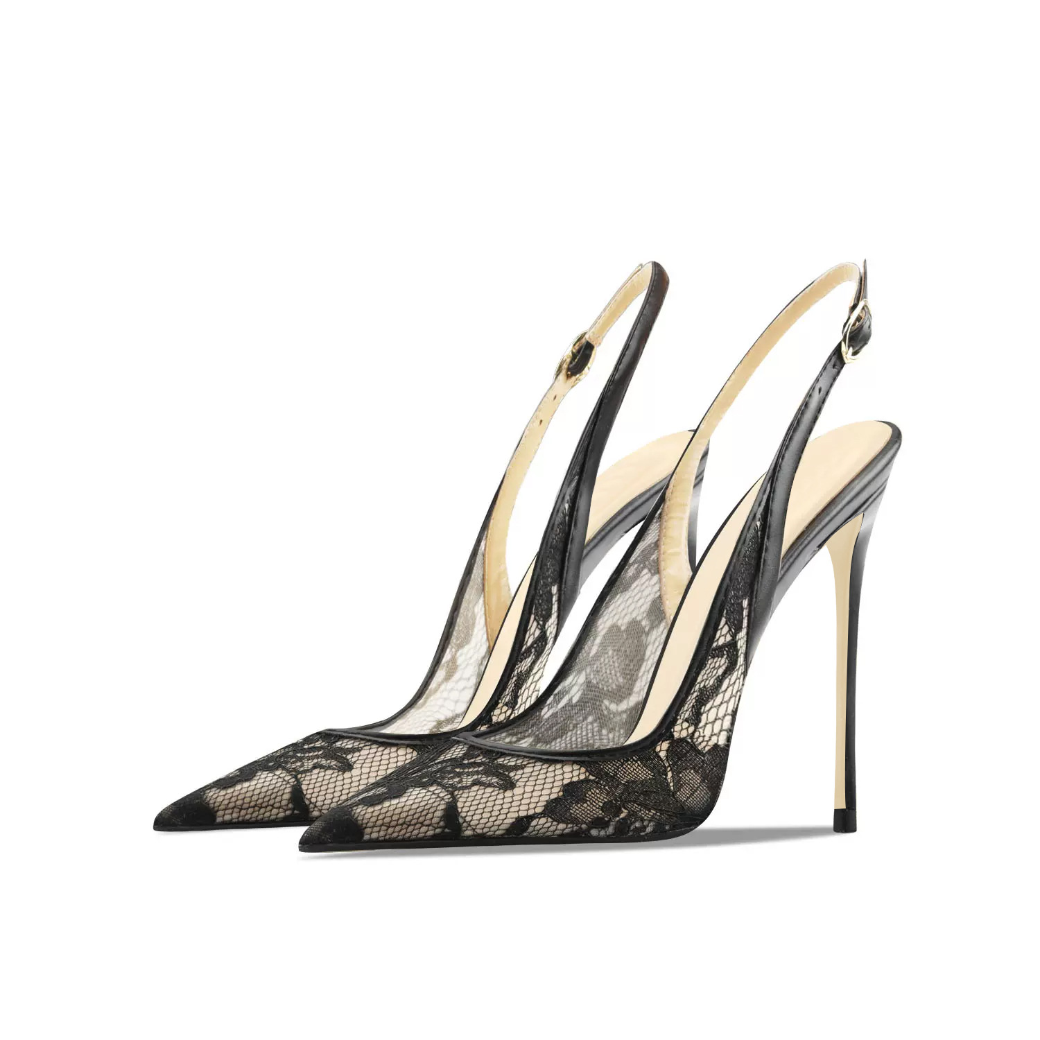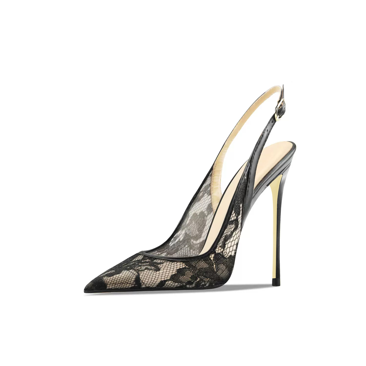Guoar Cross-border 2024 새로운 포인터 레이스 메쉬 통기성 후면 빈 버클 여성용 얇은 힐 샌들스토어 가기
