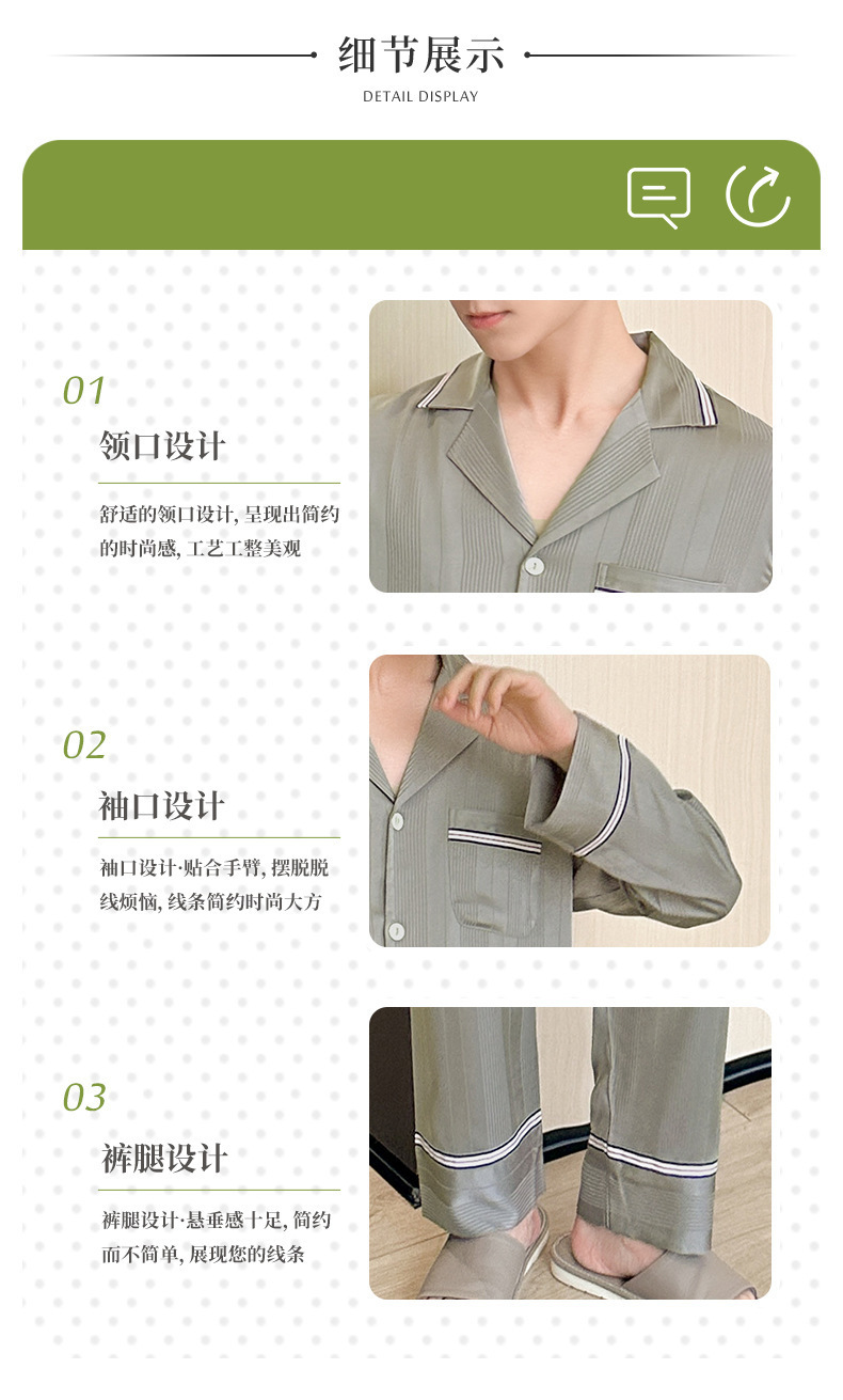 2024 봄과 가을 새 커플 잠옷 아이스 실크 얇은 긴팔 바지 2 피스 세트 남성과 여성의 줄무늬 인쇄 홈스토어 가기