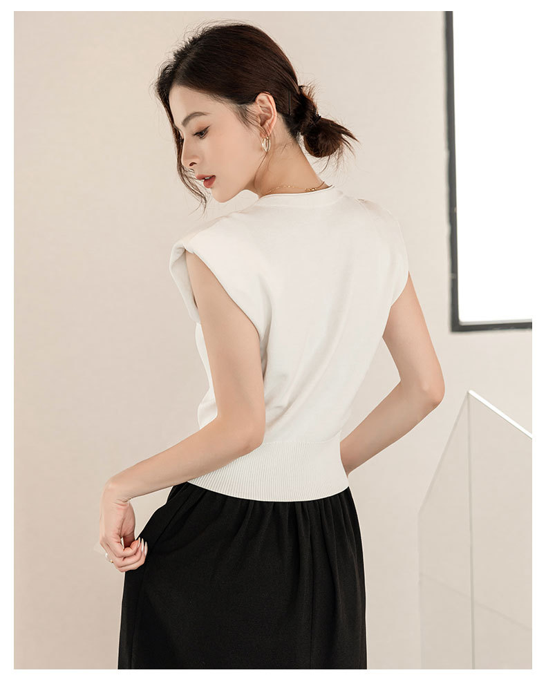엔디 니트 조끼 여자 2024 년 여름 새로운 금속 대비 컬러 통근 리틀 V-넥 우아한 허리 코트스토어 가기