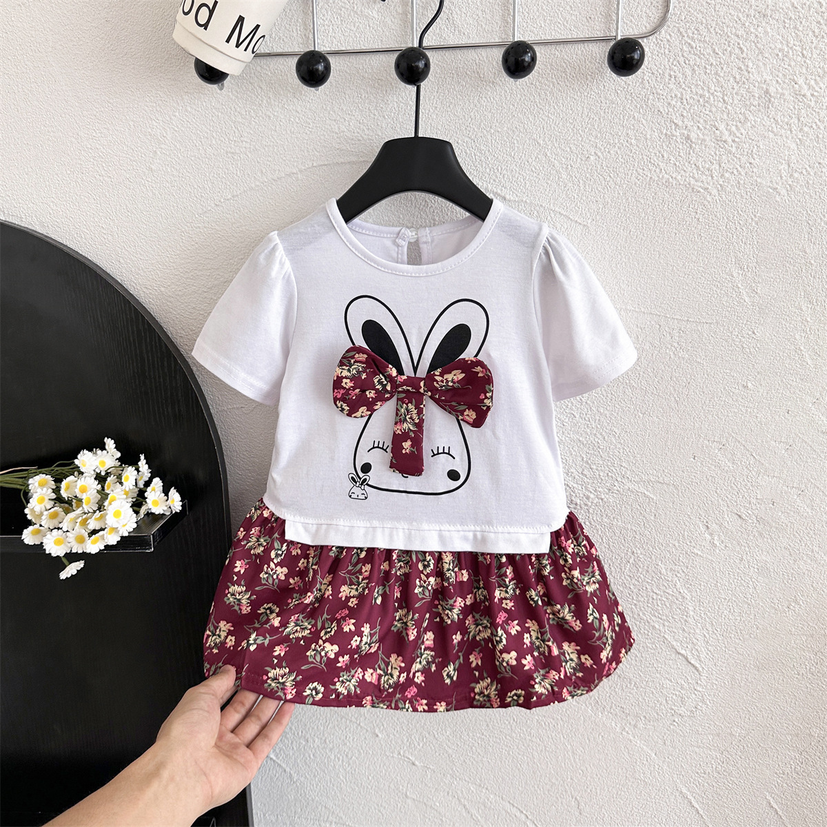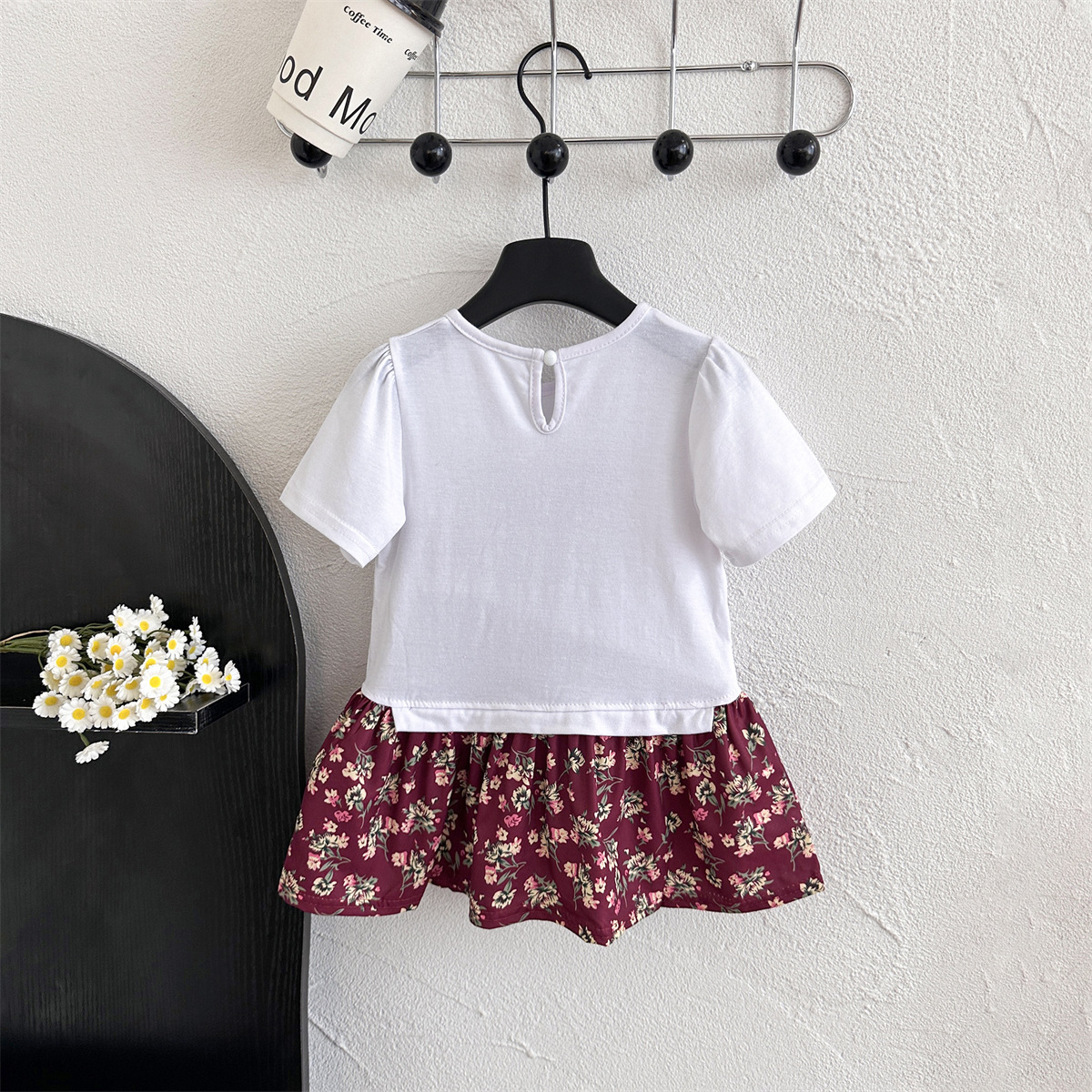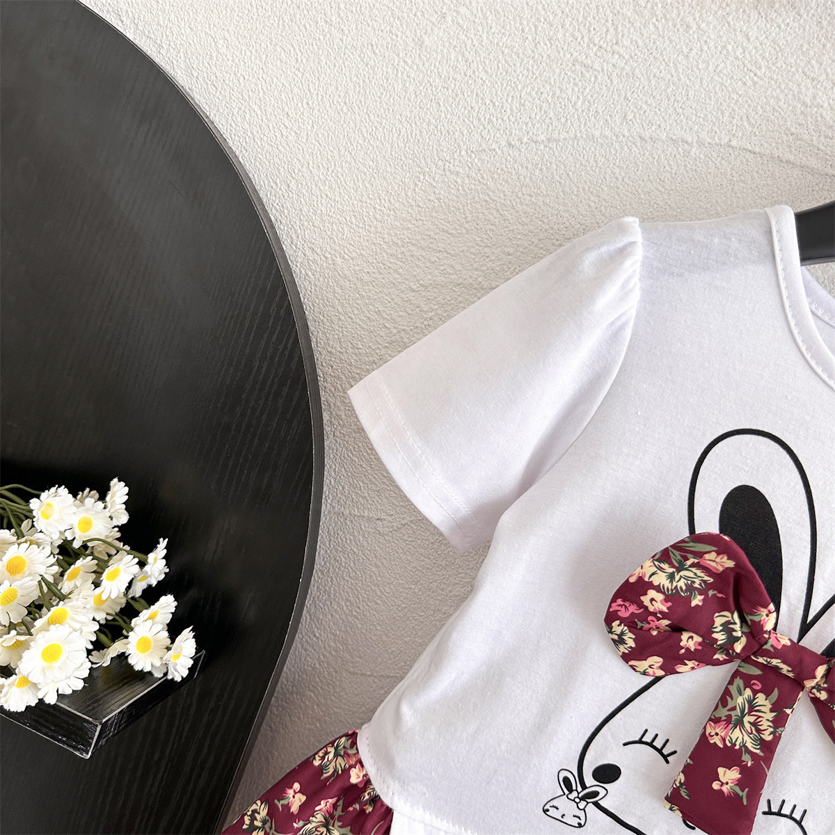 6278 소녀의 여름 인쇄 반팔 둥근 목 티셔츠 인쇄 활 패치 워크 꽃 인쇄 소녀의 여름 원피스스토어 가기