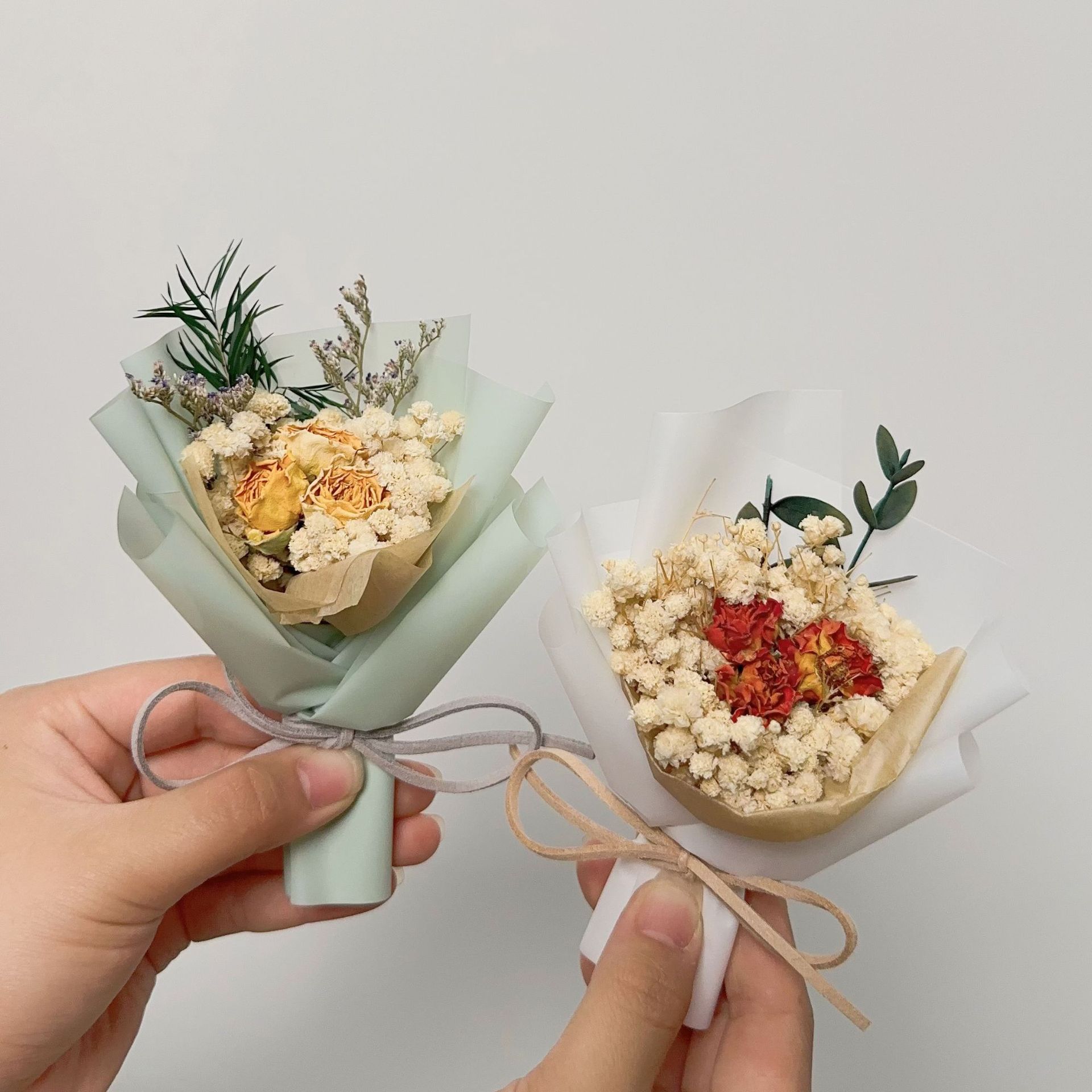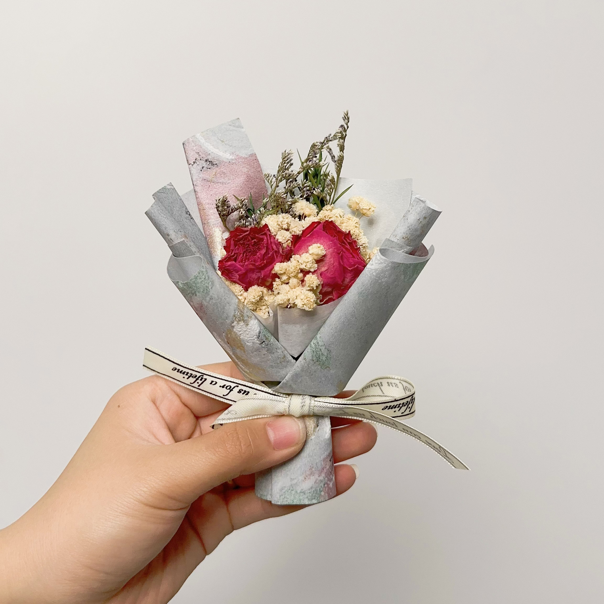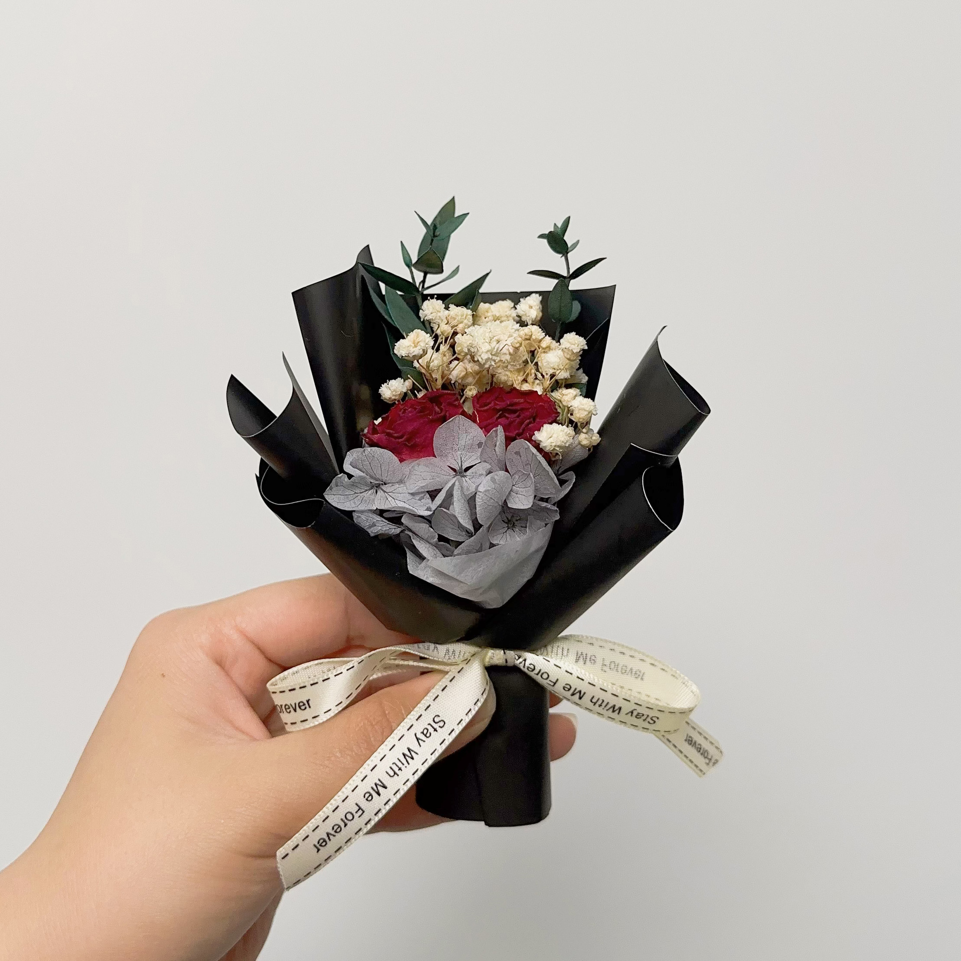 드라이플라워 미니 꽃다발 생일 선물 기념품 장미 안개꽃 발렌타인데이 장식 영구꽃 예술