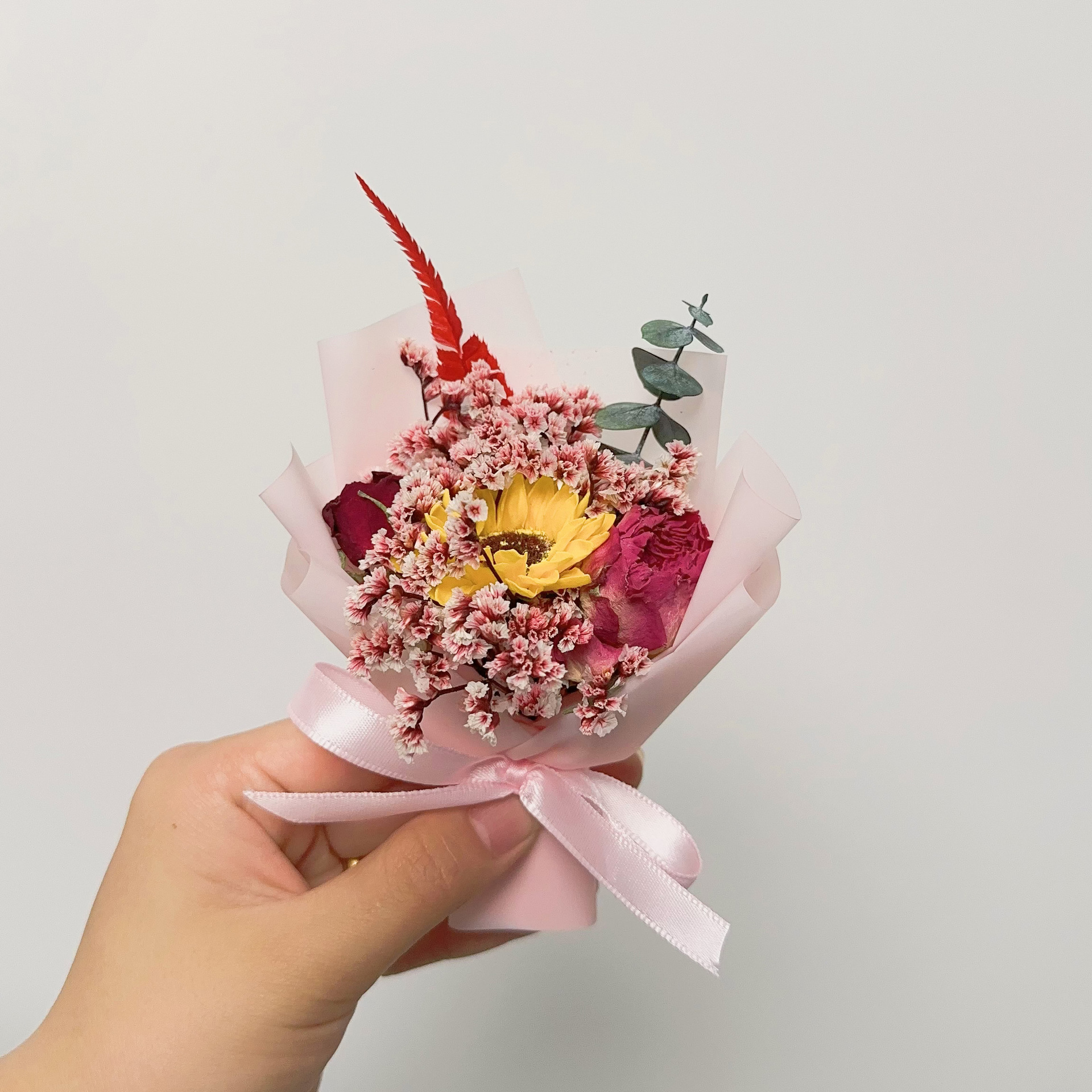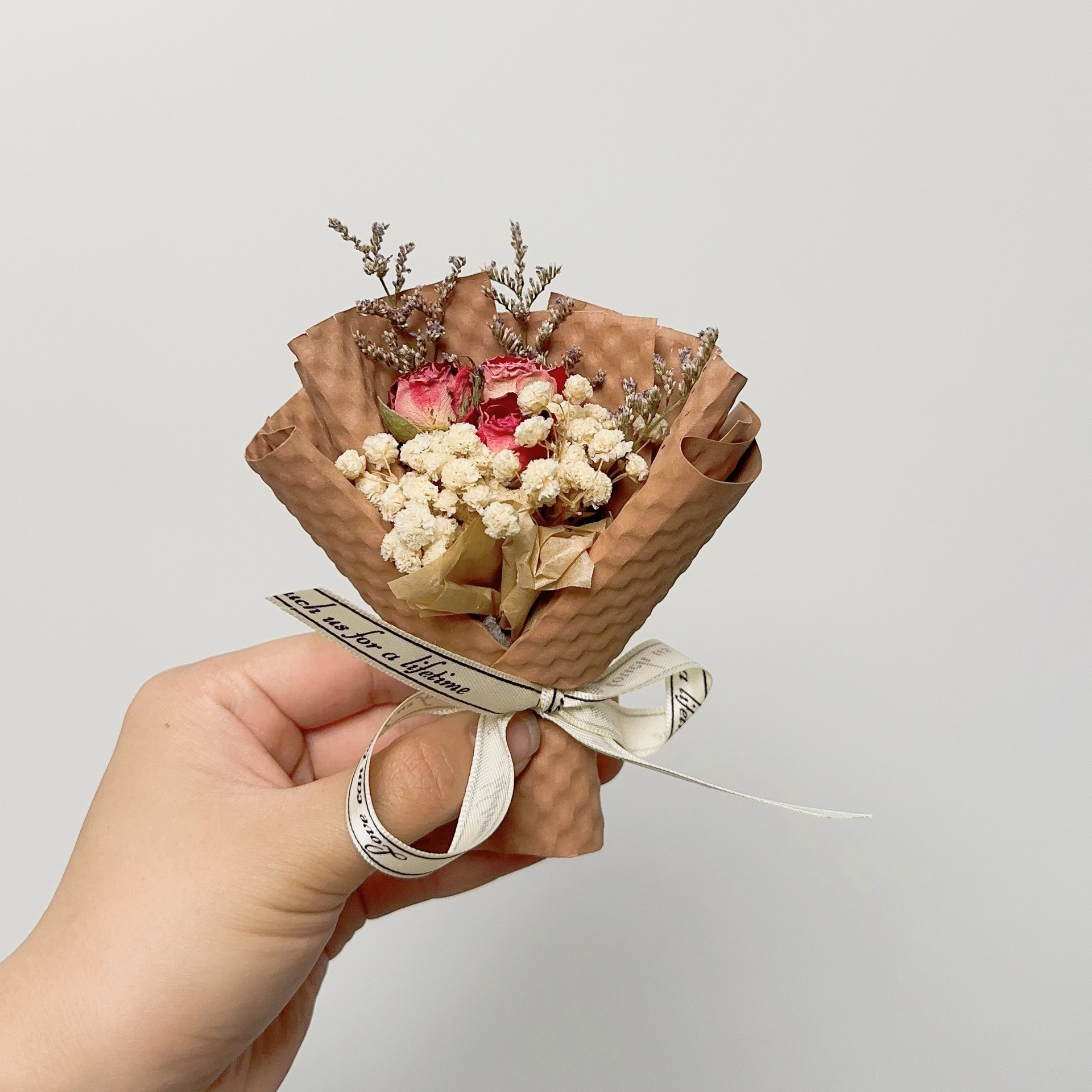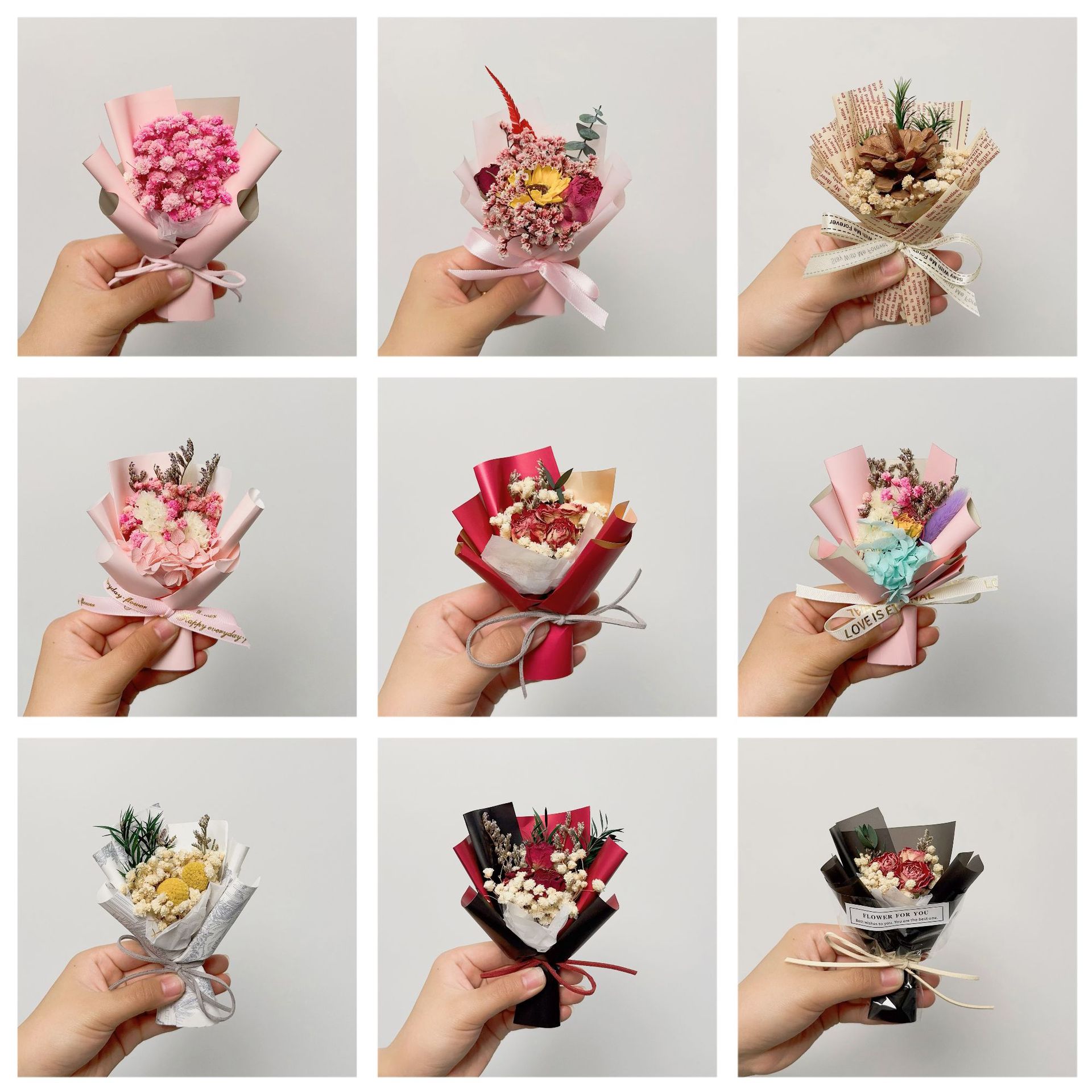 드라이플라워 미니 꽃다발 생일 선물 기념품 장미 안개꽃 발렌타인데이 장식 영구꽃 예술