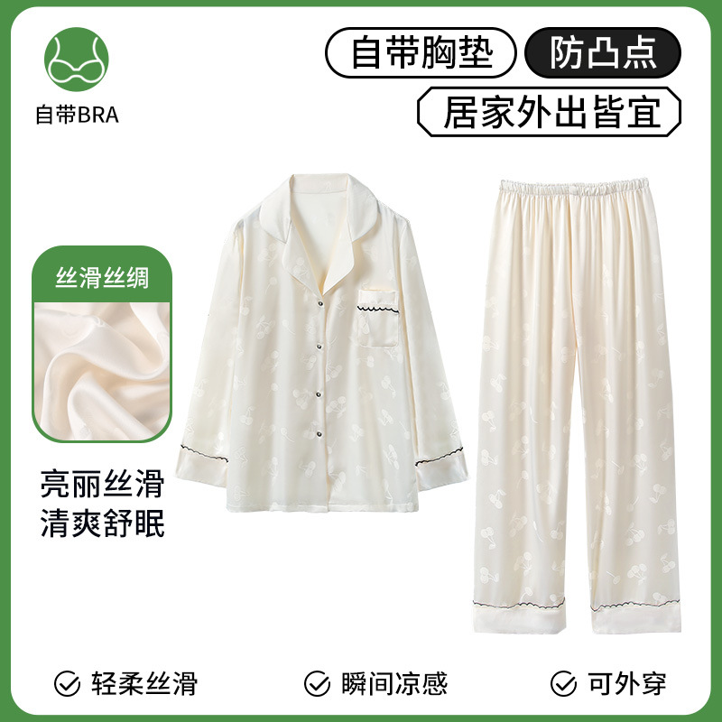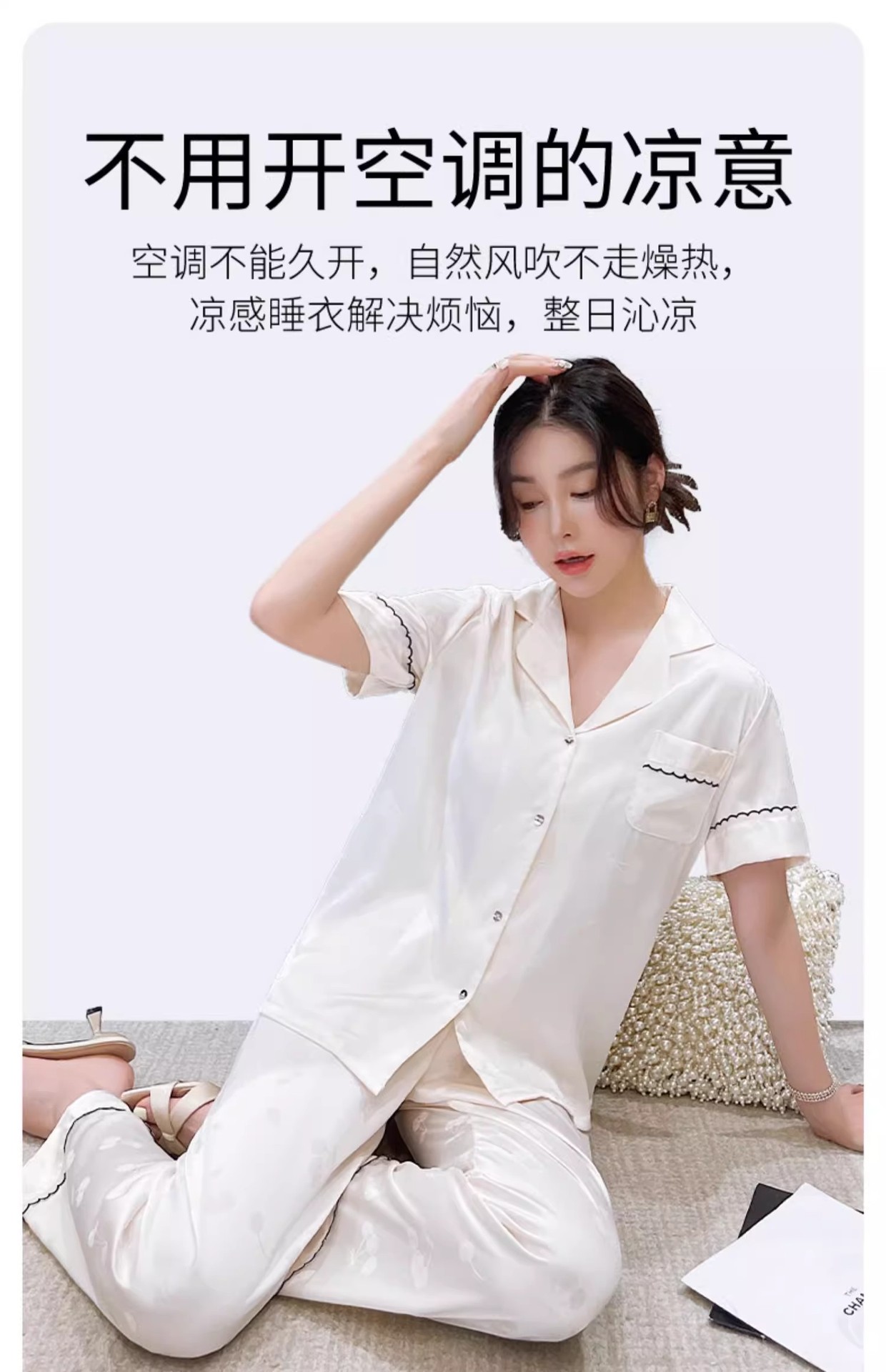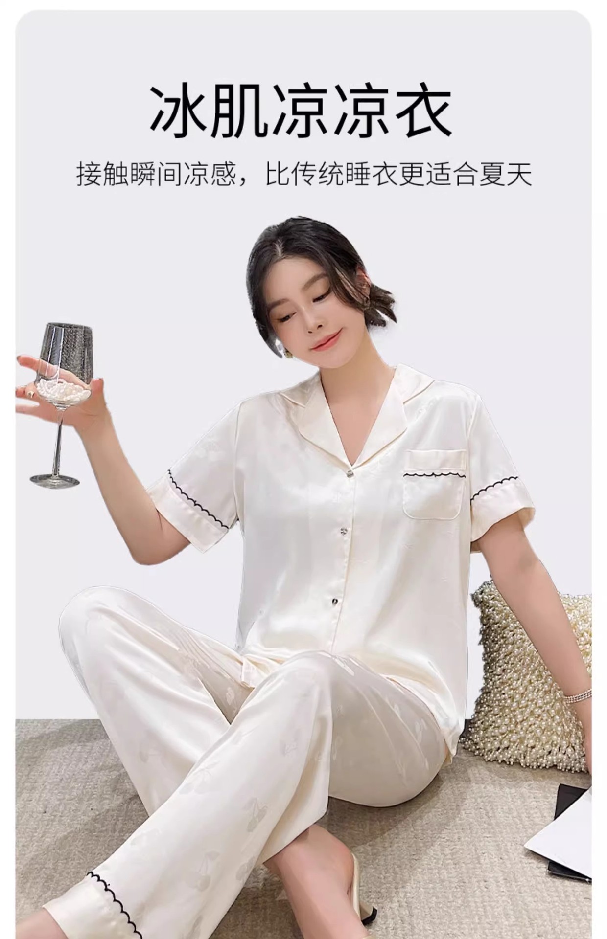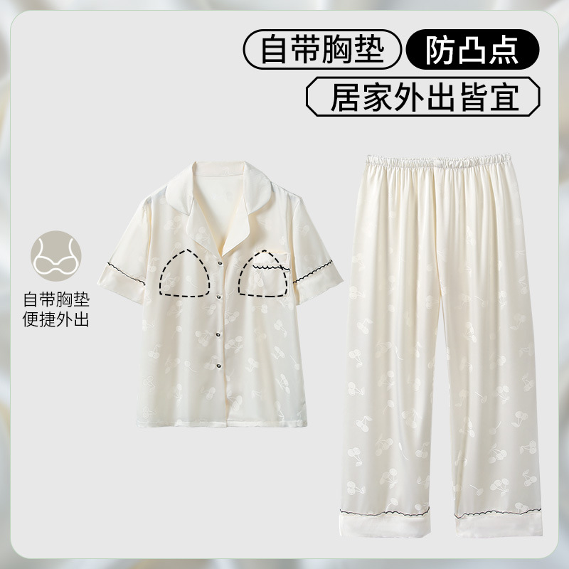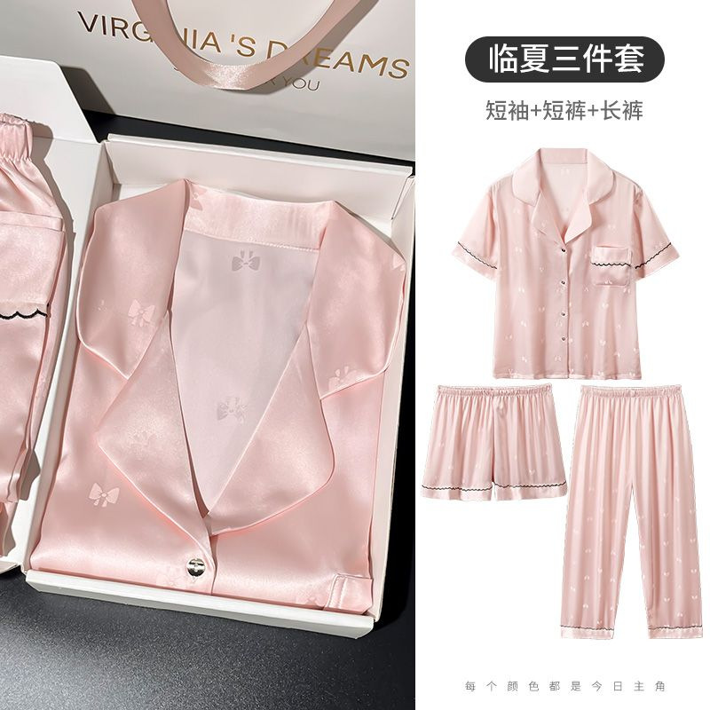 여성용 잠옷 여름 얼음 실크 3 피스 세트 시원한 실크 잠옷 홈웨어 여성 정장 귀여운 체리스토어 가기