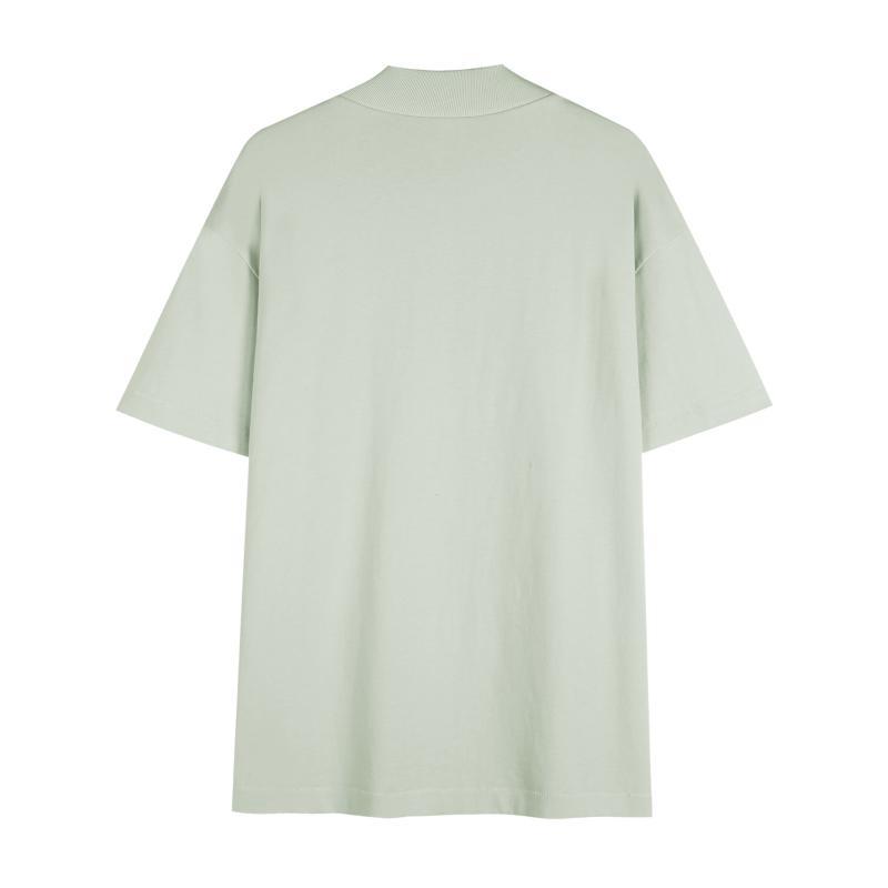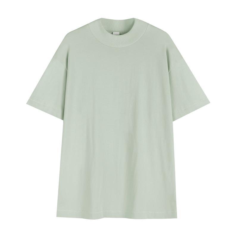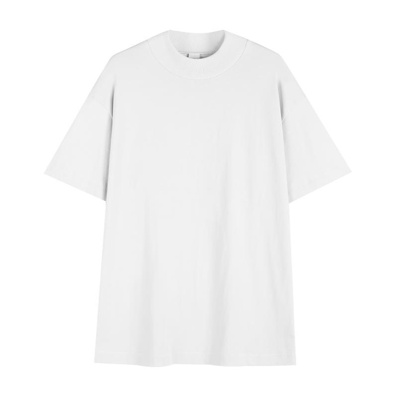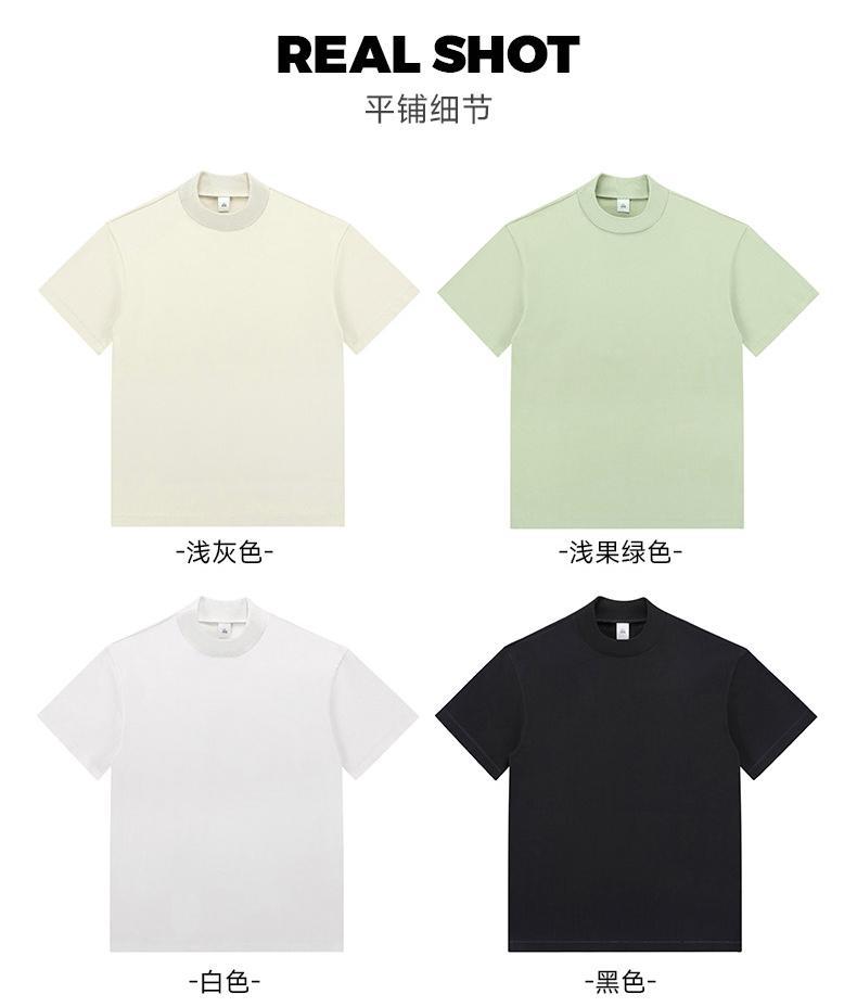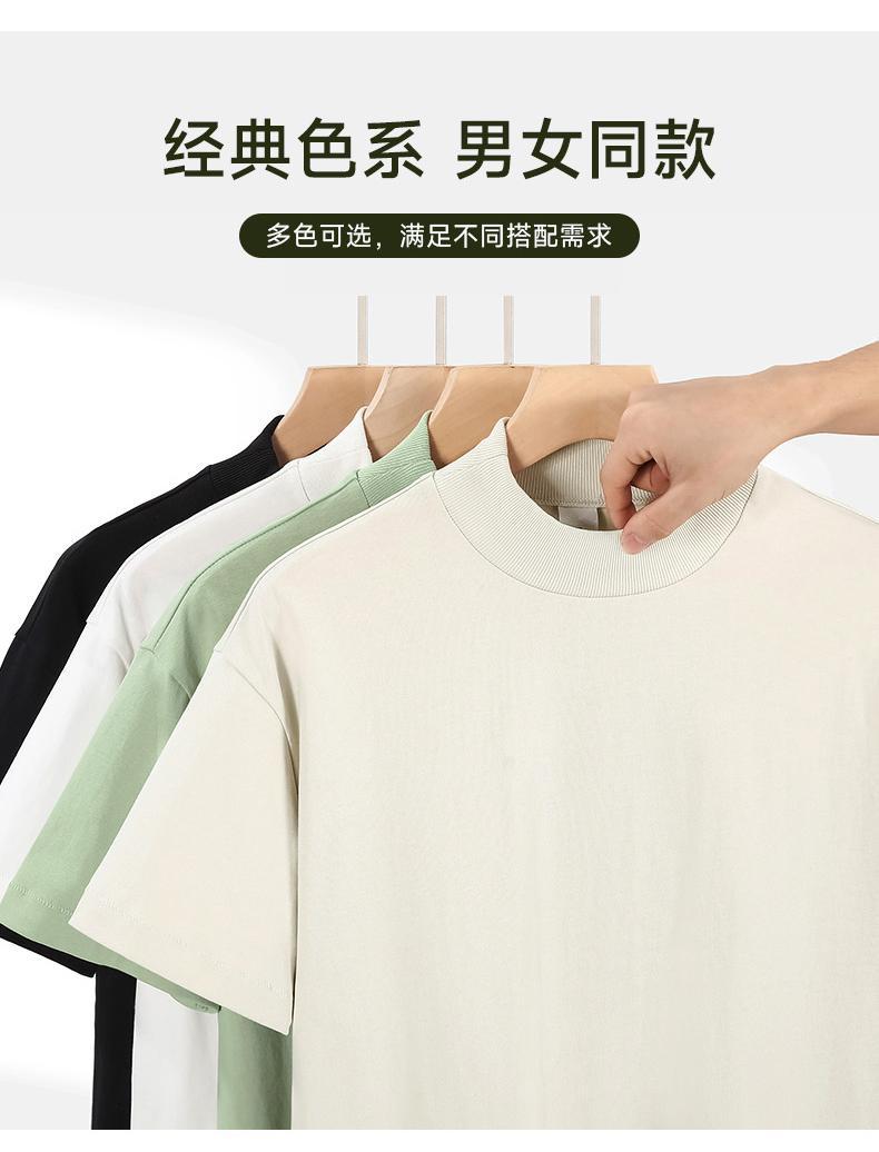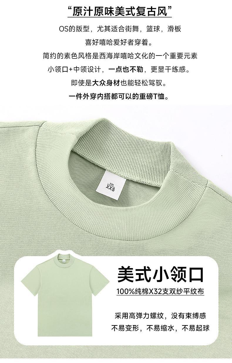 280g 무거운 작은 목선 높은 칼라 미국면 짧은 소매 티셔츠 남성용 캐주얼 느슨한 32 더블 원사 단색 둥근 목스토어 가기