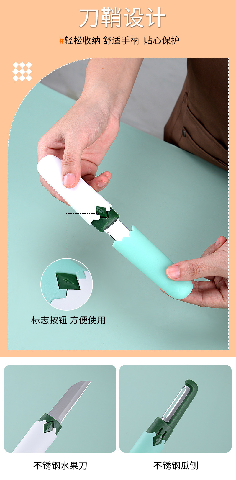 2 대 1 과일 나이프 파싱 나이프 휴대용 다기능 양두 스테인레스 스틸 멜론과 과일 계획 사무실 필링 나이프
