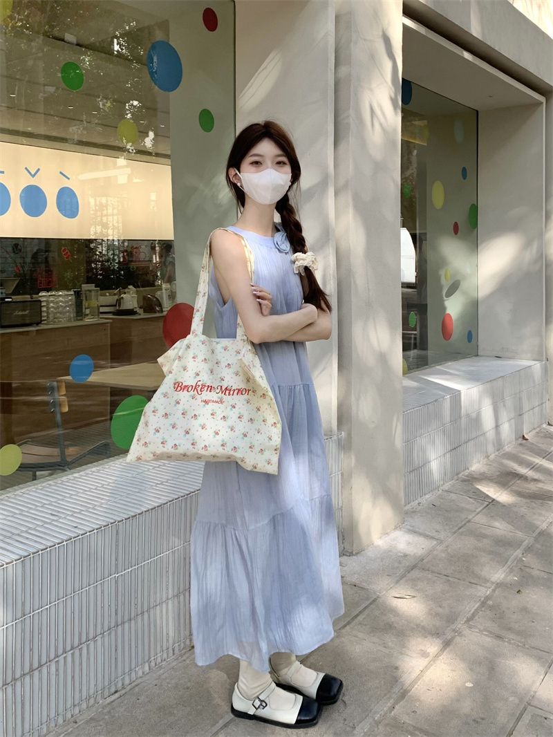 부드러운 스타일 입체 꽃 목 교수형 원피스 여성 여름 해변 휴일 요정 원피스 우아한 슬림 A 라인 긴 원피스스토어 가기