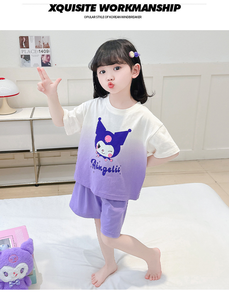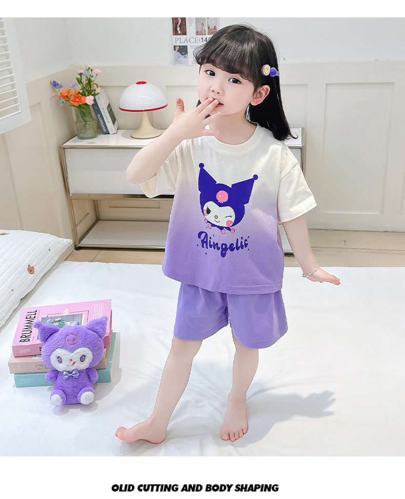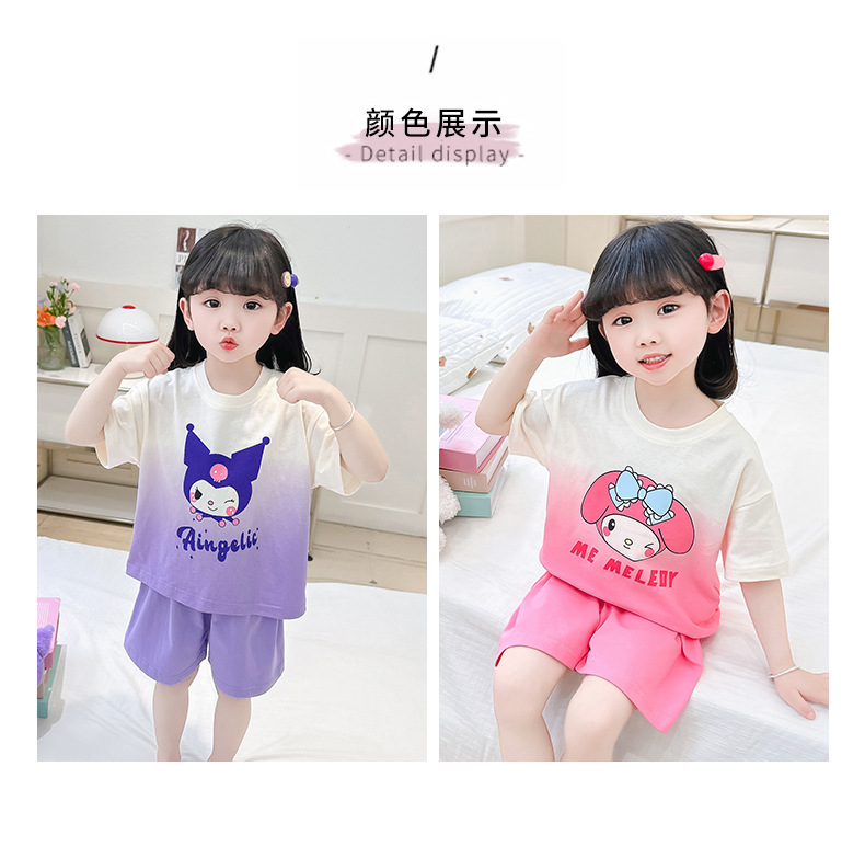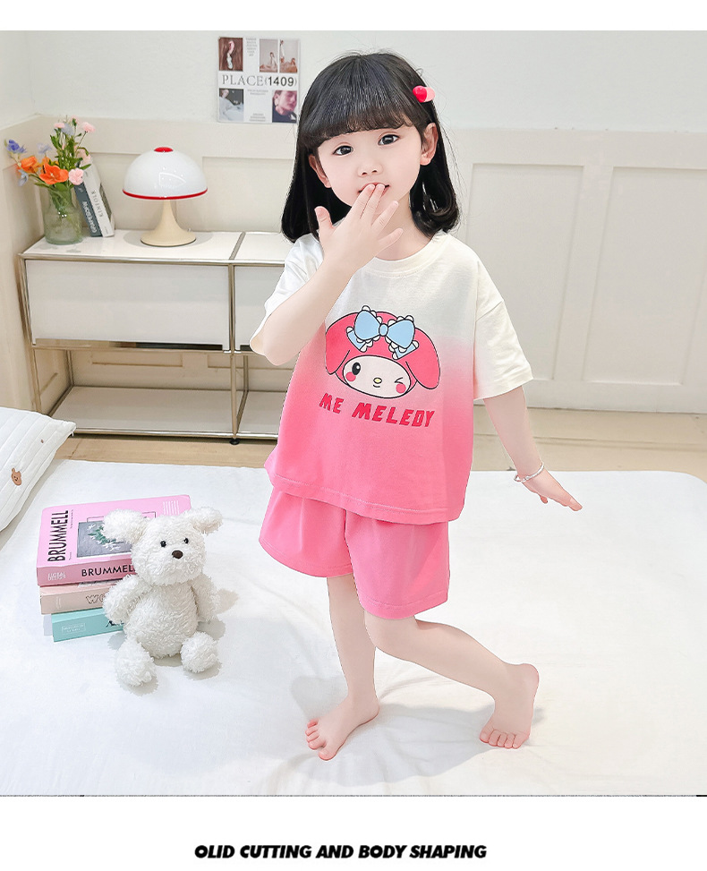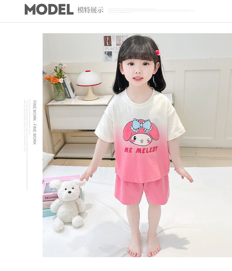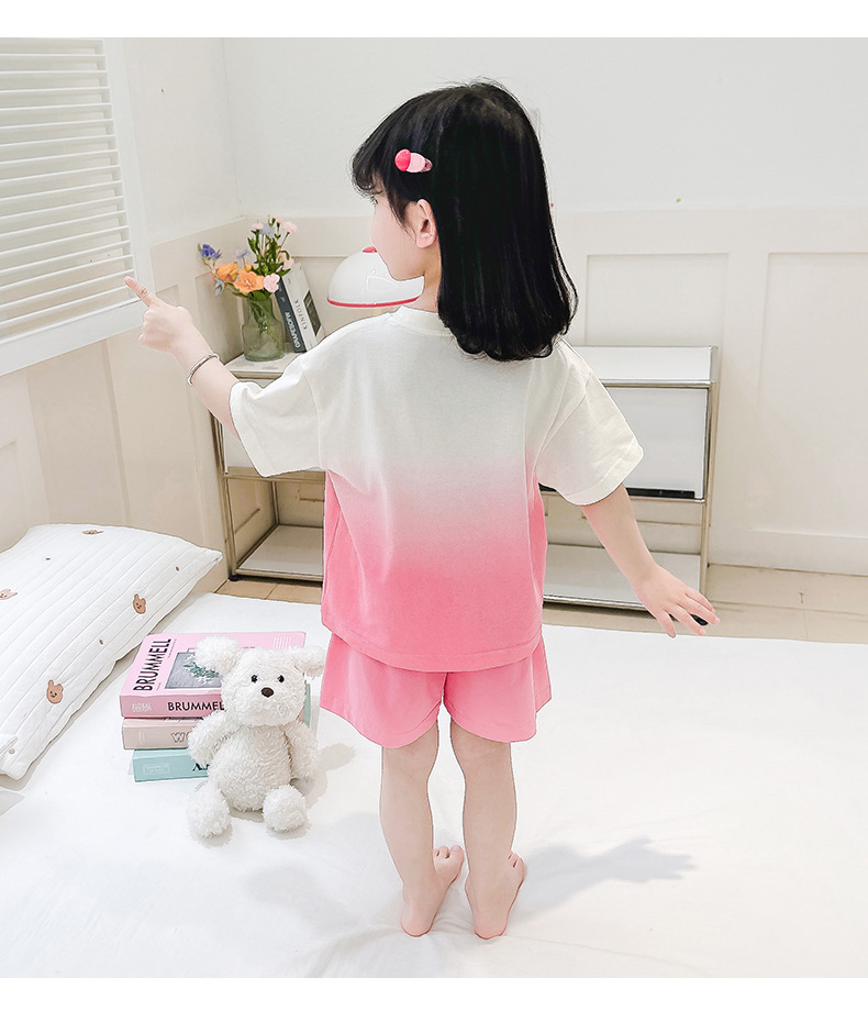 코튼 홈 옷 아기 소녀 여름 새로운 귀여운 만화 그라디언트 2 피스 세트 유행 2 피스 세트스토어 가기
