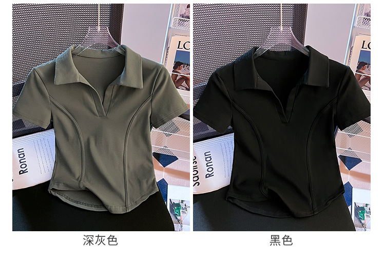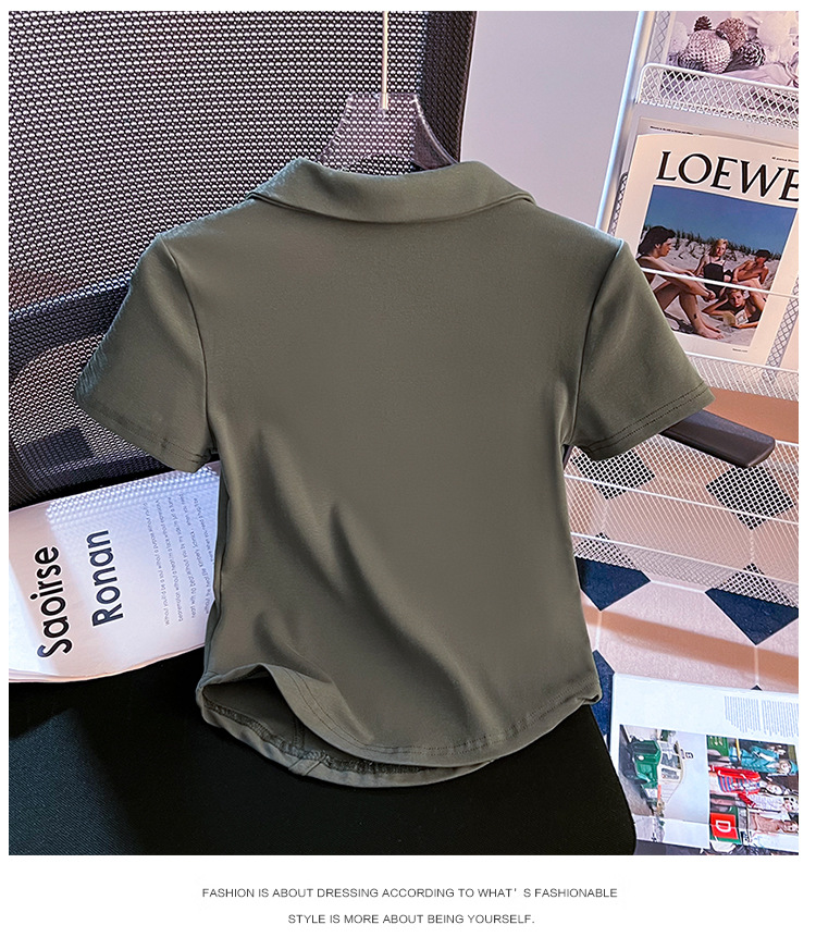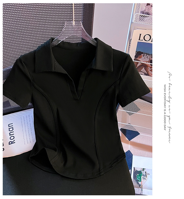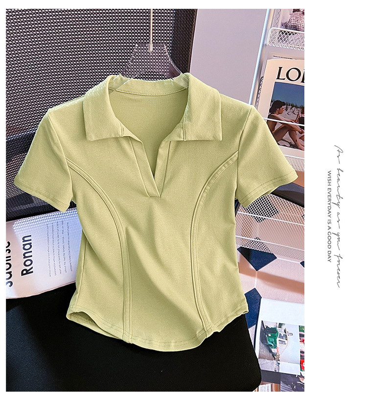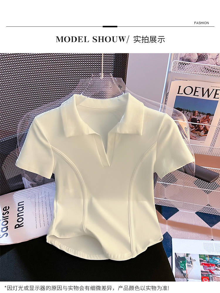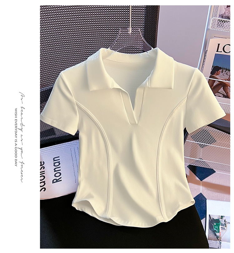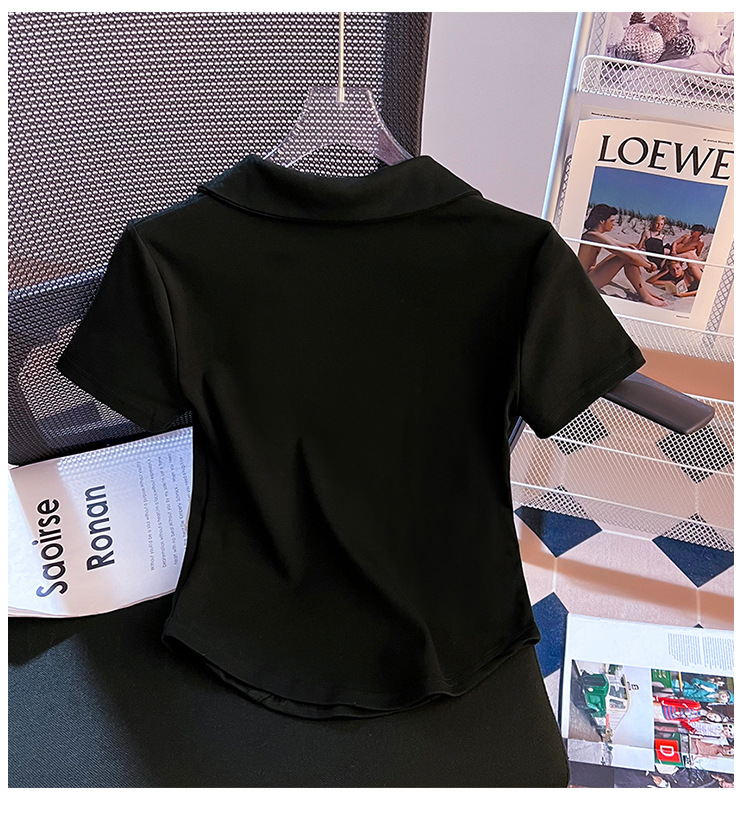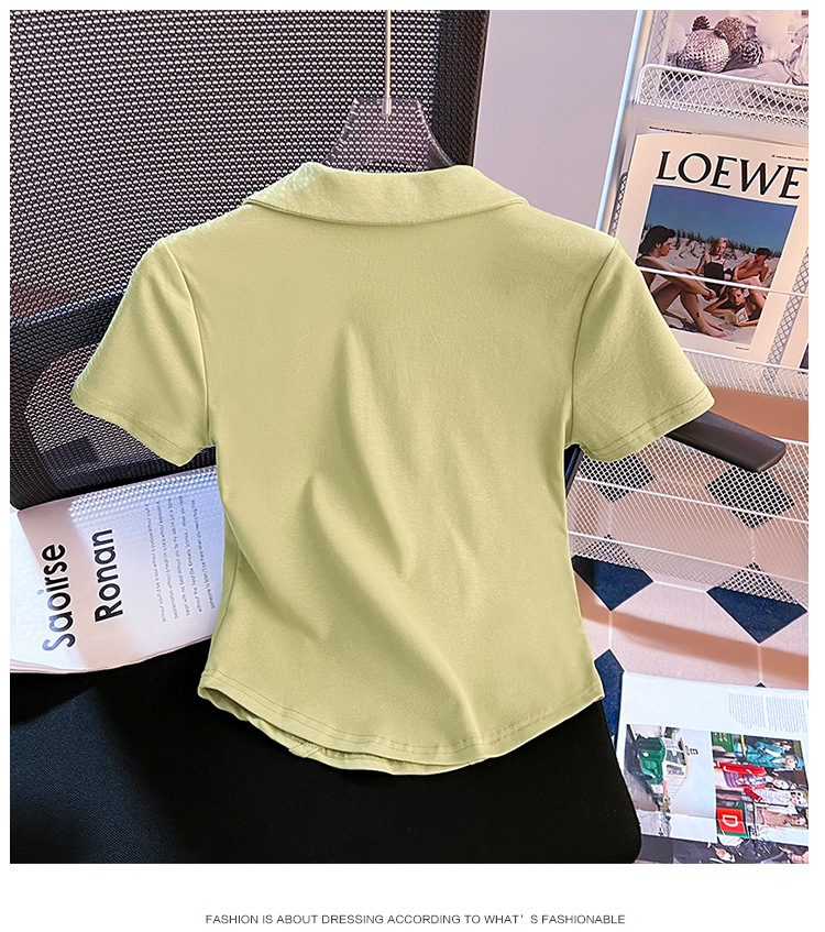 폴로 칼라 어깨 반팔 티셔츠 여성용 여름 아메리칸 스타일 레트로 핫 걸베이스 셔츠 달콤한 매운 스타일 Fishbone 타이트 웨이스트 탑