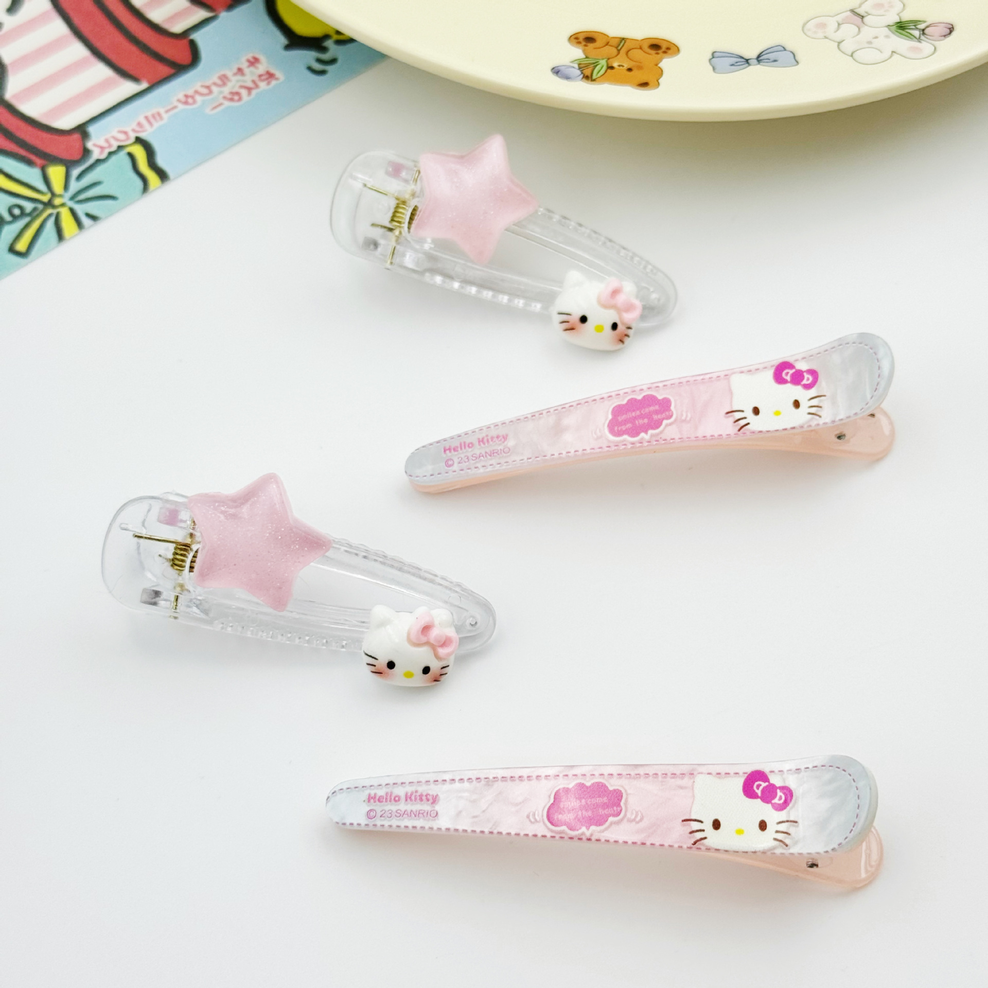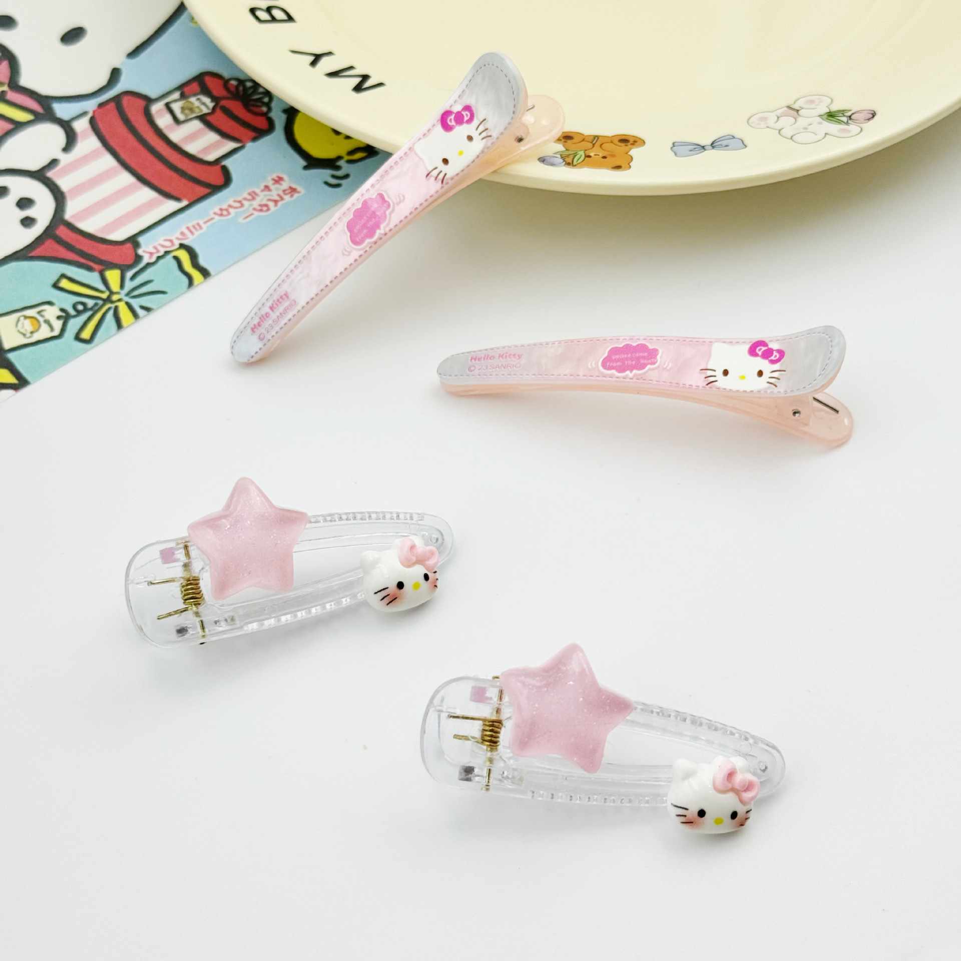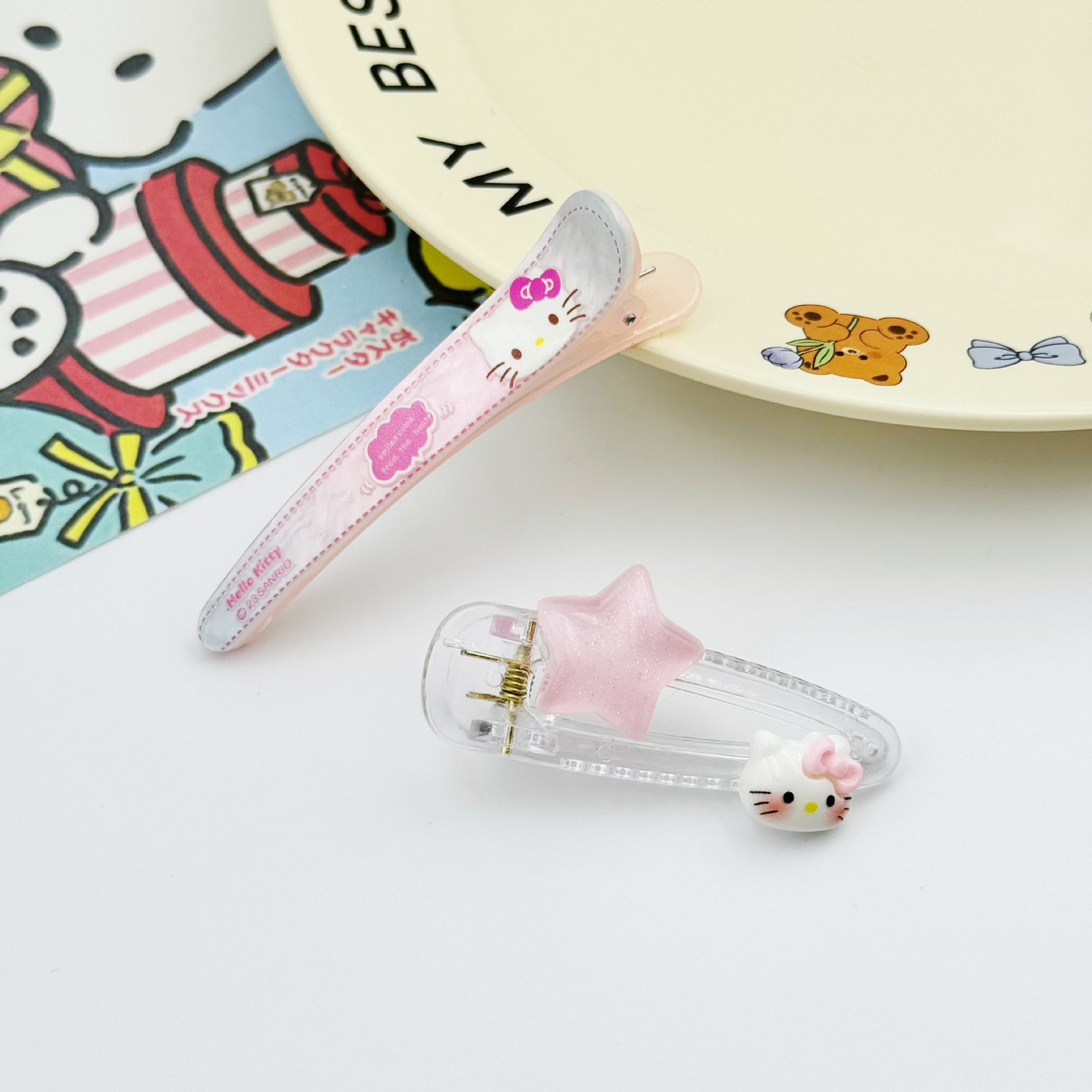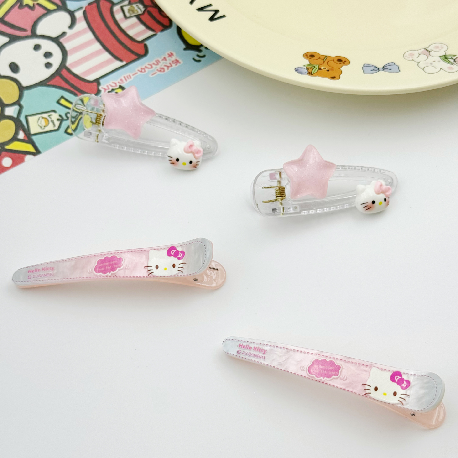 일본 만화 고양이 덕빌 클립 달콤한 소녀 하트 스타 헤어핀 화려한 산리오 KT 뾰족한 클립 헤어핀 여성
