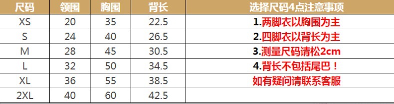 • 2XL: 뒤 길이 42.5cm [권장 10.00 kg-12.00 kg]]