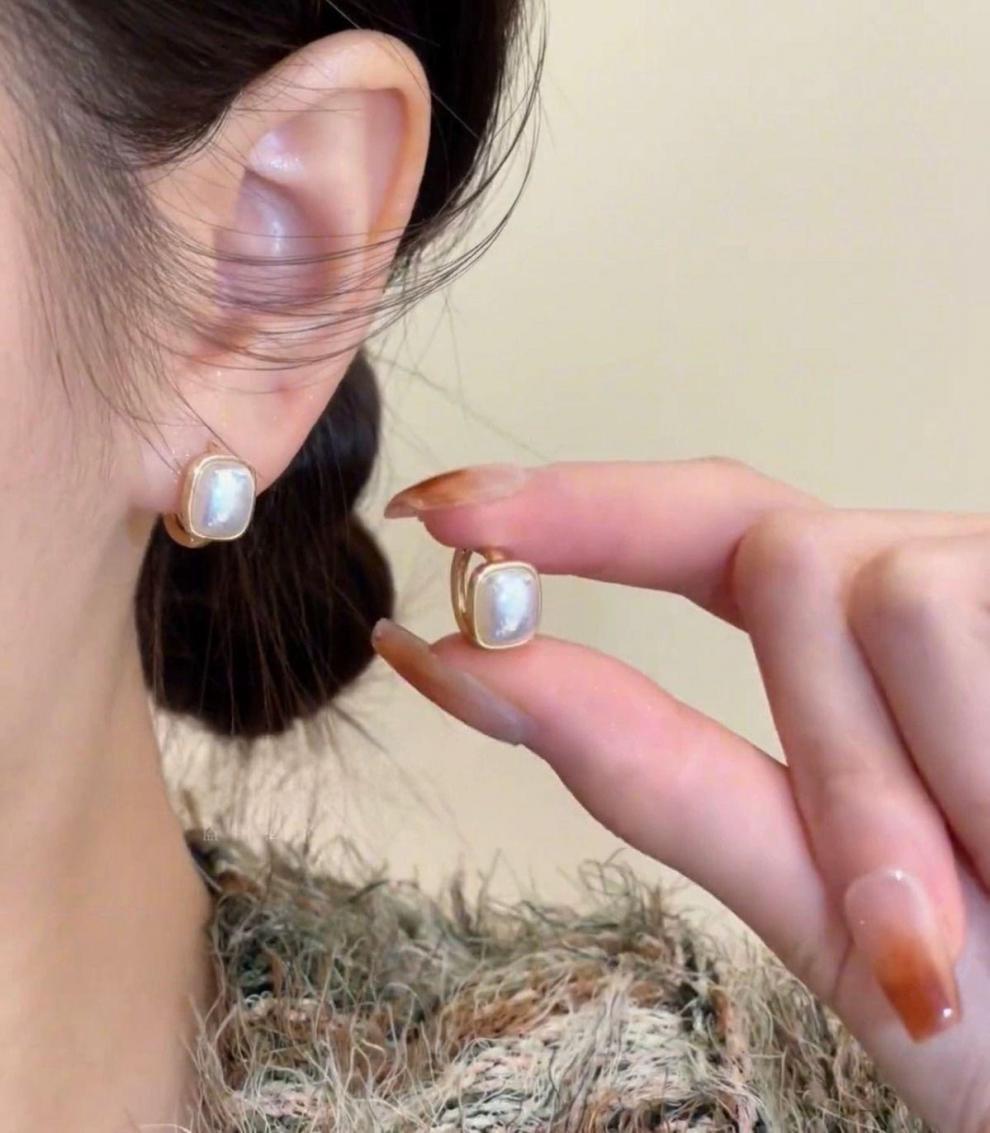 합금 귀걸이 2024 새로운 스타일의 흰색 구슬 귀걸이, 패셔너블하고 부드럽고 우아하며 다재다능하고 절묘한 프랑스 귀걸이스토어 가기