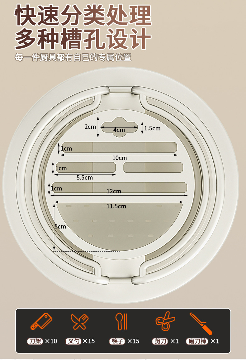 • 흰색 회전 칼 홀더 (증가) 후크 워터 트레이