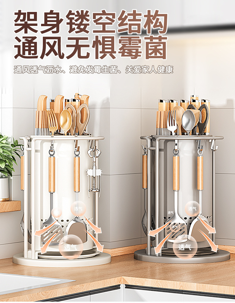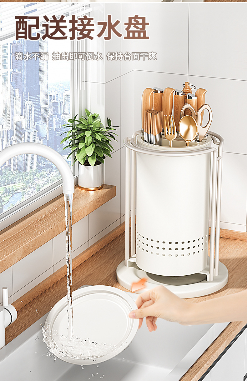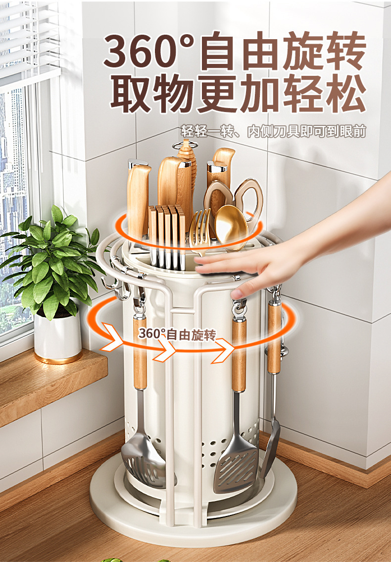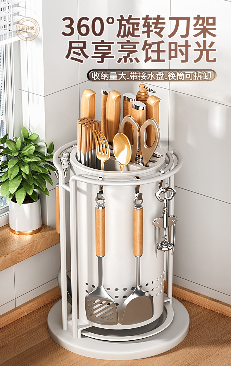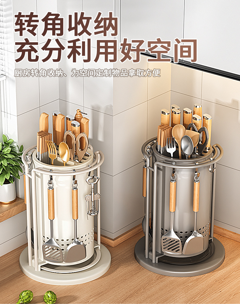 주방 회전 칼 랙 스토리지 랙 주걱 스푼 젓가락 튜브 주방 칼 홀더 통합 스토리지 박스 다기능 홈 아티팩트스토어 가기