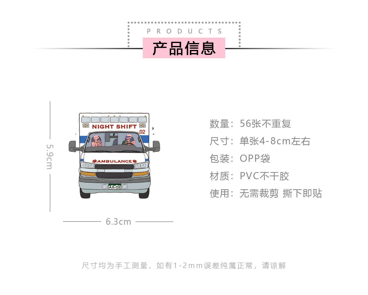 产品采用防水材质,进口海德堡高清印刷、覆膜,贴纸按形状模切完好,不用担心自己裁剪地歪歪扭扭