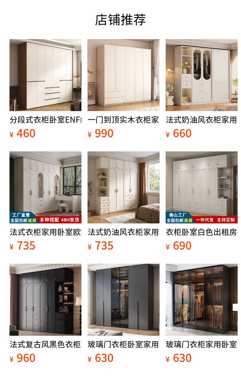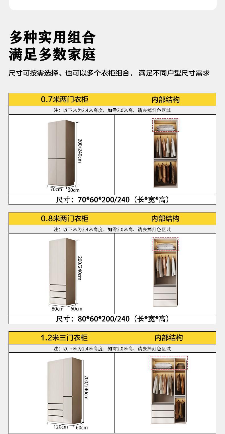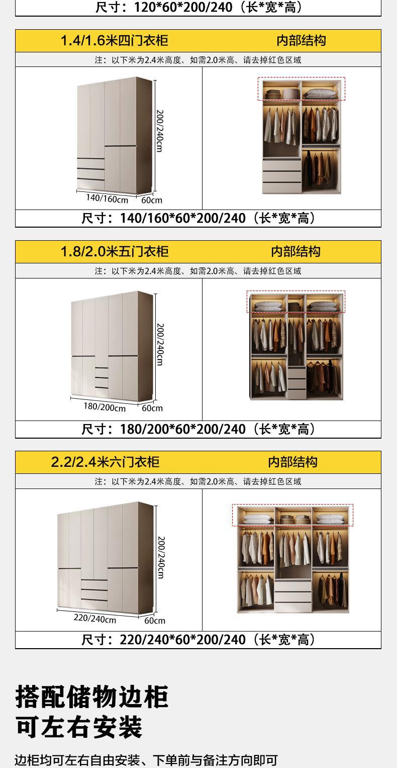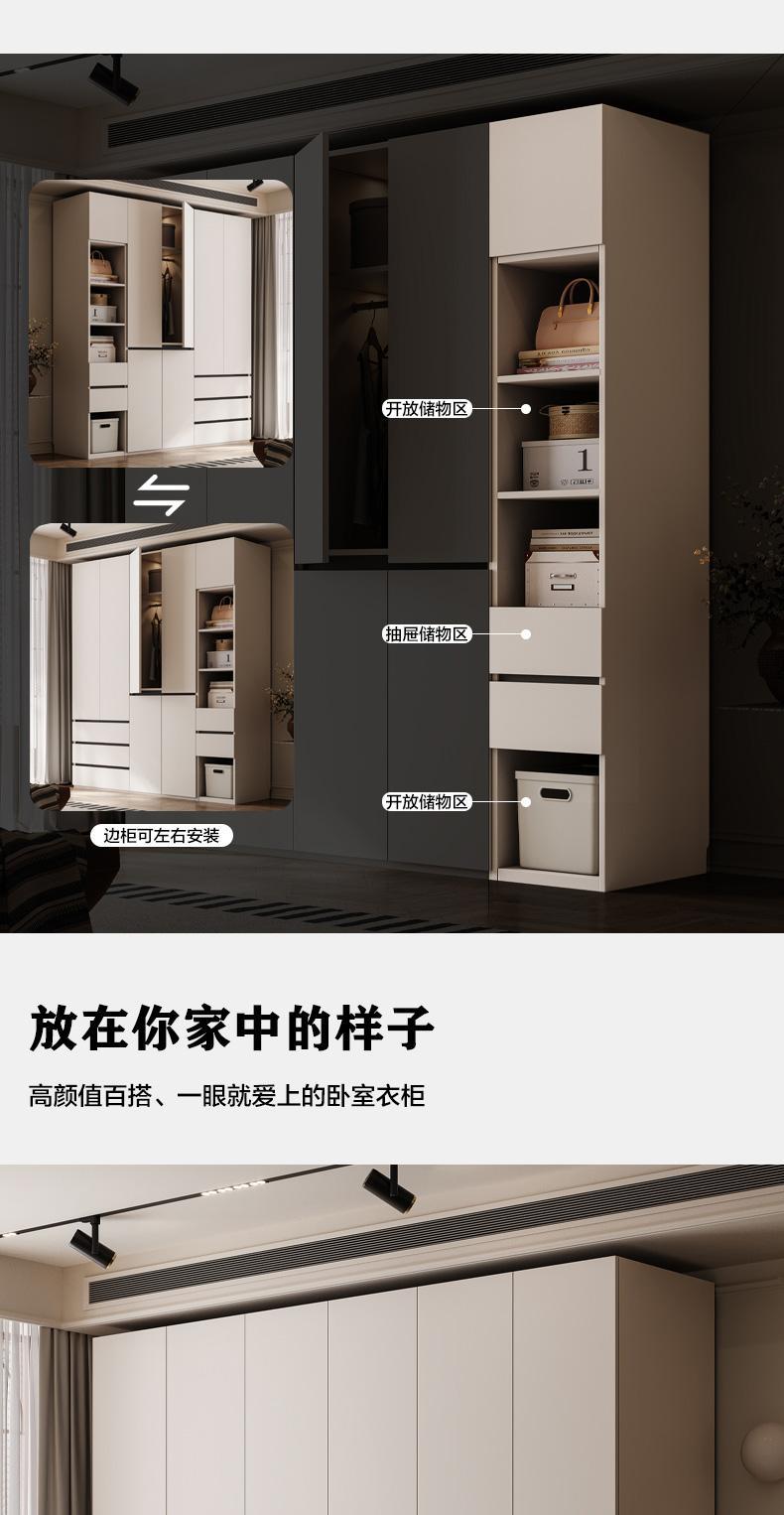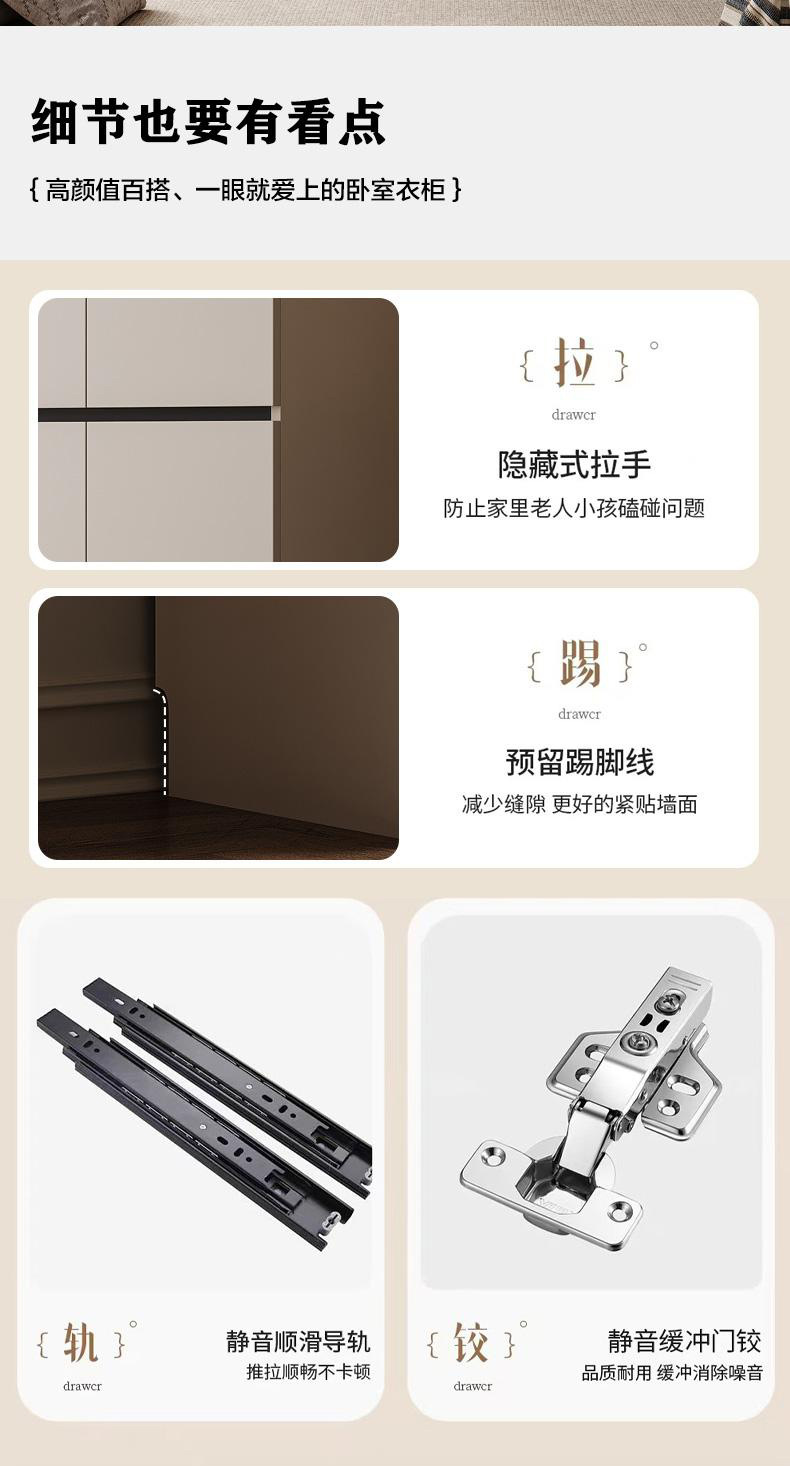 분할형 옷장 가정용 침실용 유로소나이트 판재 손잡이 없는 일체형 옷장 완제품 미니멀리스트 18cm 두꺼운 대형 옷장스토어 가기