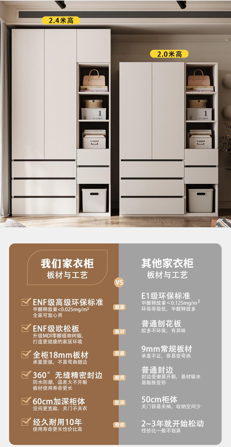분할형 옷장 가정용 침실용 유로소나이트 판재 손잡이 없는 일체형 옷장 완제품 미니멀리스트 18cm 두꺼운 대형 옷장