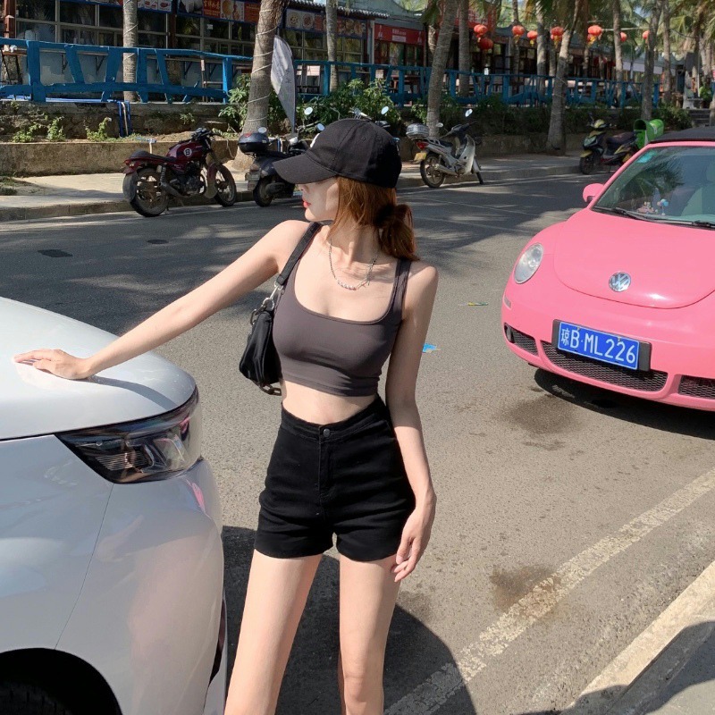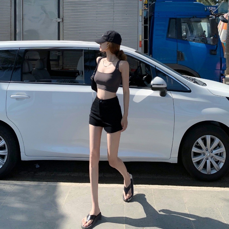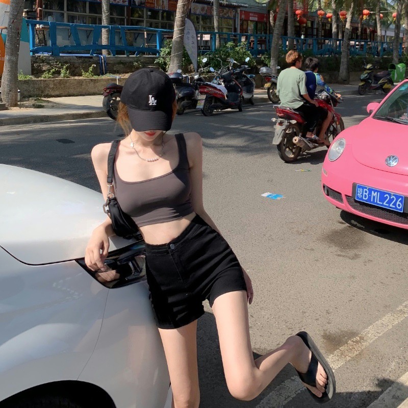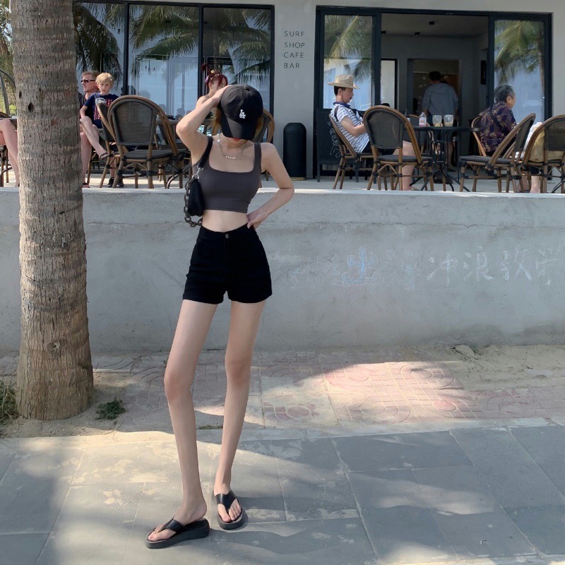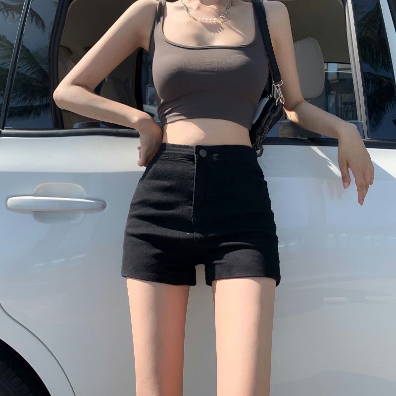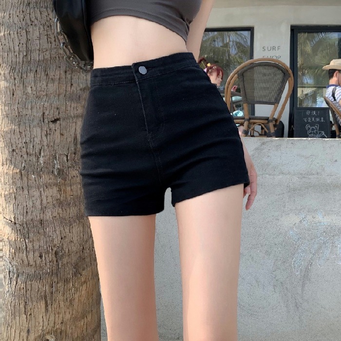 검은 색 단어 데님 반바지 여성 여름 높은 허리 핫 바지 스파이스 소녀 쁘띠 타이트 2024 새로운 힙합 랩 바지스토어 가기