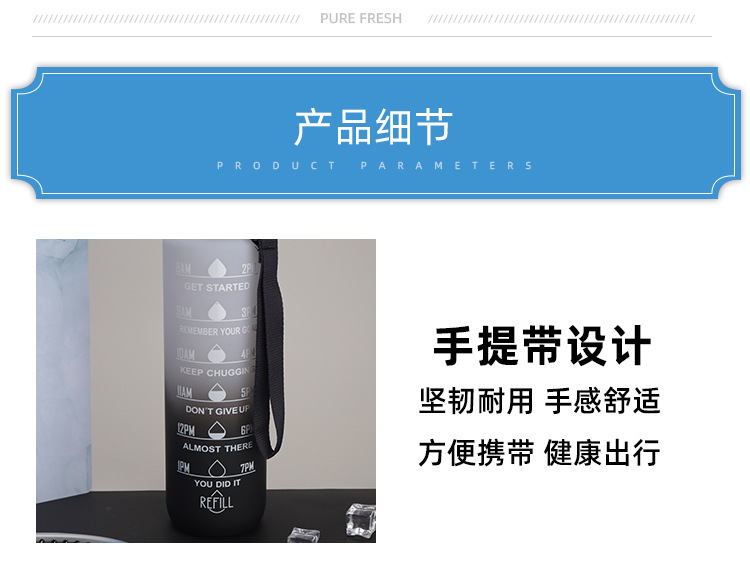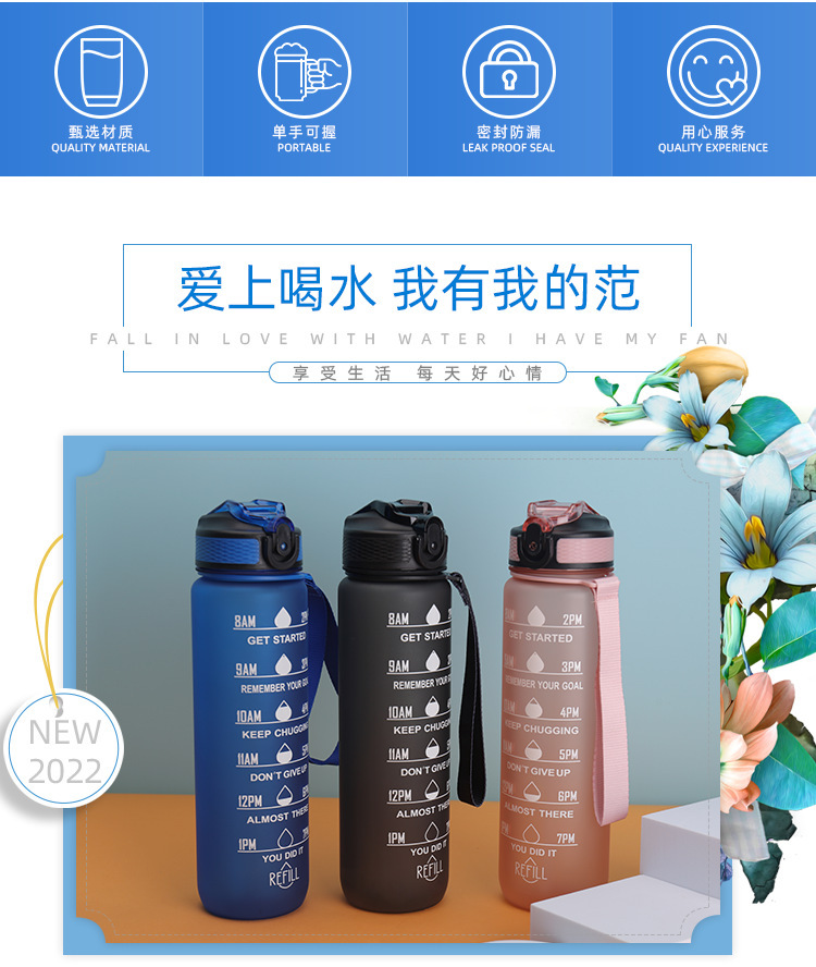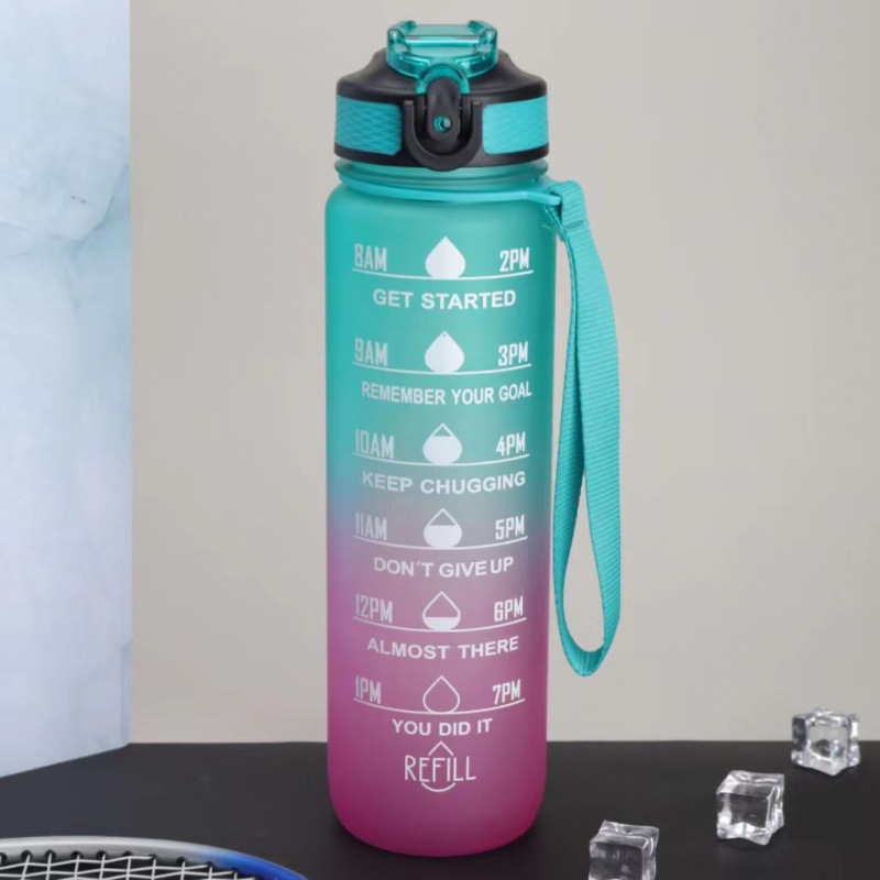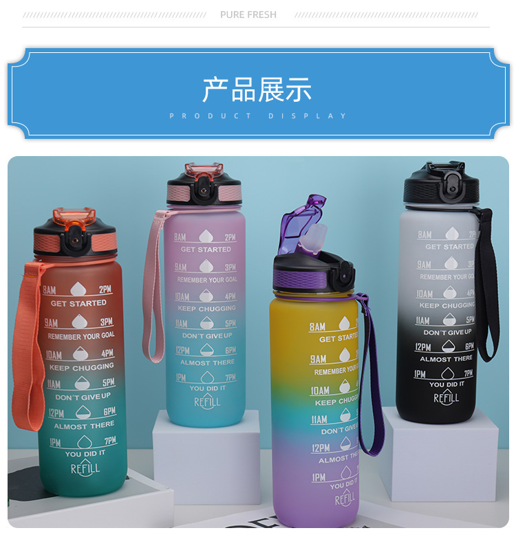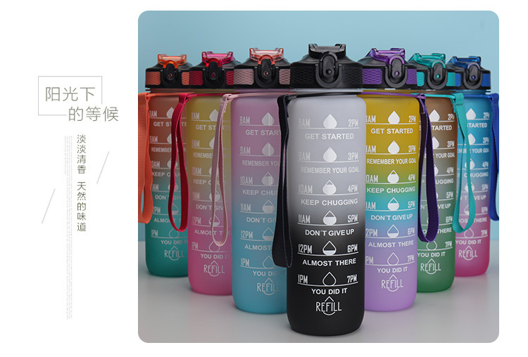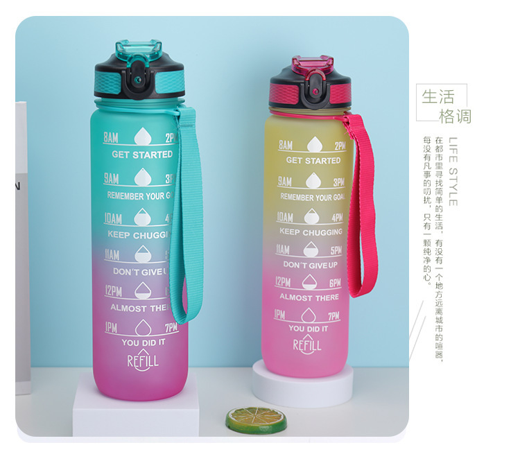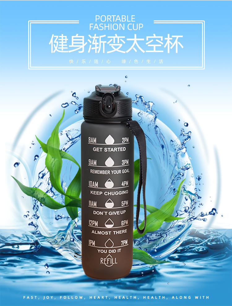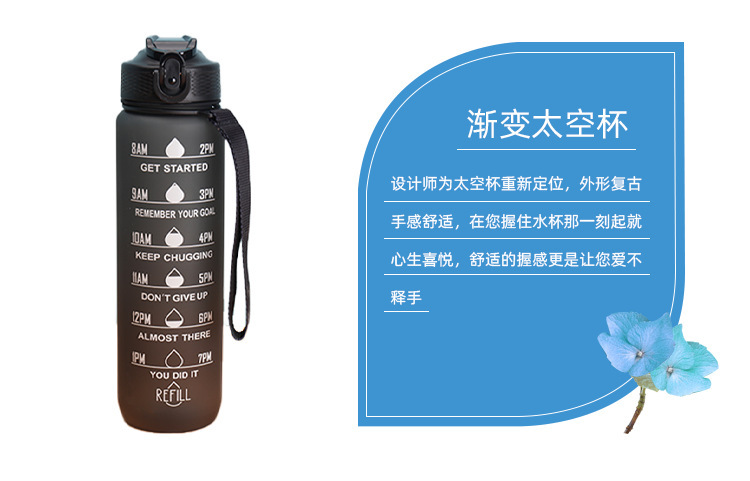 폭발 1000ML 그라디언트 공간 컵 젖빛 플라스틱 컵 야외 스포츠 밀짚 컵 시간 스케일 컵